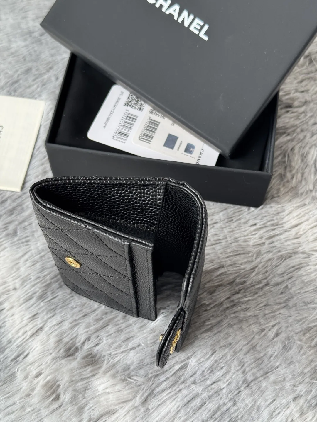 CHANEL Lambskin Caviar, Small Large Caviar Leather, Classic Collection, Black, Gold Silver Hardware, Exclusive Real Shots. Classic CF Card Holder Arrived! Very Appealing! Shiny Gol..