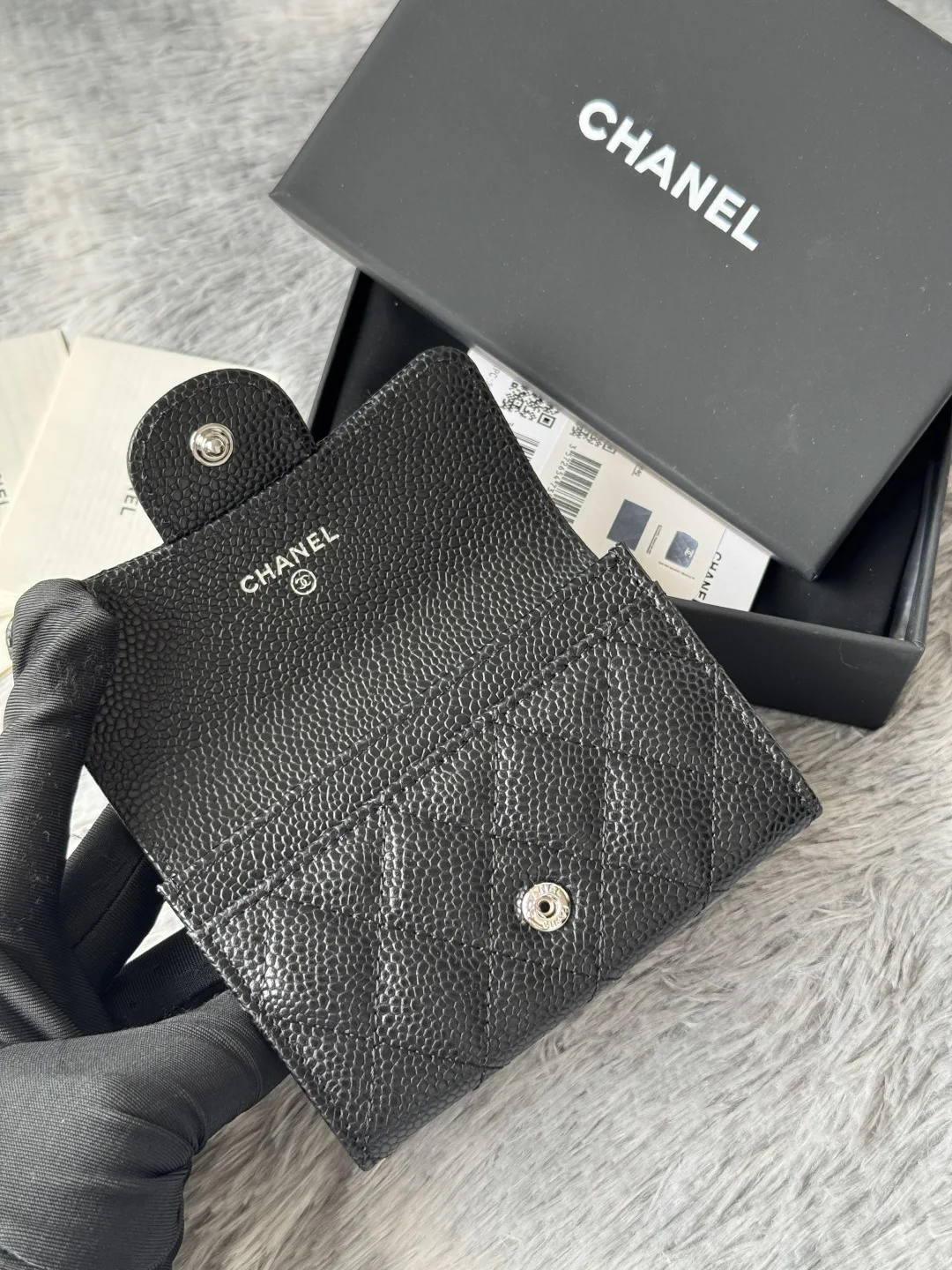 CHANEL Lambskin Caviar, Small Large Caviar Leather, Classic Collection, Black, Gold Silver Hardware, Exclusive Real Shots. Classic CF Card Holder Arrived! Very Appealing! Shiny Gol..