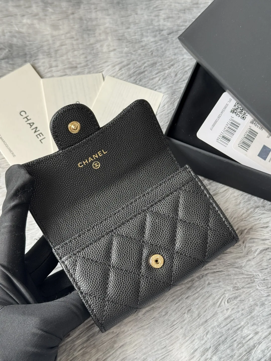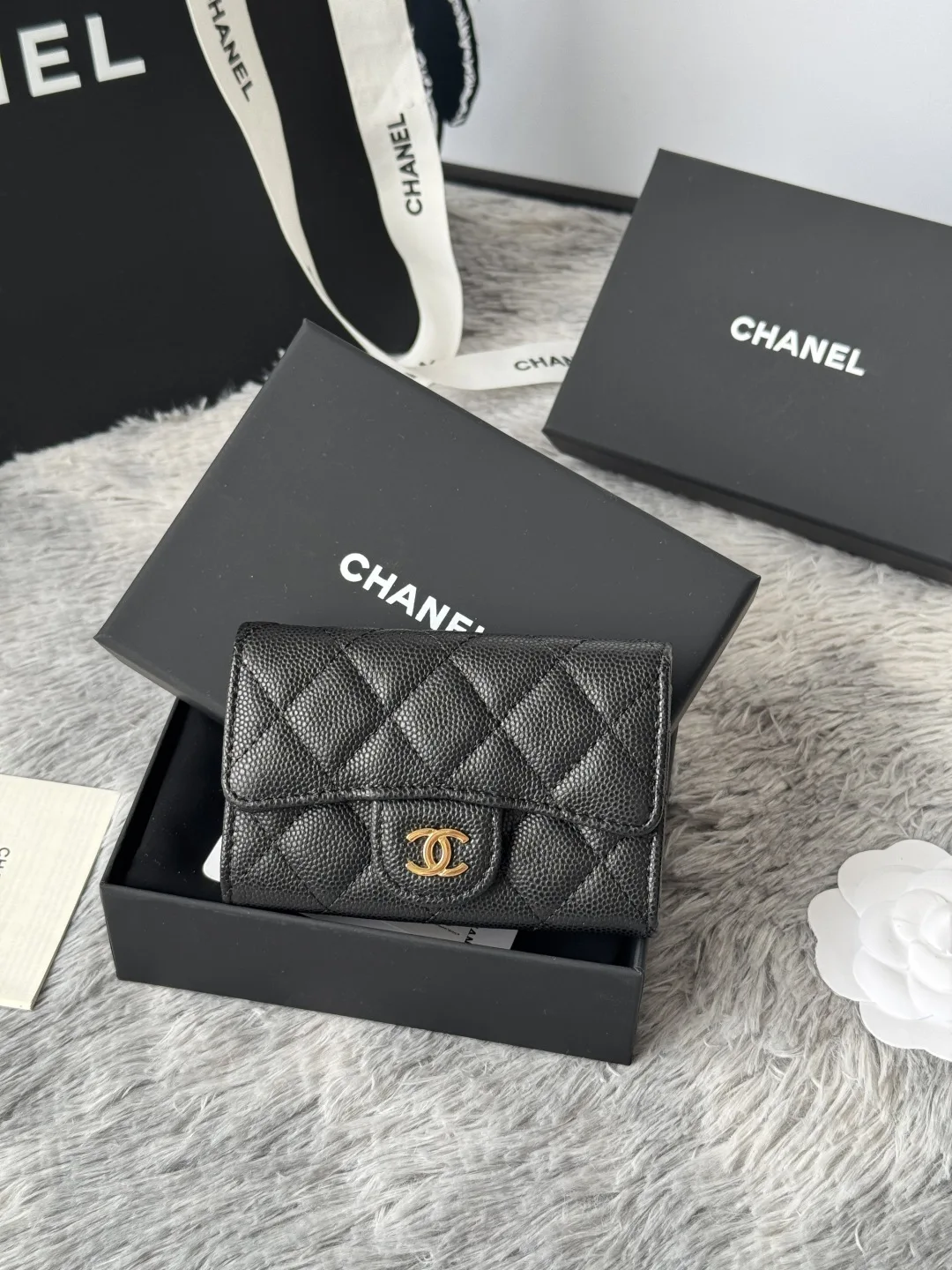 CHANEL lambskin caviar, small and large pebble texture, classic series, black, gold, silver hardware, exclusive real shots. The classic CF small card holder has arrived! It is very..