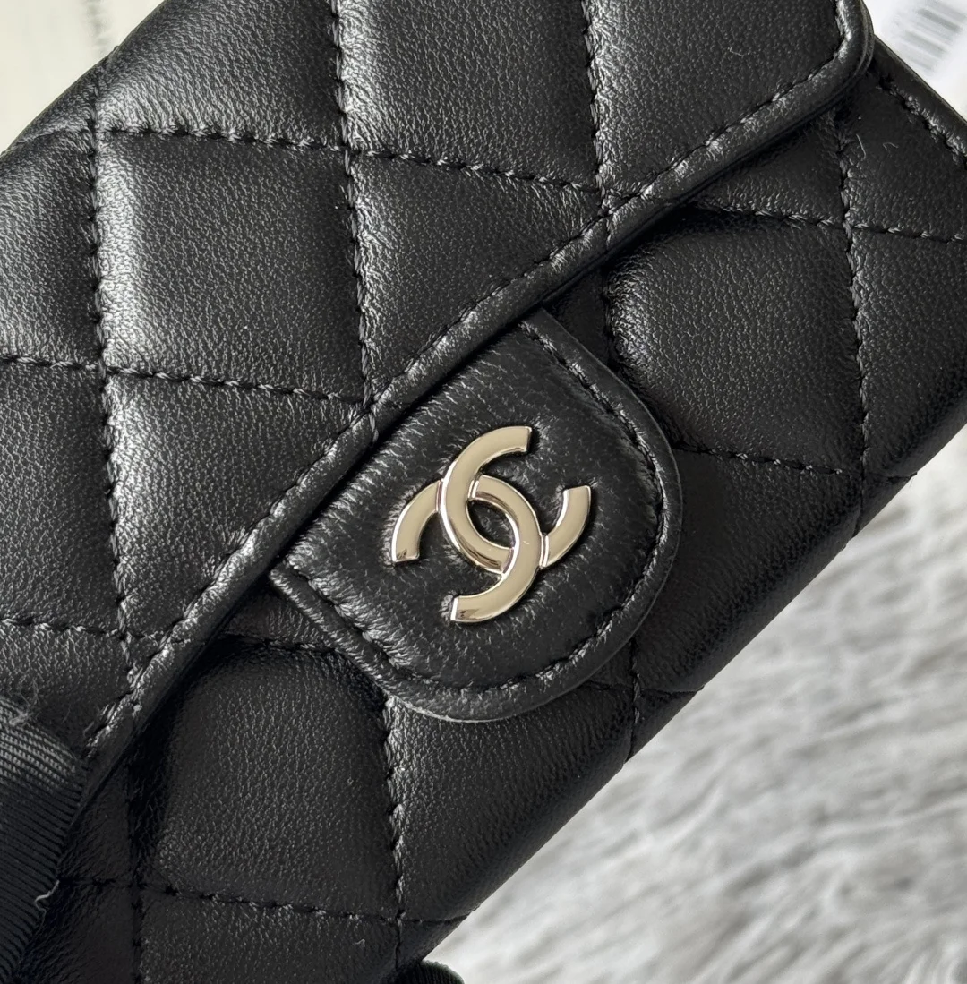 CHANEL lambskin caviar, small and large pebble texture, classic series, black, gold, silver hardware, exclusive real shots. The classic CF small card holder has arrived! It is very..