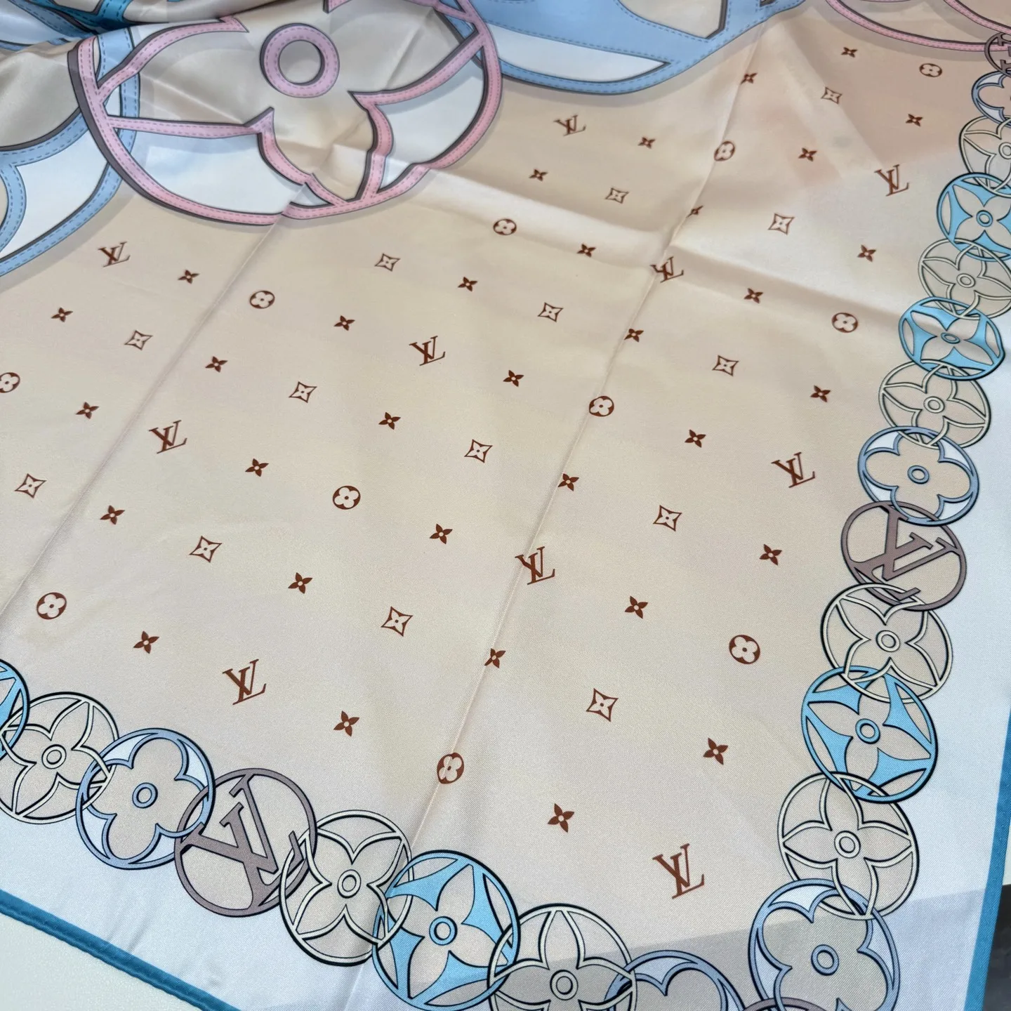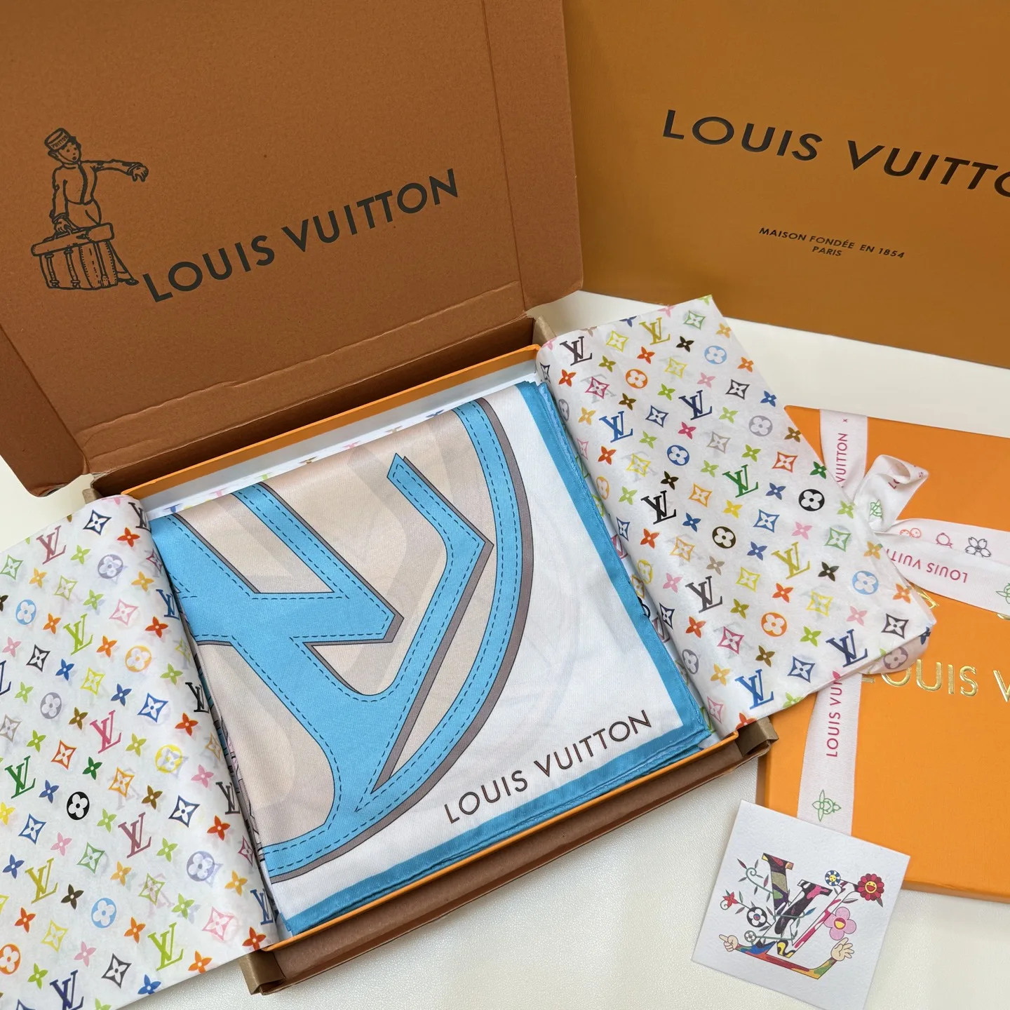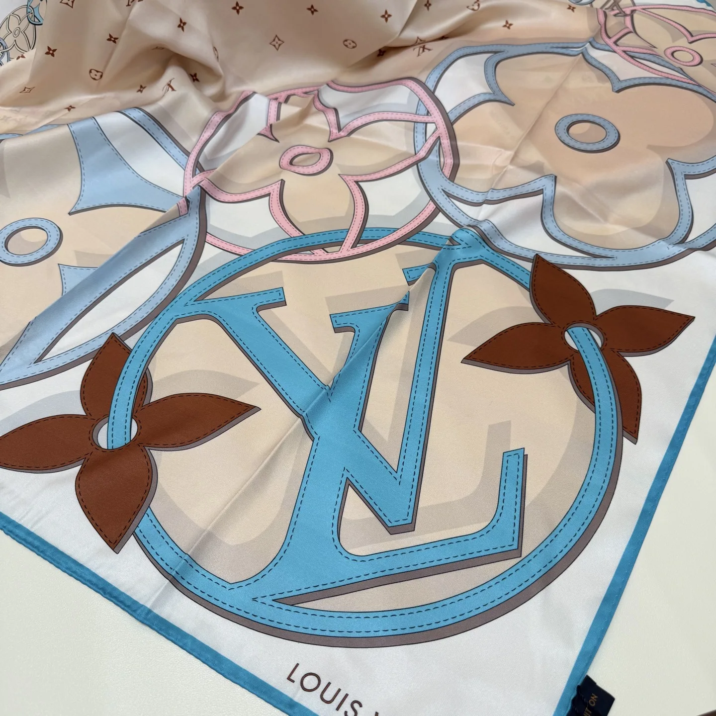 The LV Duality silk scarf creatively blends Louis Vuitton s iconic elements. The LV Circle logo occupies one corner, surrounded by overlapping Monogram flowers, seamlessly connecting to the exquisite Nano Monogram pattern, adding a classic touch to any style. 100% silk, 90 x 90 cm.