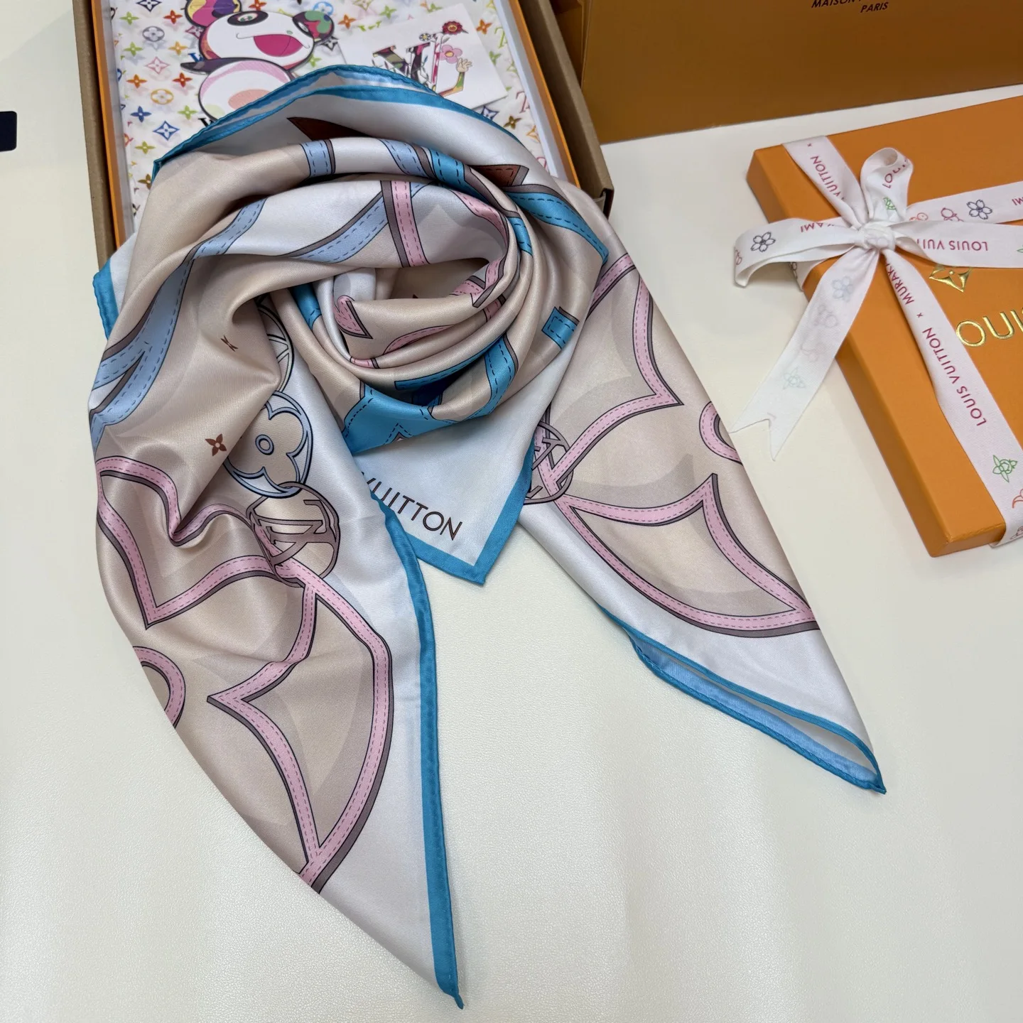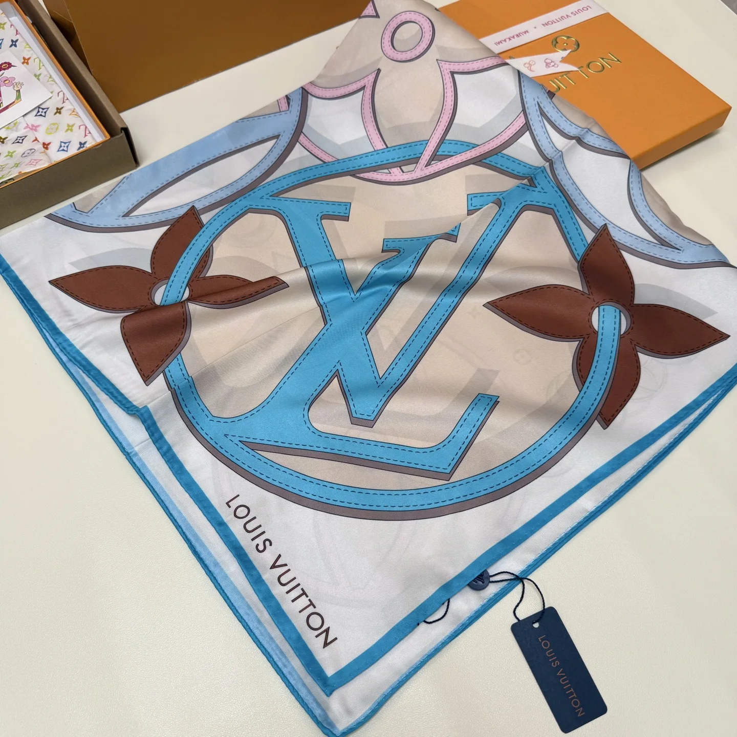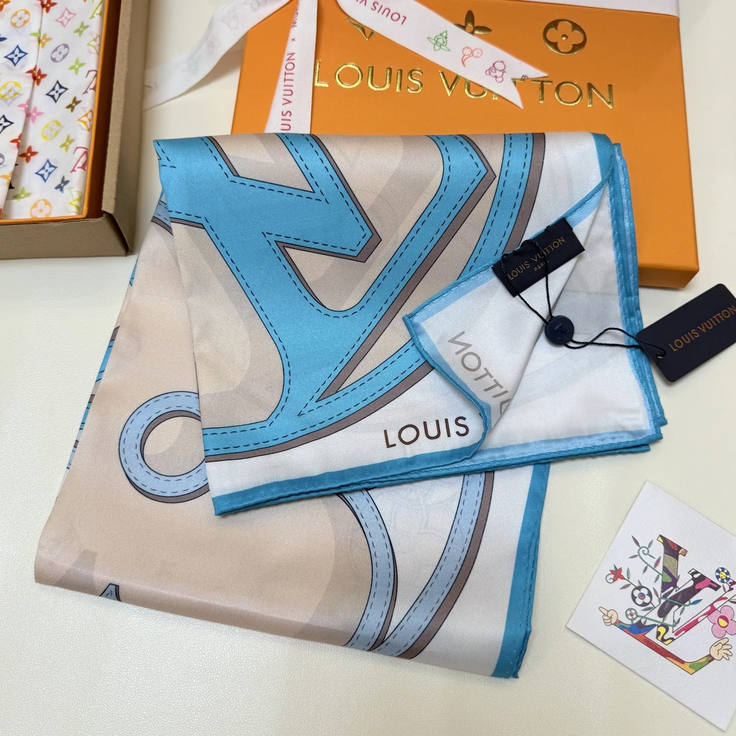 The LV Duality silk scarf creatively blends Louis Vuitton s iconic elements. The LV Circle logo occupies one corner, surrounded by overlapping Monogram flowers, seamlessly connecting to the exquisite Nano Monogram pattern, adding a classic touch to any style. 100% silk, 90 x 90 cm.
