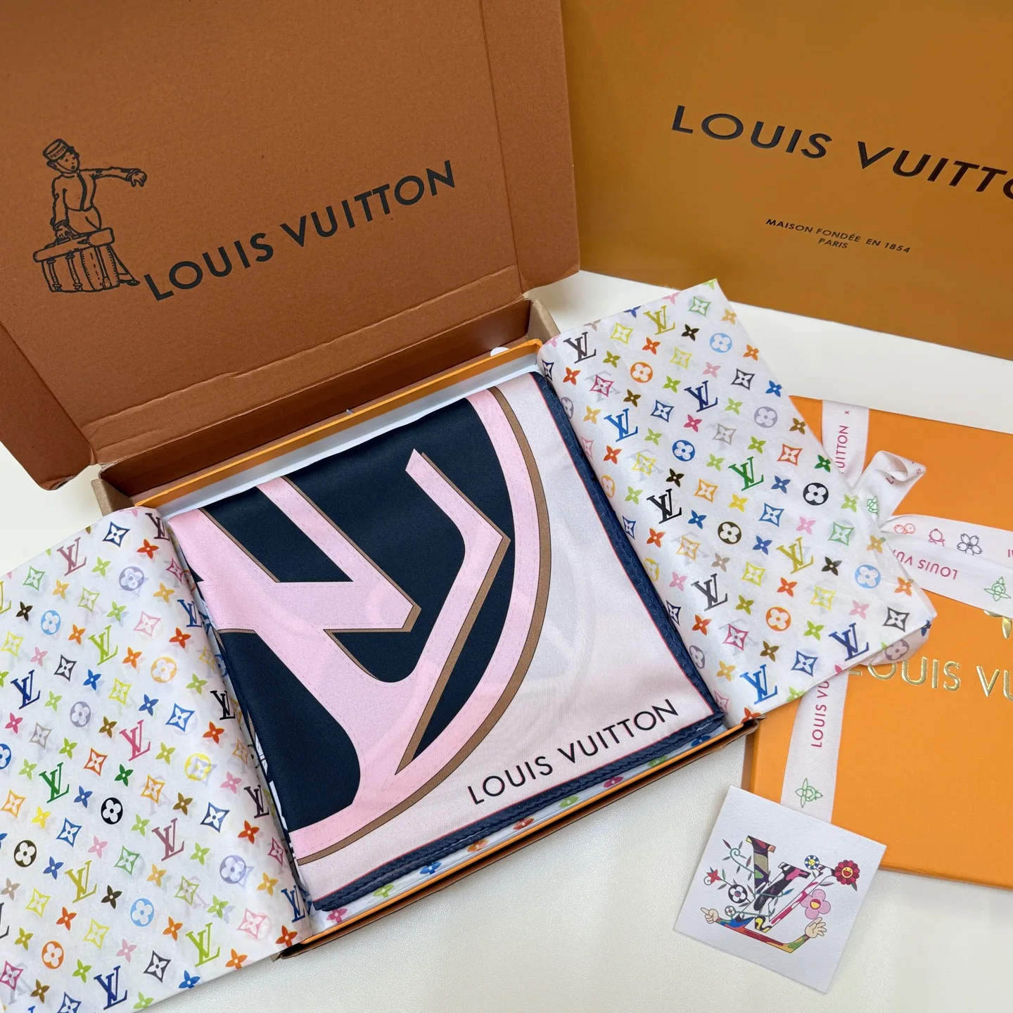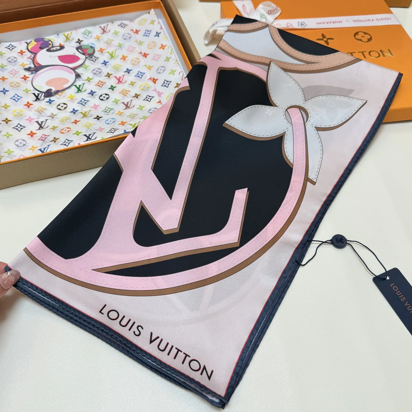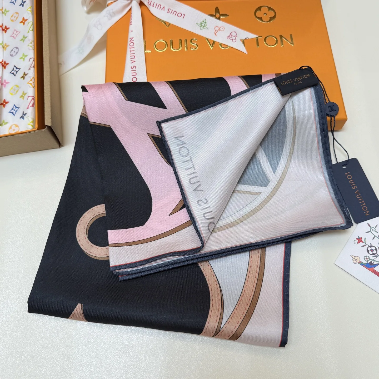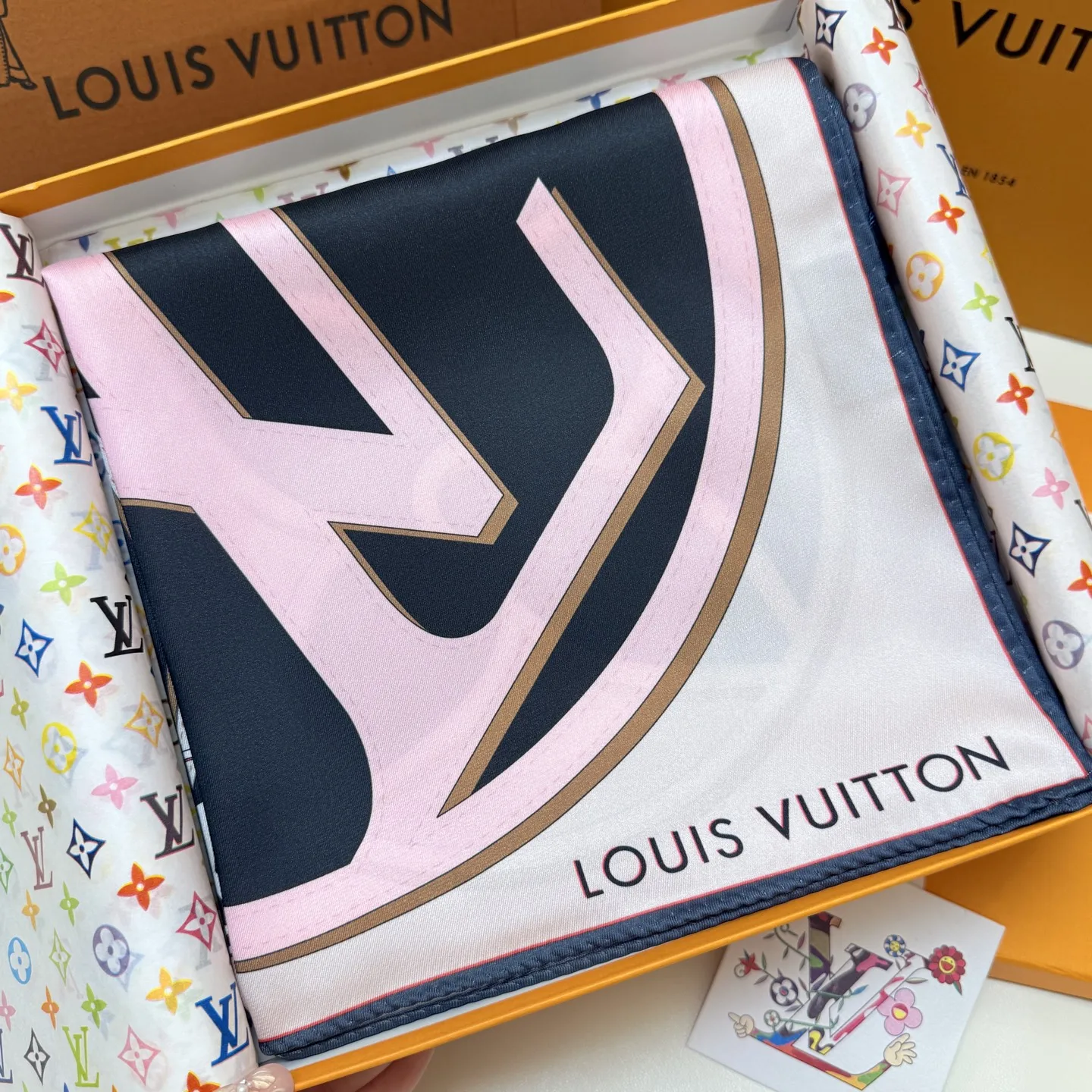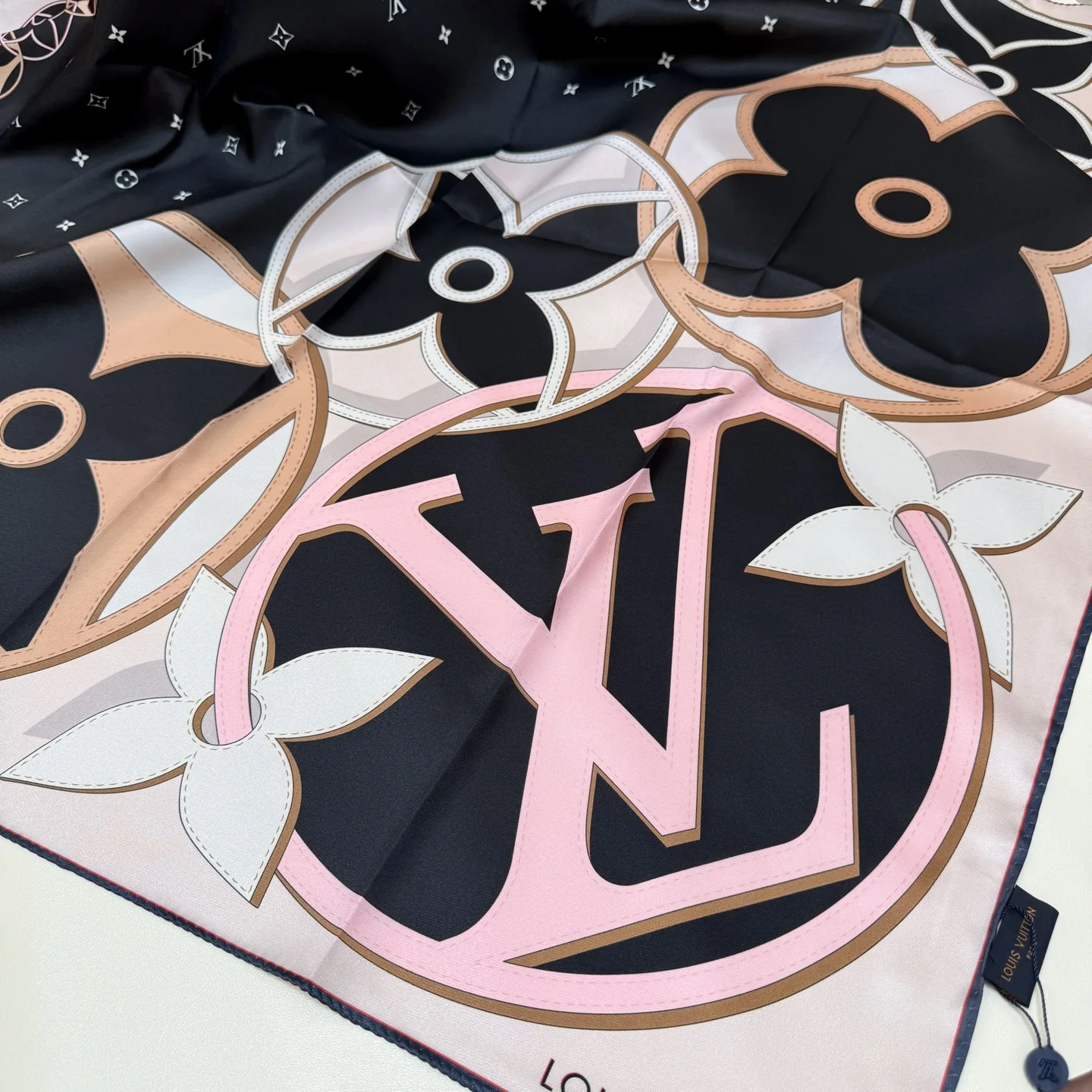 The LV Duality silk scarf creatively blends Louis Vuitton s iconic elements. The LV Circle logo occupies one corner, surrounded by overlapping Monogram flowers, seamlessly connecting to the exquisite Nano Monogram pattern, adding a classic touch to any style. 100% silk, 90 x 90 cm.