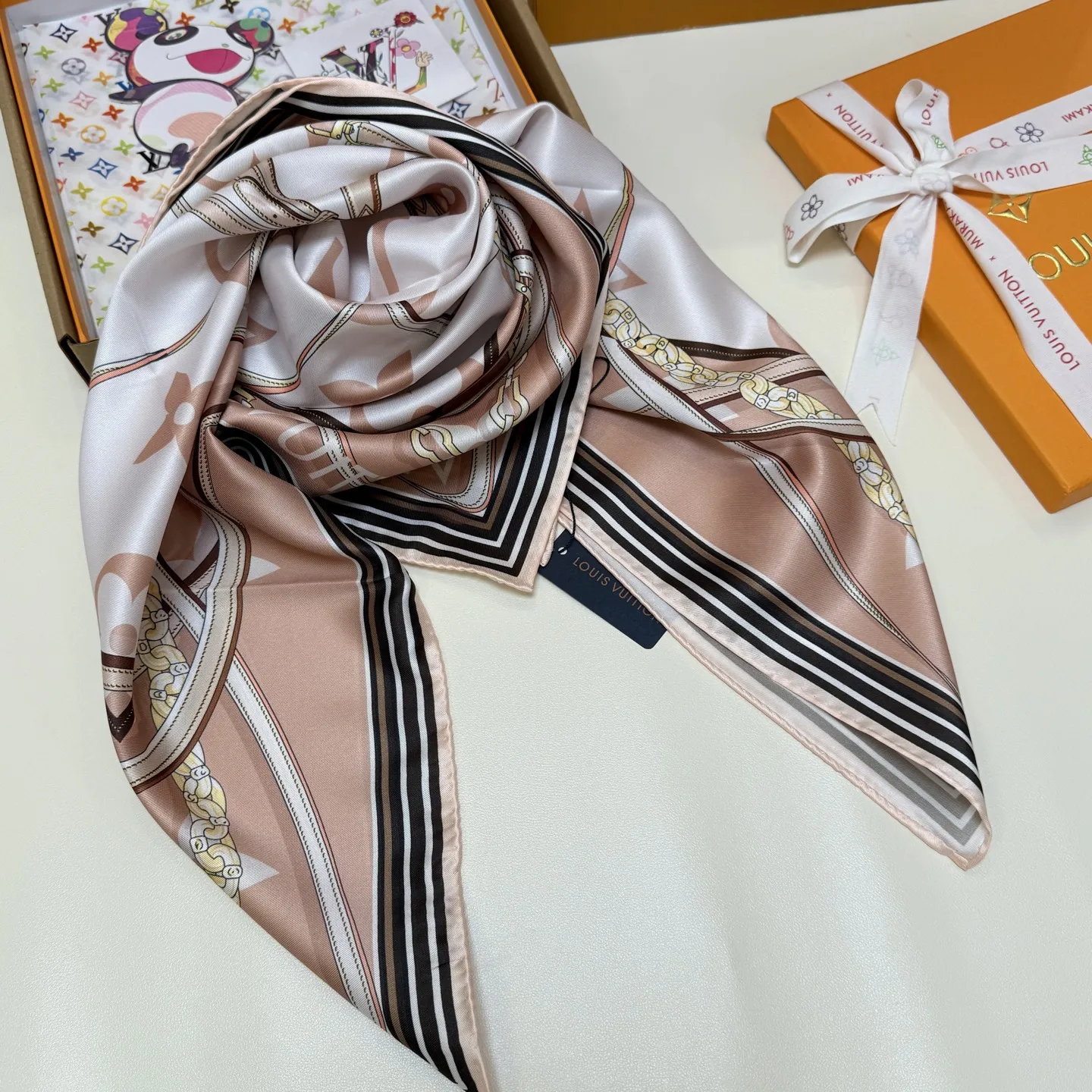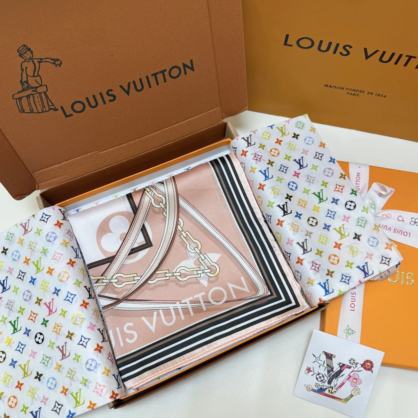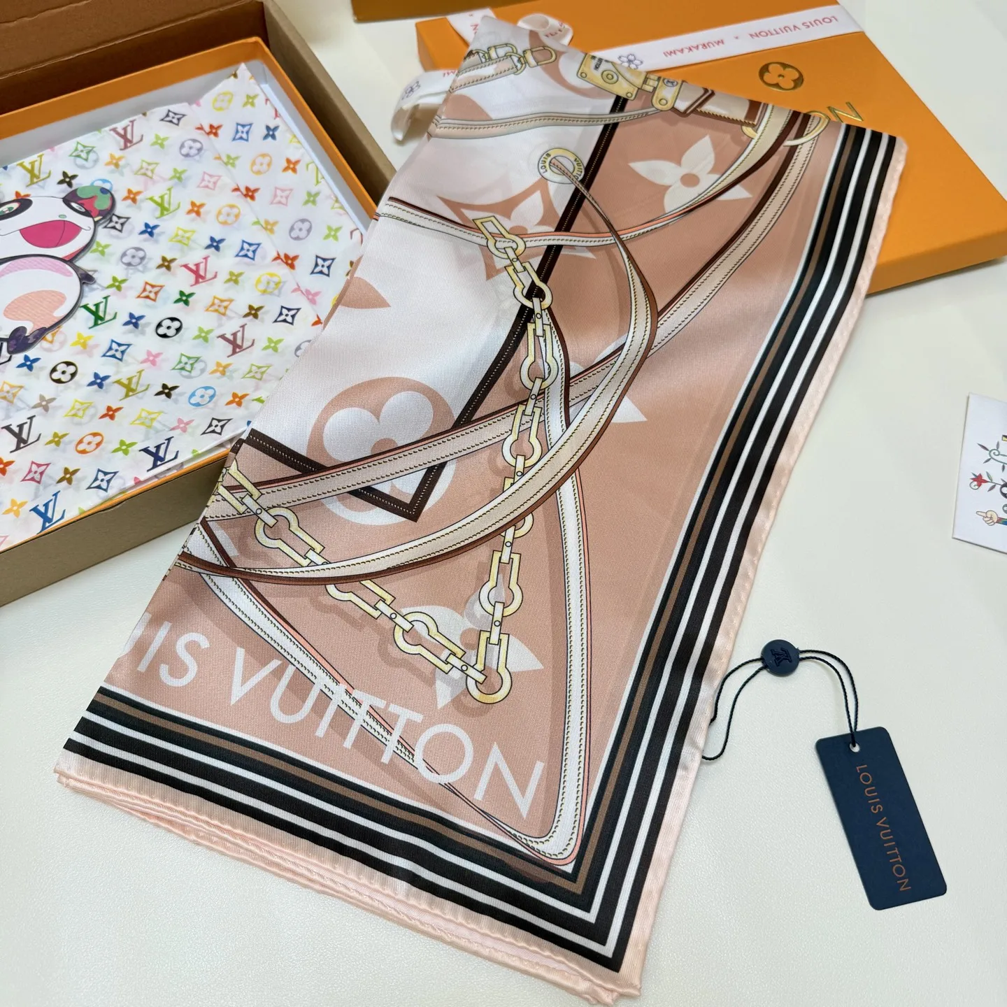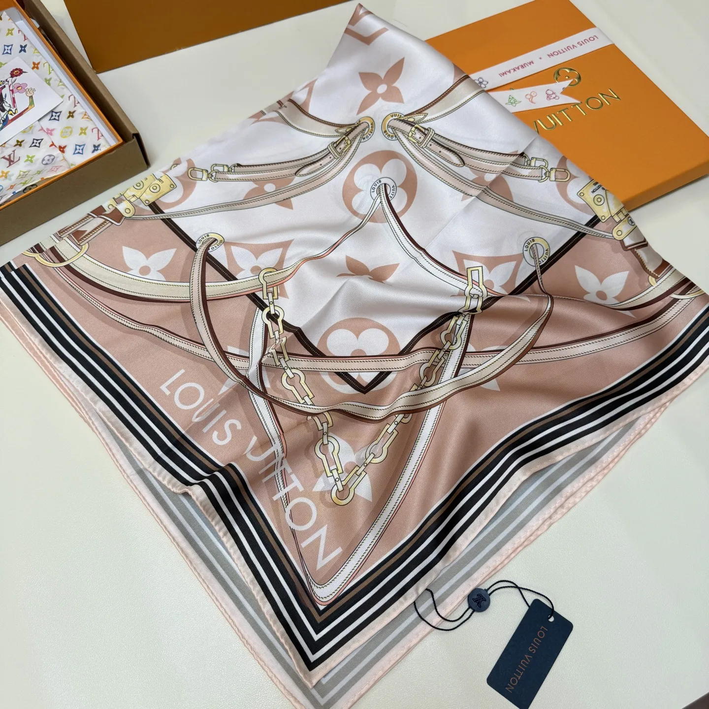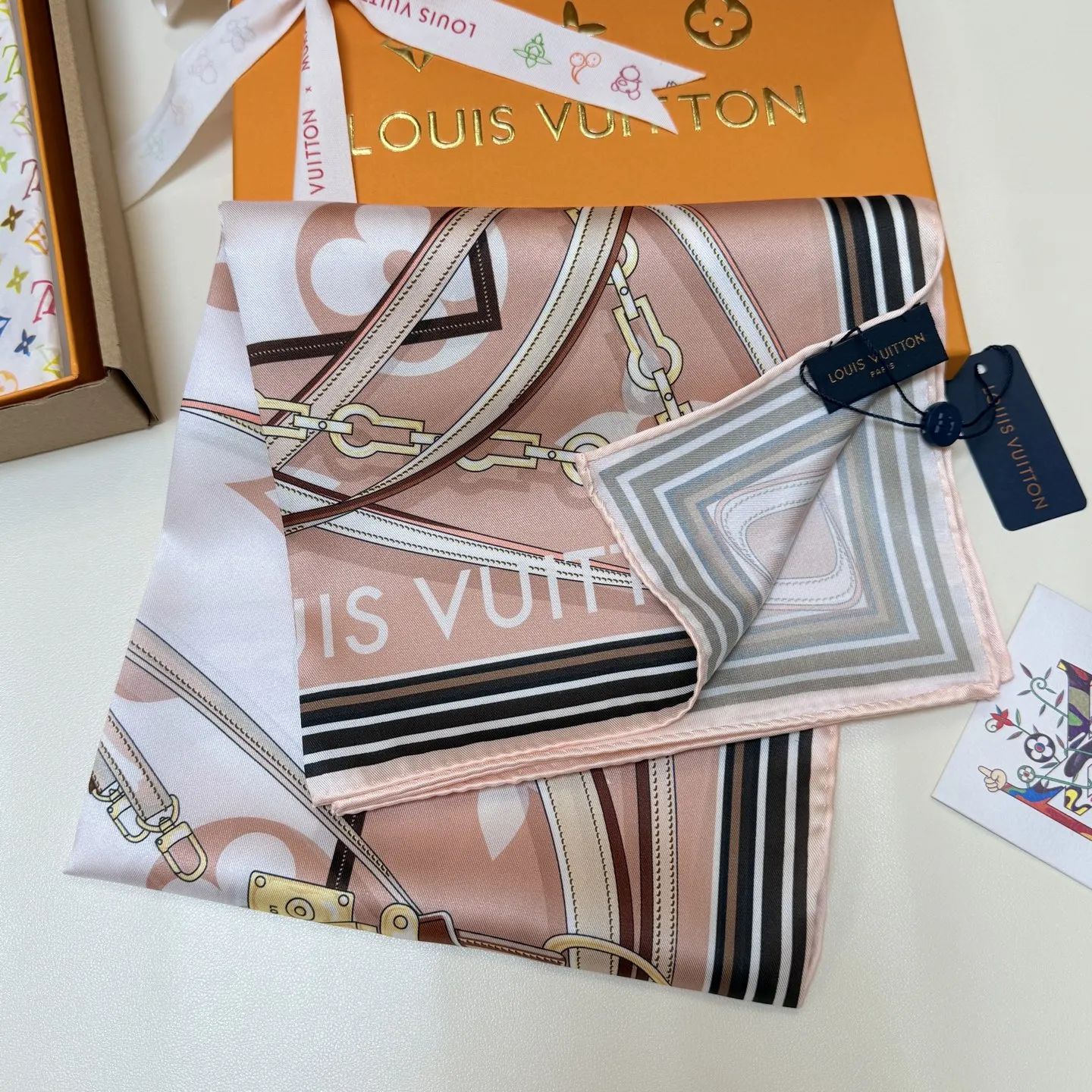 I sincerely recommend the new L Strap Pattern 90 Ultimate Monogram square scarf from LV, which reinterprets classic elements of Louis Vuitton with a modern style: the Giant Monogram pattern takes center stage, while the strap, padlock, and chain patterns form a Monogram floral tribute to the brand s leather goods collection. The contrasting border adds an eye-catching touch. Highly recommended, act fast 100% top-grade twill silk The price is truly great, and this size is just right for easy pairing, with exceptional quality You will understand the high-end quality and details as soon as you receive it; this is a heavyweight masterpiece A must-have recommendation for VIP clients 90*90cm