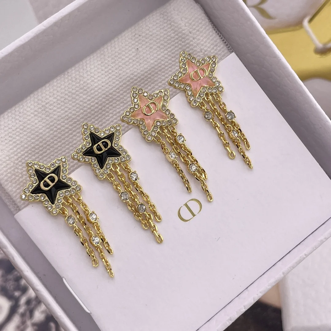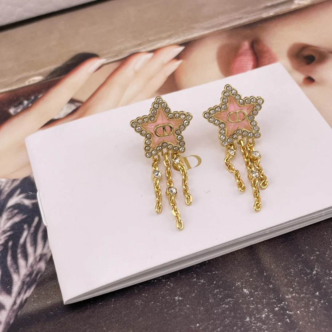 216730 [D Diamond-encrusted Star Tassel Earrings Pink Blue] Z 5400! Inquire with customer service for bulk orders. Dilraba Dilmurat s stunning earrings! Latest early Spring Cruise 2026 collection! Available in pink and night sky blue!