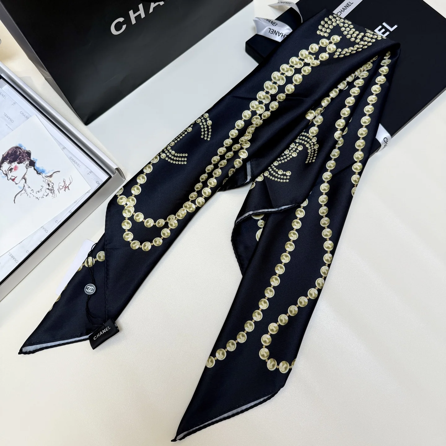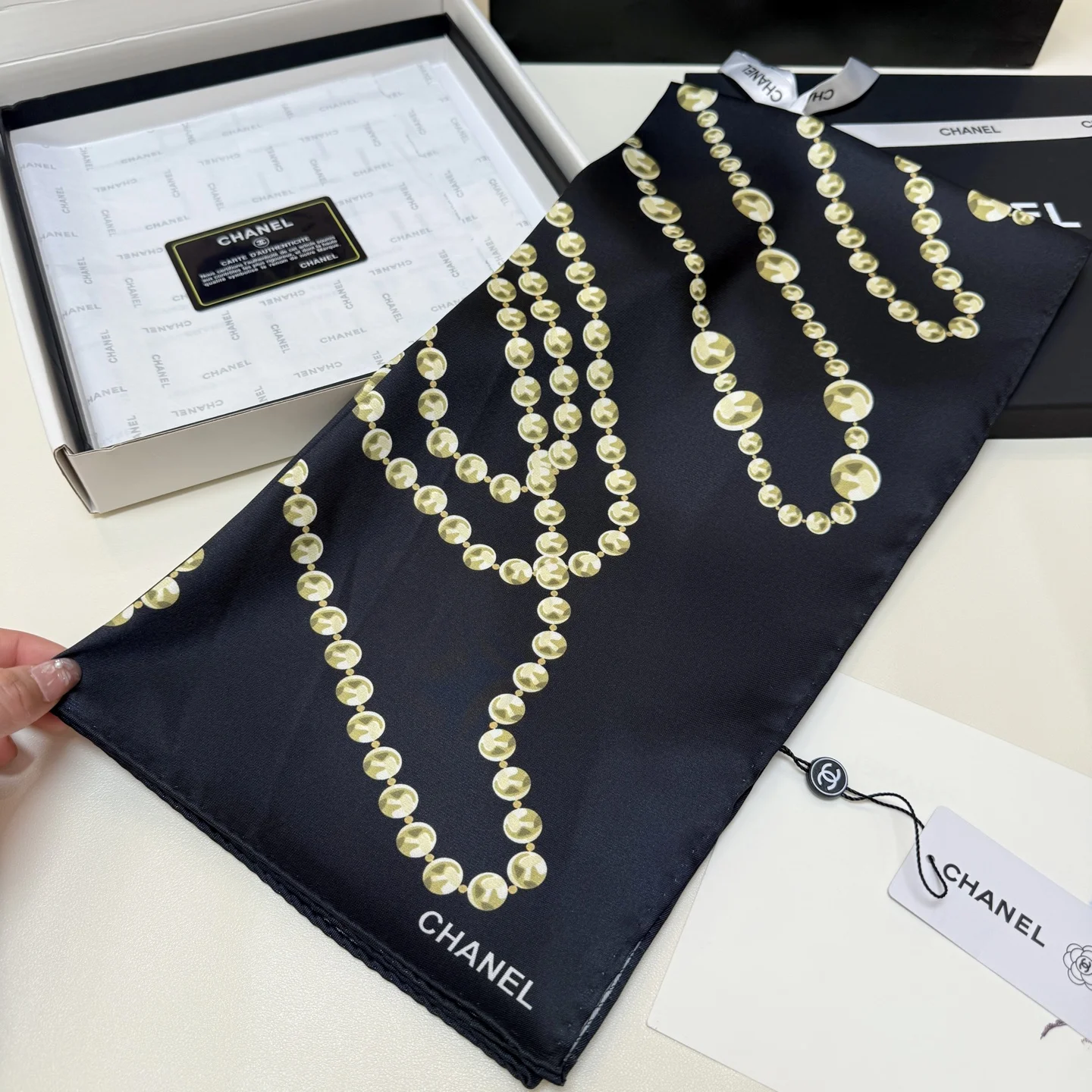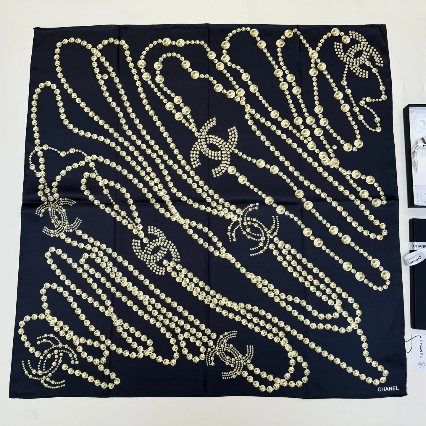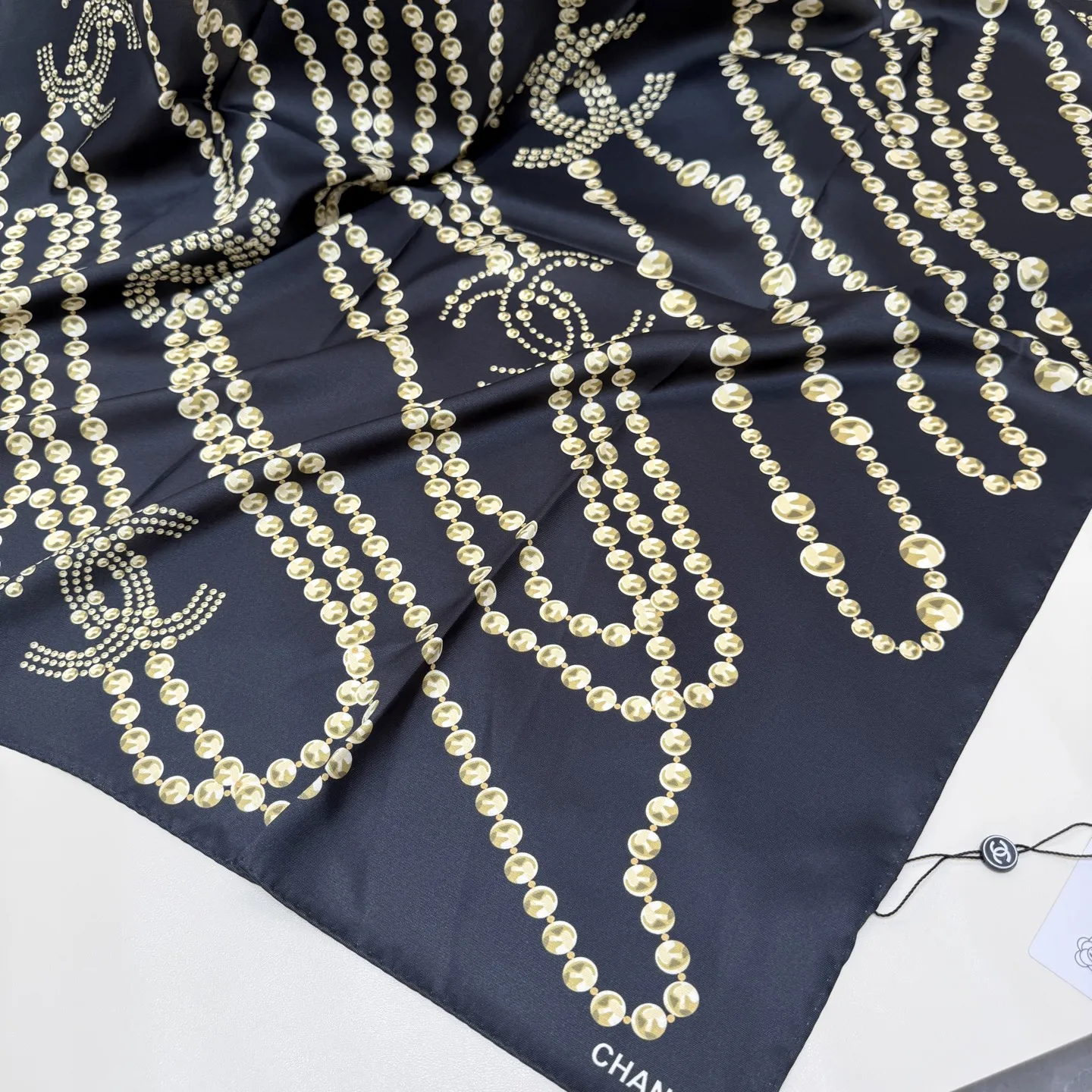 The actual product is a super beautiful pearl pattern silk scarf. It feels like Chanel hasn t released such a beautiful scarf in a long time; the pearl scarf from Chanel is truly exceptional.