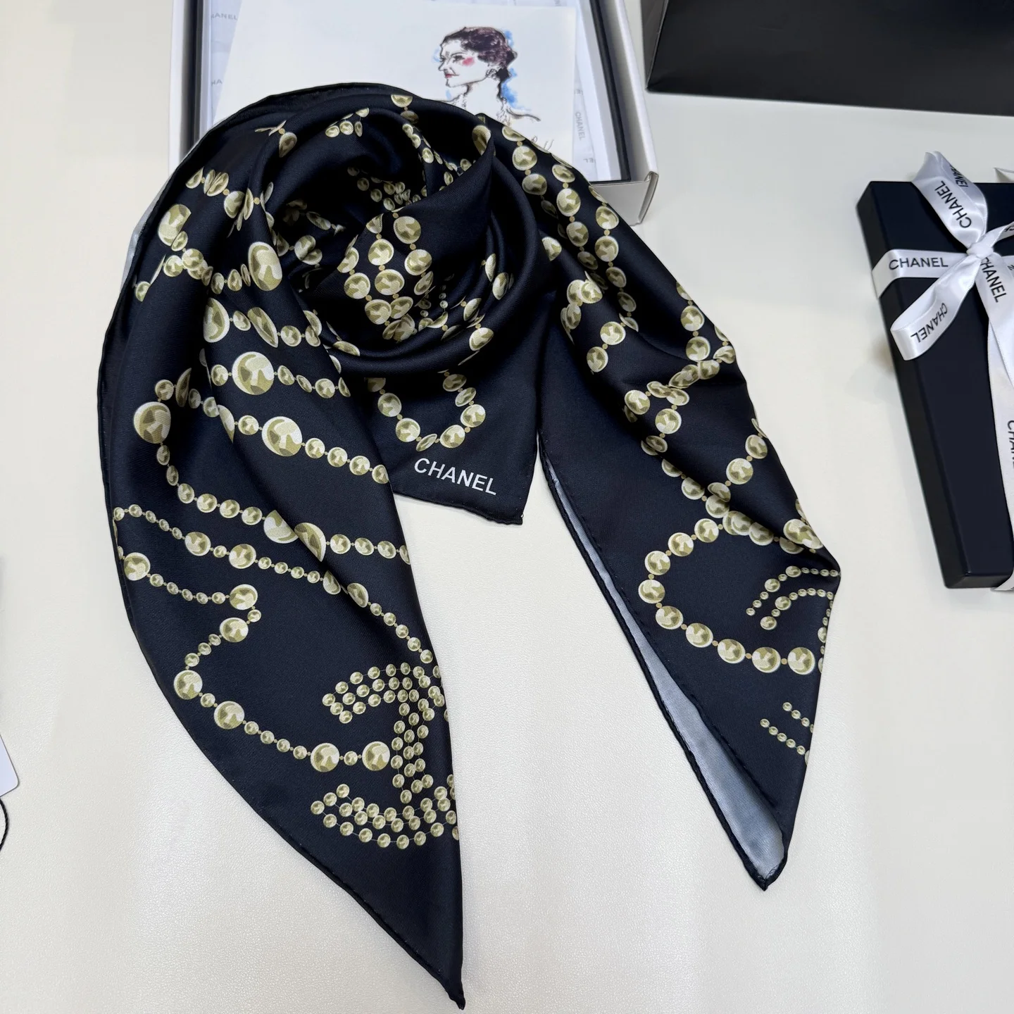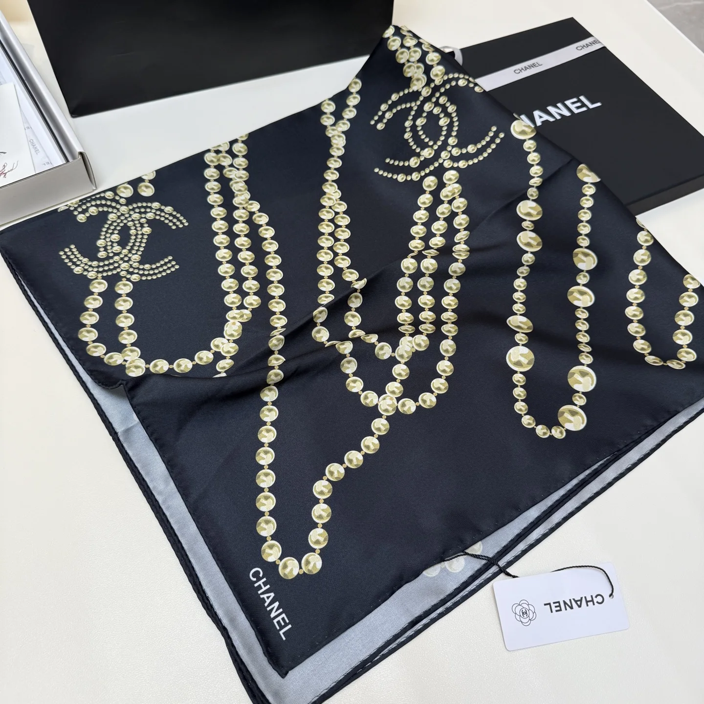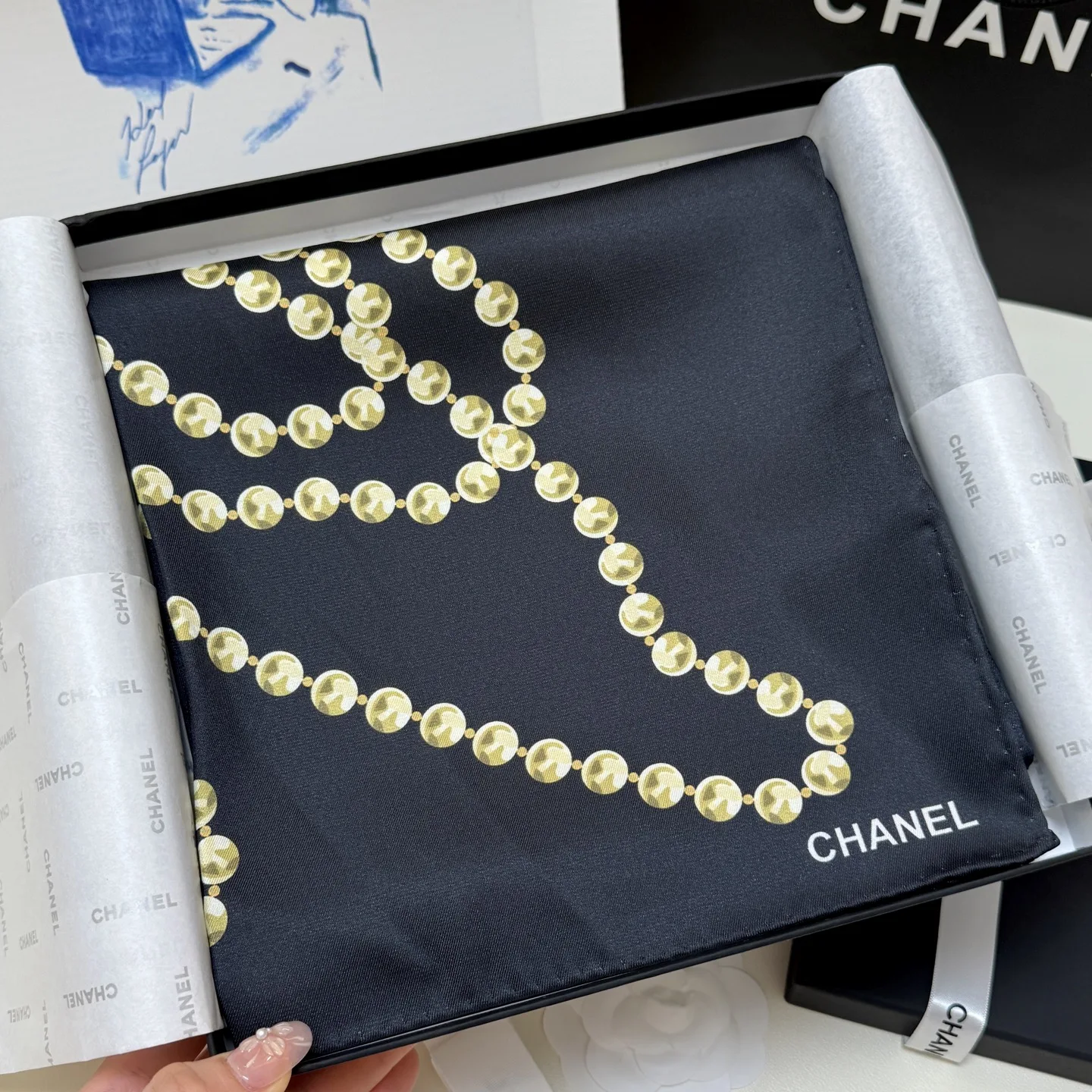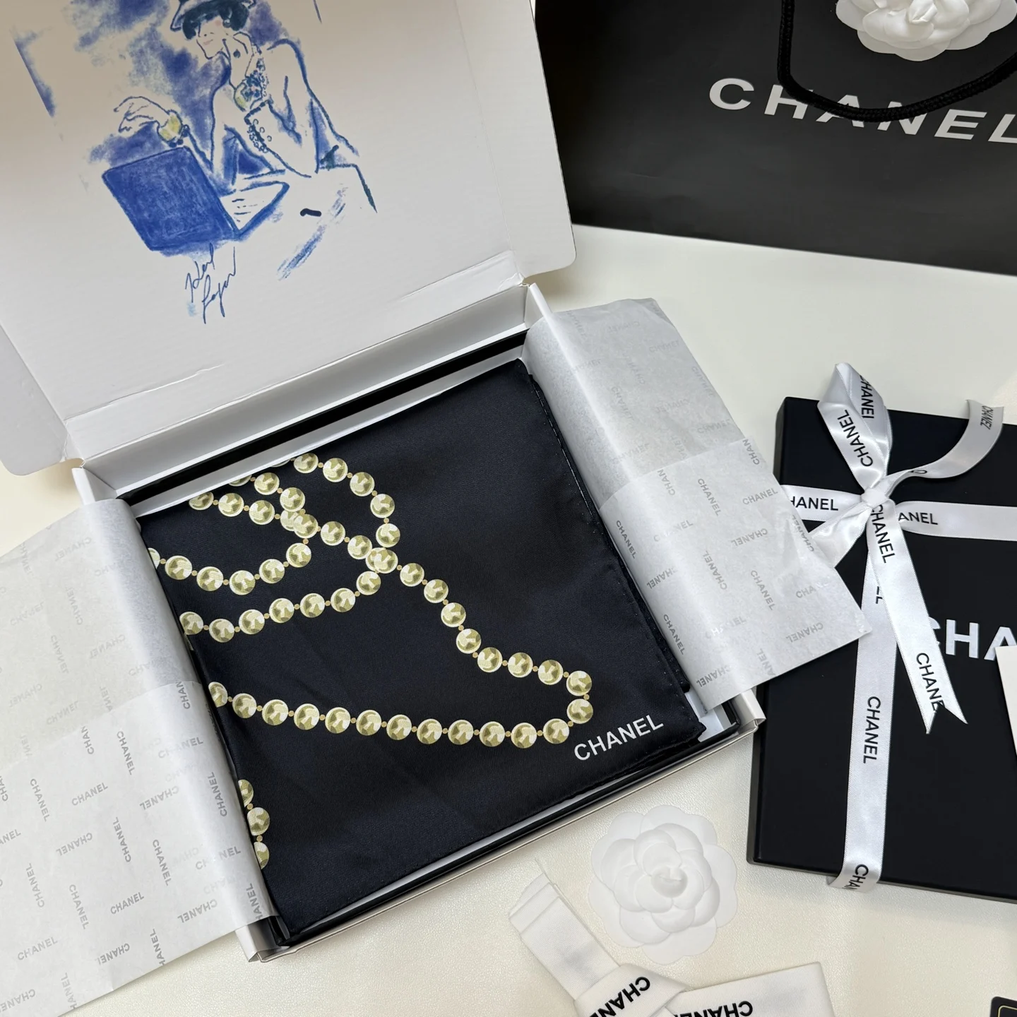 The actual product is a super beautiful pearl pattern silk scarf. It feels like Chanel hasn t released such a beautiful scarf in a long time; the pearl scarf from Chanel is truly exceptional.