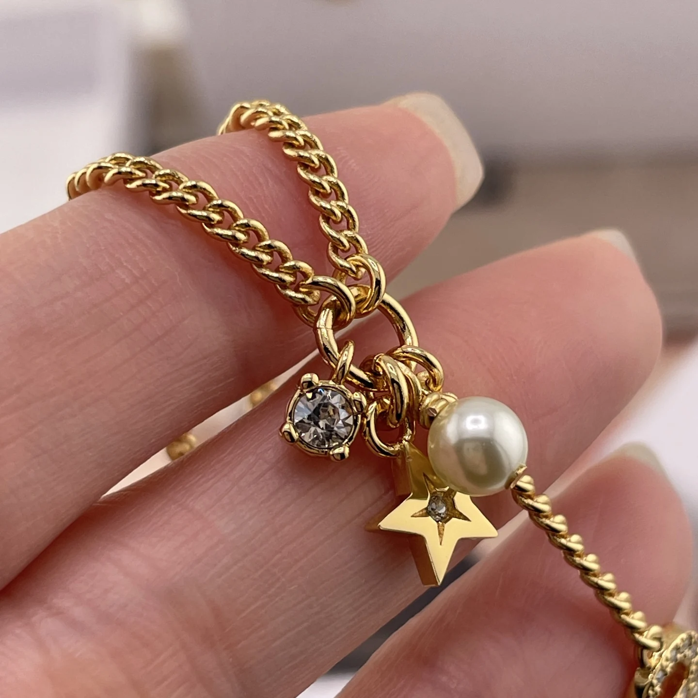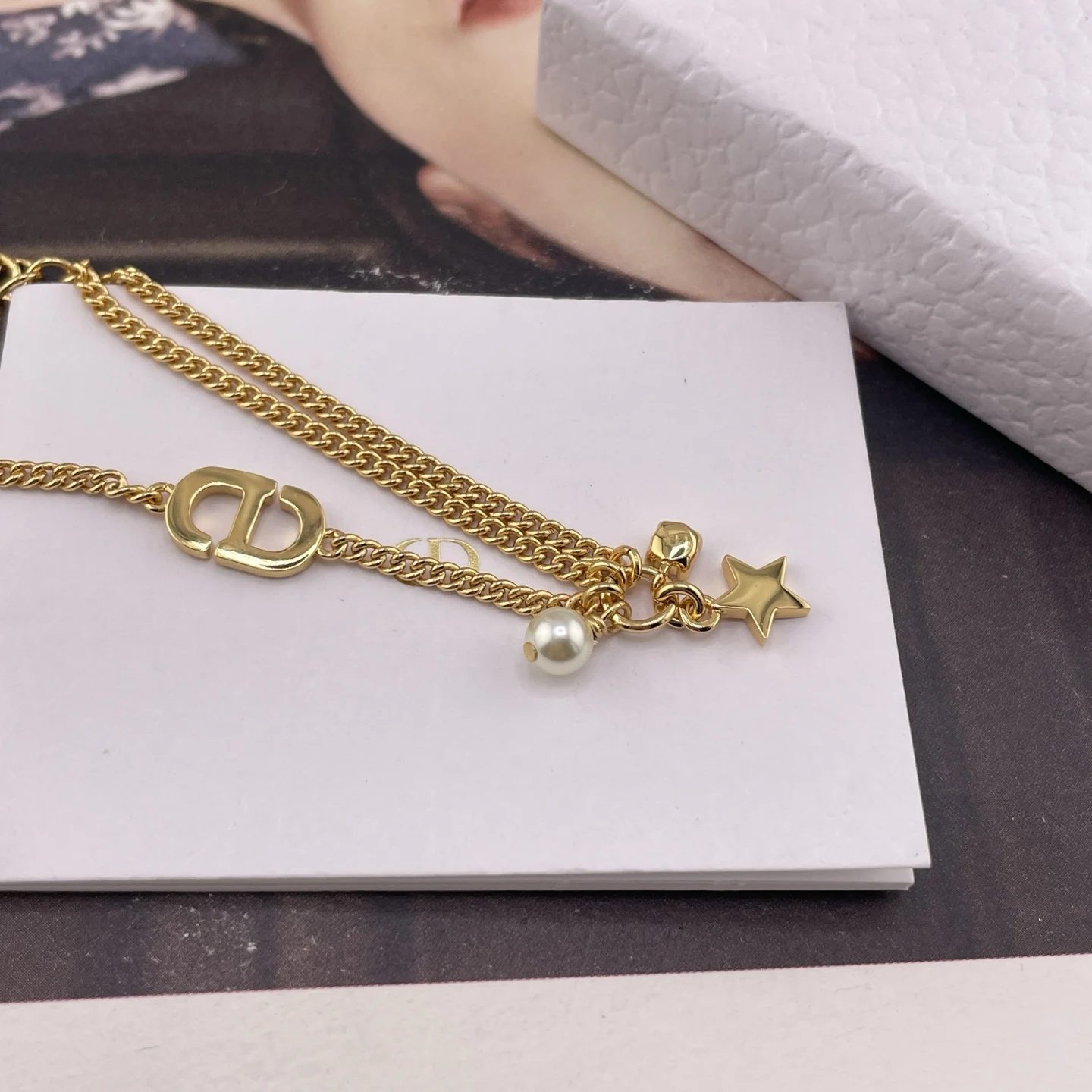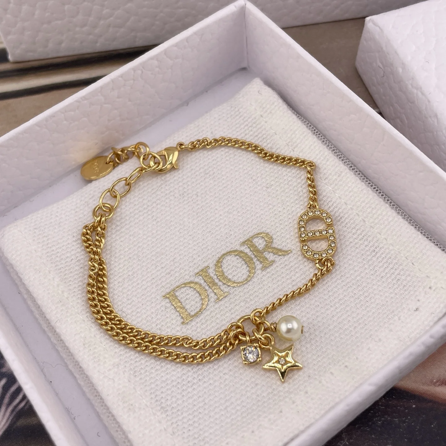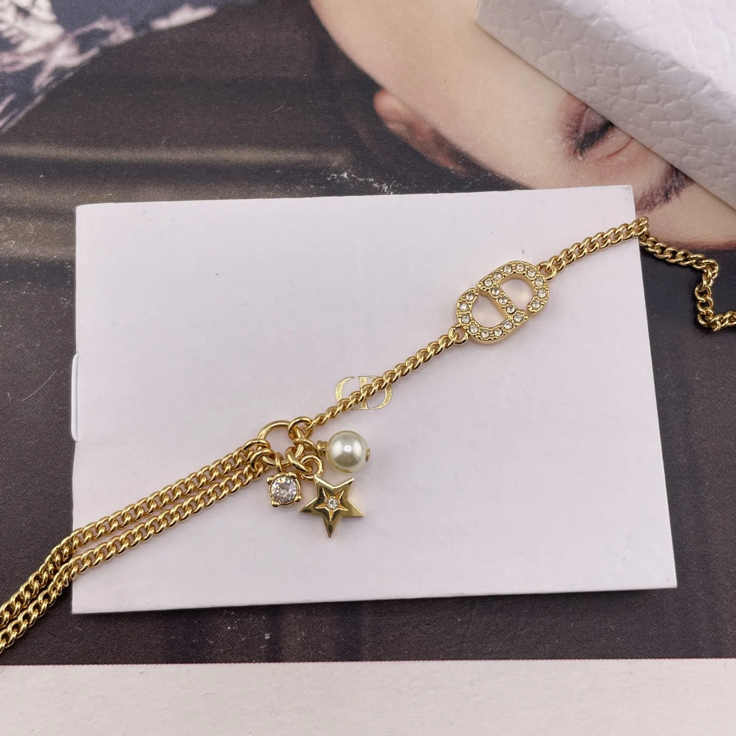216763 [D Small Hoop Star Diamond Bead Bracelet] Latest stunning star series, classic full diamond CD logo, delicate and fashionable stars, Swarovski silver shadow phantom diamonds, Swarovski beads.