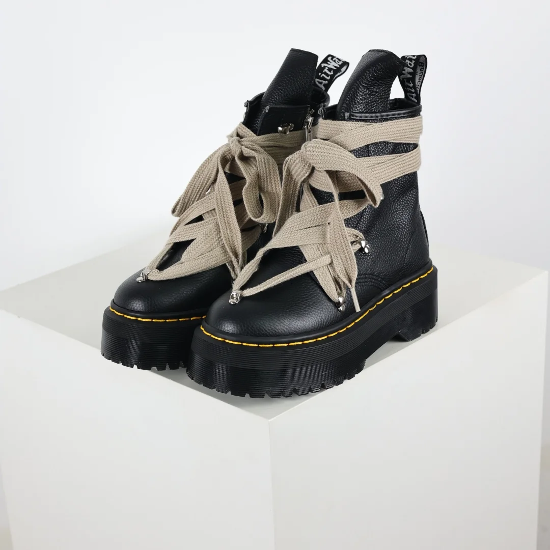 Gothic Luxury Brand - Rick Owens/Dr. Martens Collaboration Upgraded F Version Original Last Development Men s Shoes Includes Tote Bag and a Pair of Shoelaces!! Made of Hard Two-Layer Split Leather Upper Material Thick and Durable PVC Transparent Crystal Rubber Outsole (Heel Height 5.5cm, with Obvious Height-Increasing Effect!!) Glue-Free Construction Real Outsole Stitching Includes Tote BagThe Coolest Martin Boots, a Collaboration Between Two Unconventional Brands