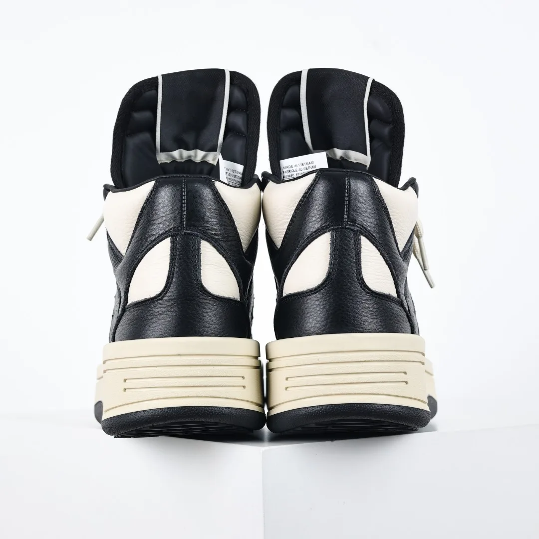 Ultra-thick sole, high-top design, and exaggerated tongue all embody Rick Owens signature aesthetic.