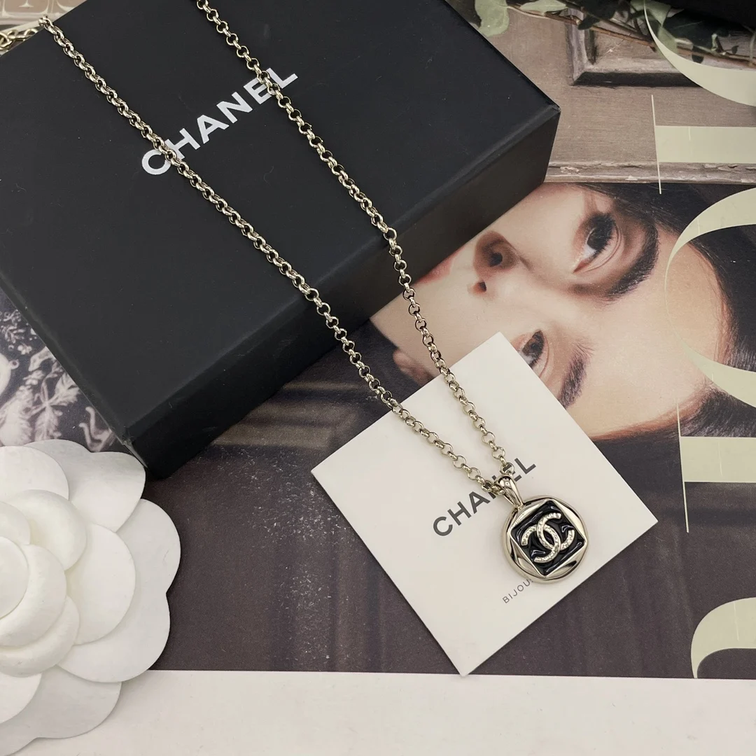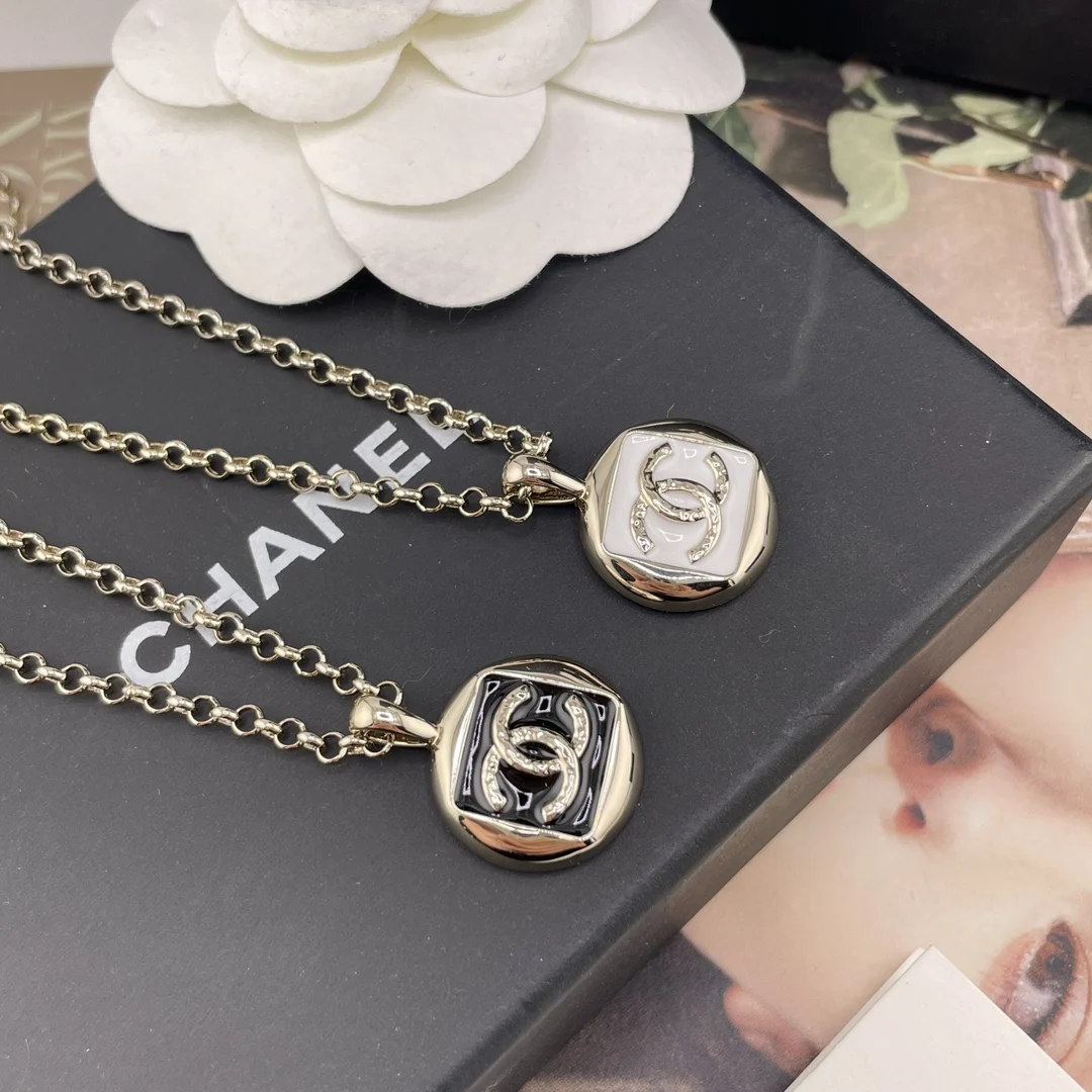 216748 [Xiang Yuan Brand Square Enamel Necklace Black White] 26C Early Spring Newest Collection, First Release Online