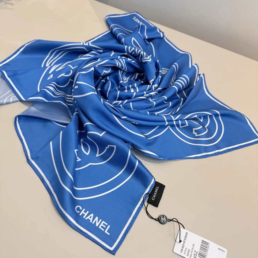 Classic Little Chanel Chanel Double C Square Scarf Absolutely stunning, a top-tier masterpiece used by royalty The classic element pattern design is extremely beautiful, truly flattering on the skin tone, versatile, and aesthetically pleasing—judge for yourself