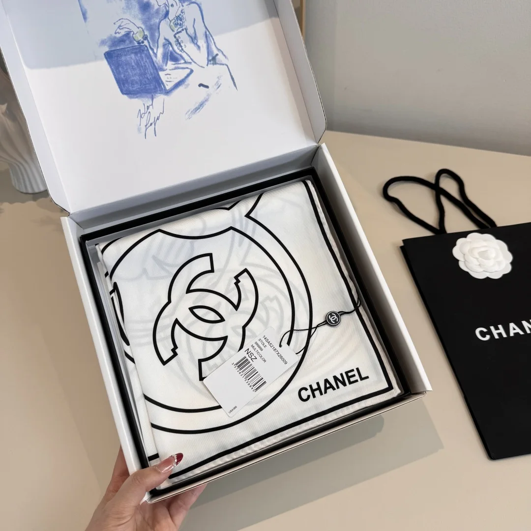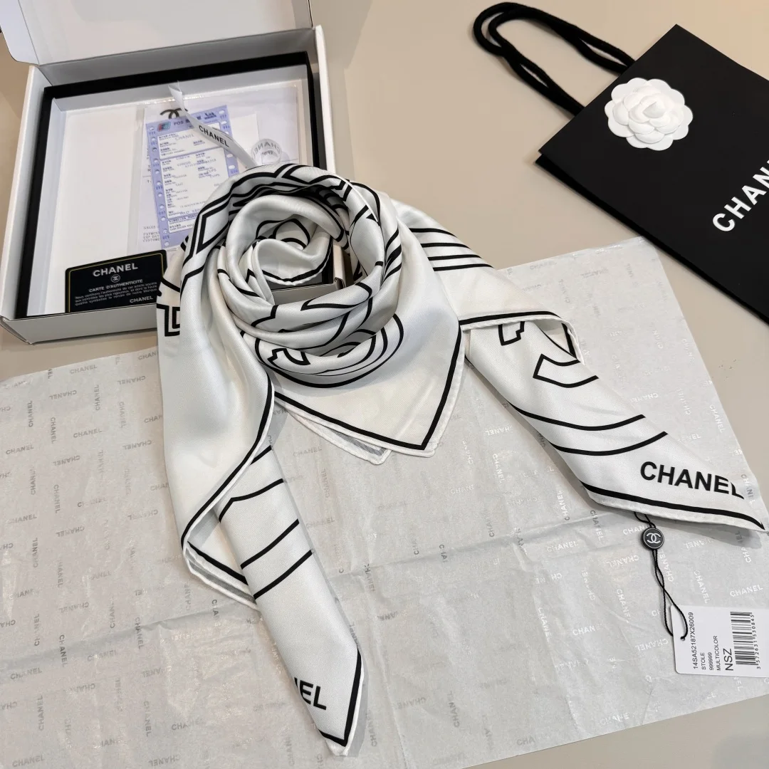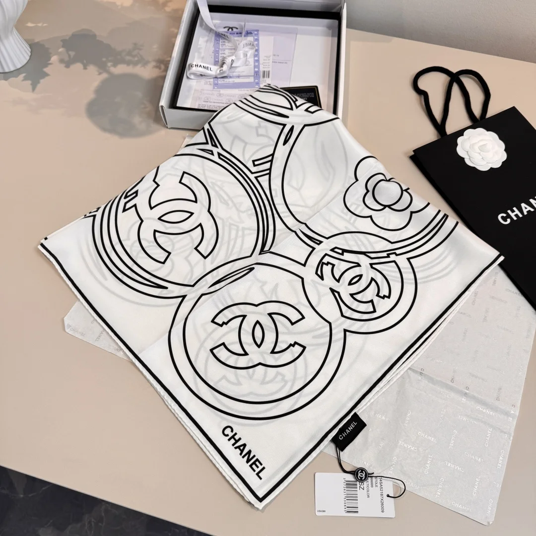Classic Little Chanel Chanel Double C Square Scarf Absolutely stunning, a top-tier masterpiece used by royalty The classic element pattern design is extremely beautiful, truly flattering to the skin tone, versatile, and visually appealing—judge for yourself