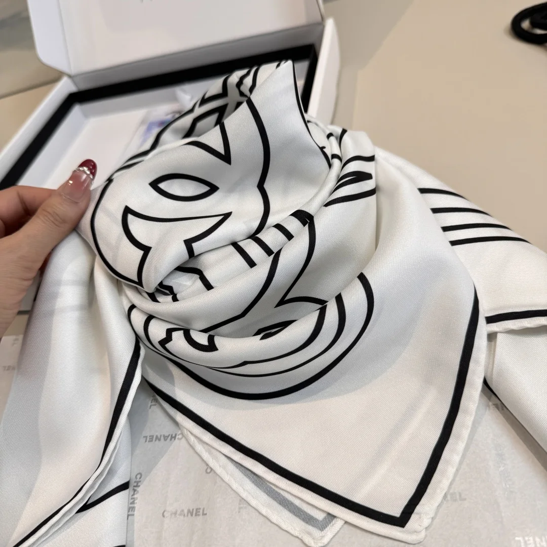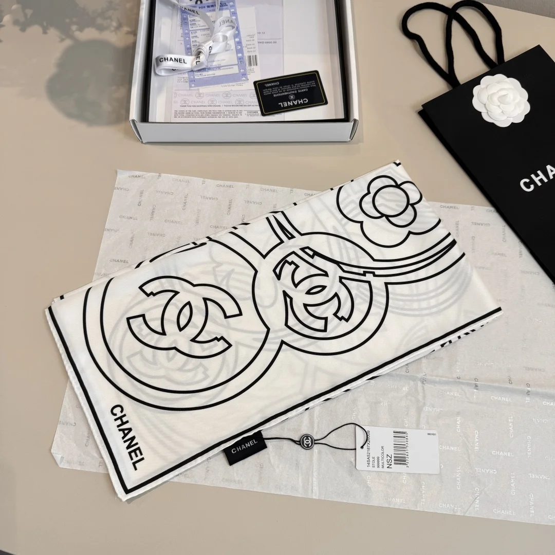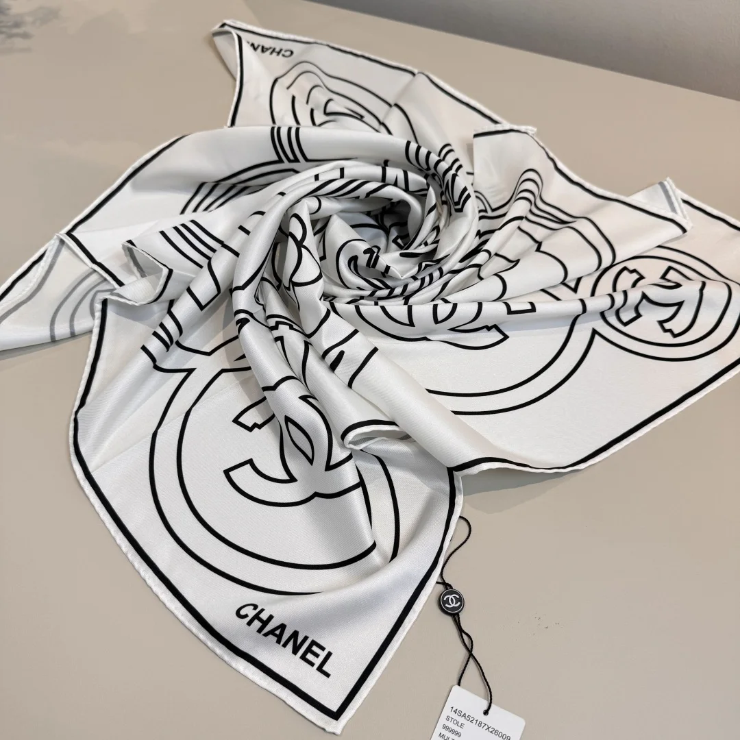 Classic Little Chanel Chanel Double C Square Scarf Absolutely stunning, a top-tier masterpiece used by royalty The classic element pattern design is extremely beautiful, truly flattering to the skin tone, versatile, and visually appealing—judge for yourself