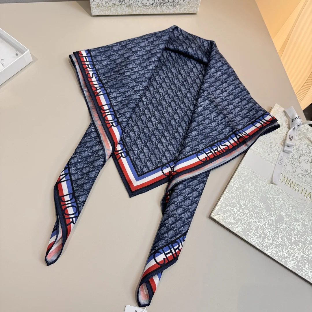 The classic Dior Oblique print combined with red, white, and blue stripes offers high brand recognition. The Oblique pattern was first launched in 1967, symbolizing Dior s classic and luxury. The scarf can be worn as a neck accessory, headscarf, or bag decoration, effortlessly enhancing your style.
