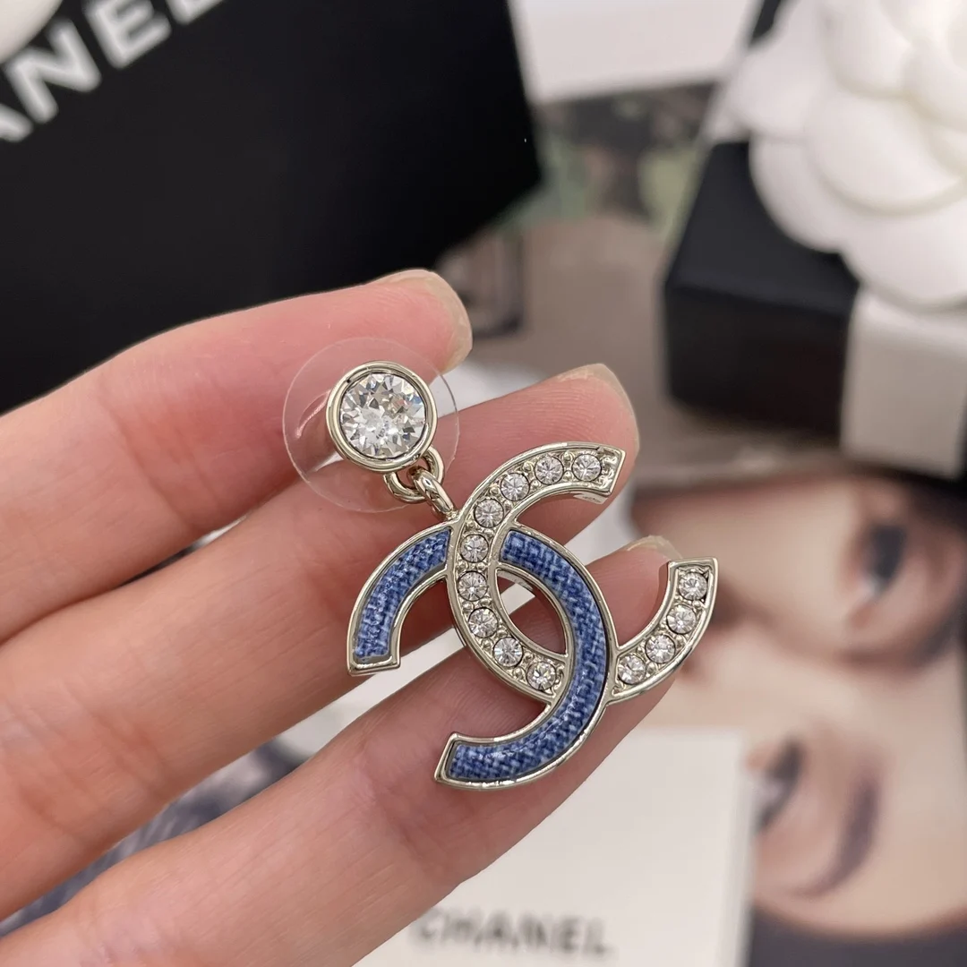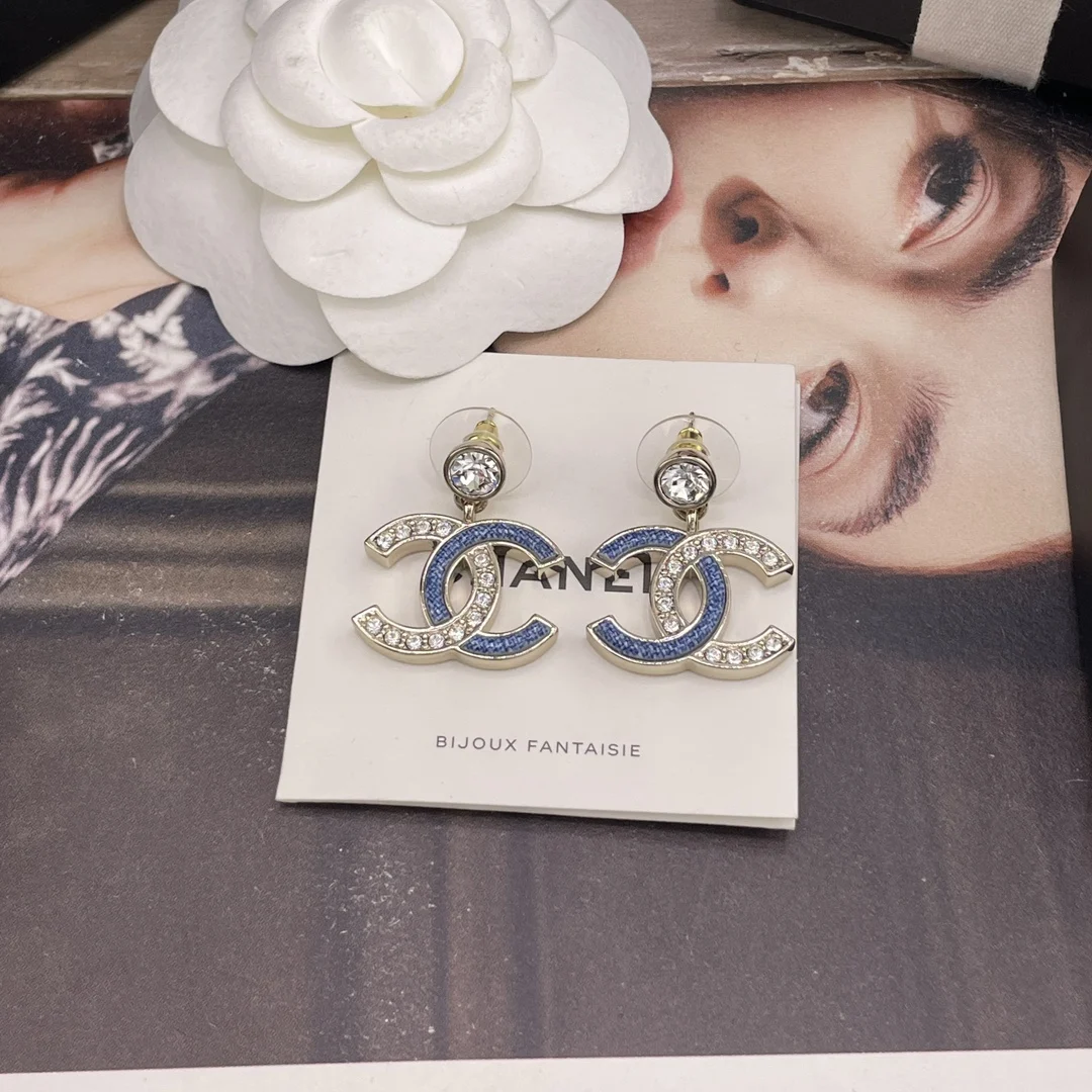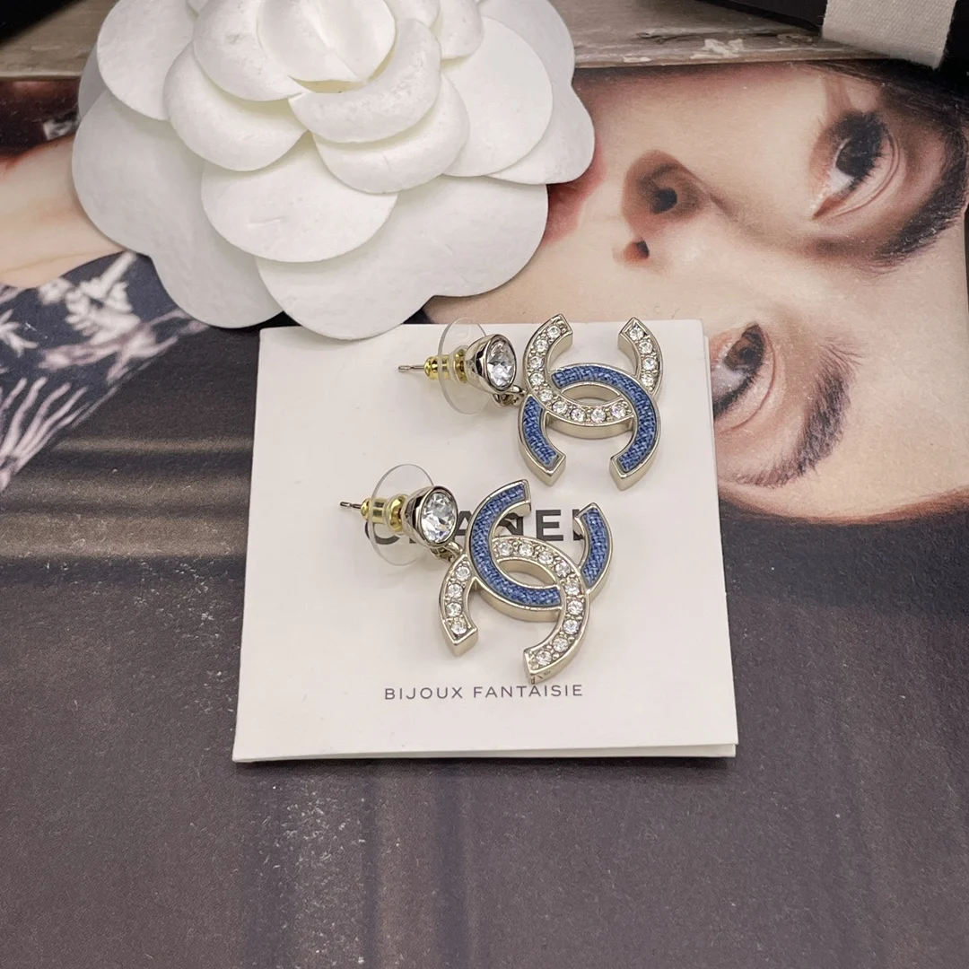 216747 [Fragrant Diamond Pendant Faux Denim Embellished Double C Earrings] 26 Early Spring s Hottest Faux Denim Collection