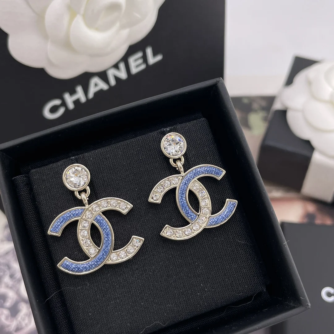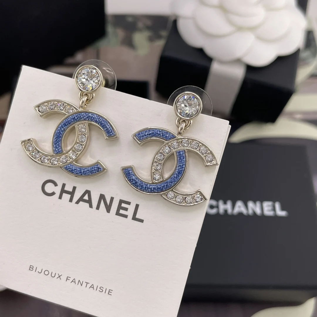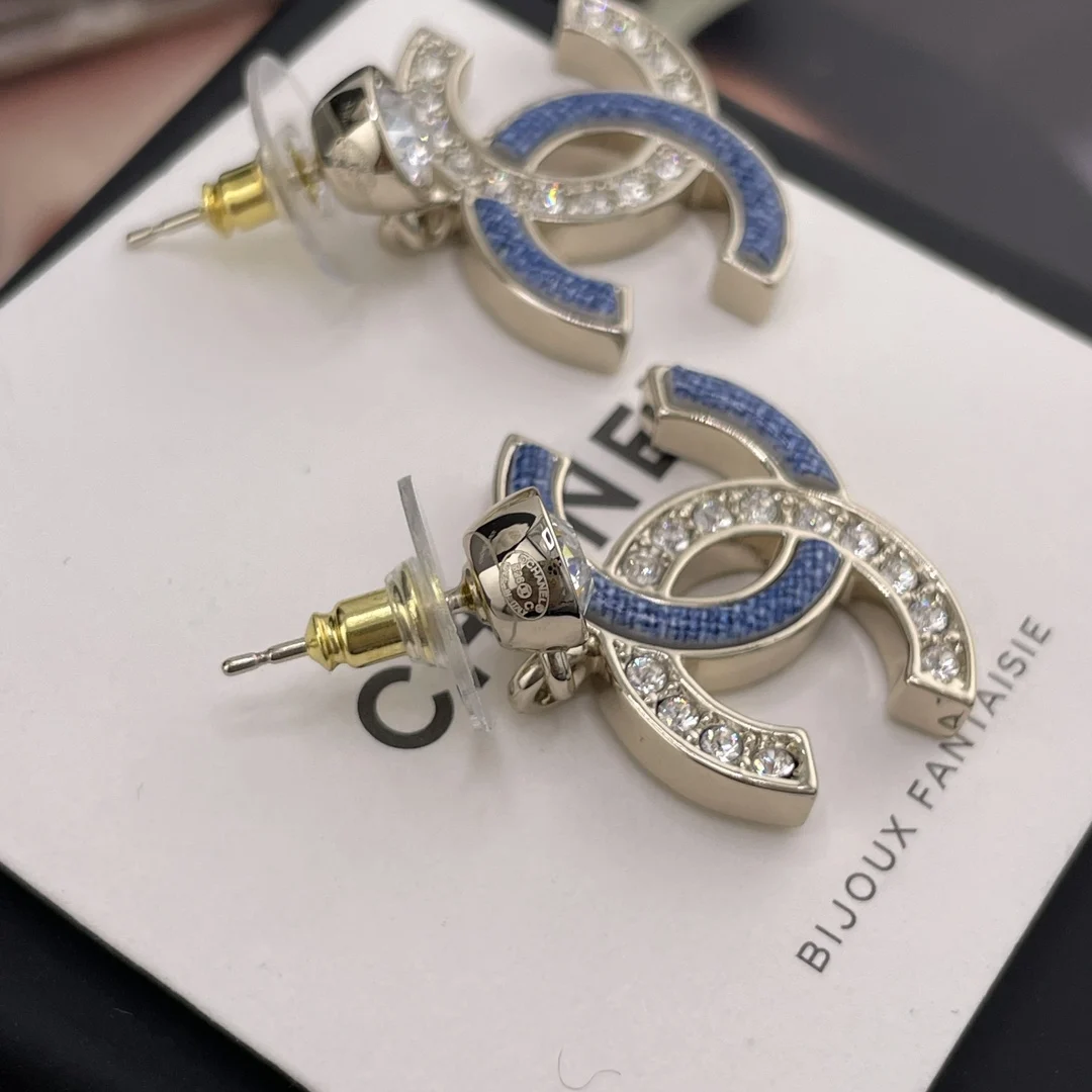 216747 [Fragrant Diamond Pendant Faux Denim Embellished Double C Earrings] 26 Early Spring s Hottest Faux Denim Collection