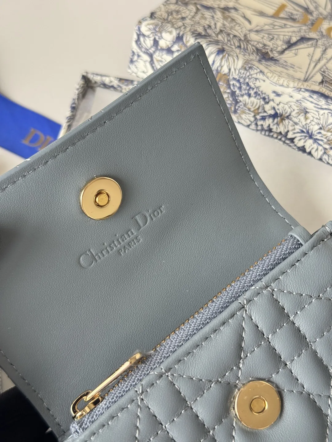 Item Number: S0966ONMJ_M413 Size: 11x7.5x2.5cm This My Dior Glycine bag is compact, practical, and unique. It is meticulously crafted from blush pink lambskin leather, adorned with a woven pattern, and features a D.I.O.R. charm on the front to enhance its elegance. Sophisticated and refined, it can hold various daily essentials, suitable for various occasions, and can be paired with other My Dior items. The front includes a D.I.O.R. charm, two card slots, one zippered compartment, and one spacious interior compartment. Made in Italy.