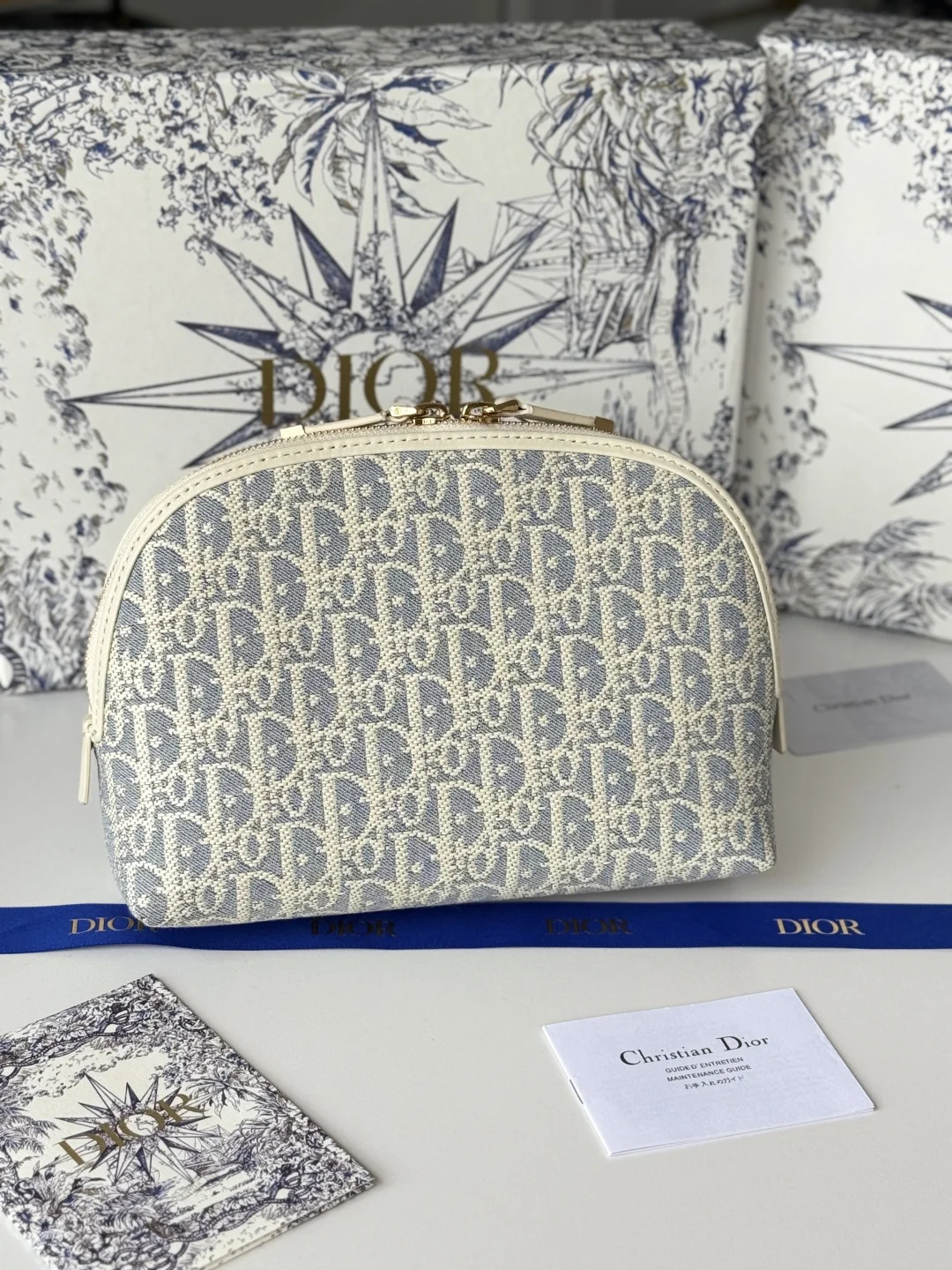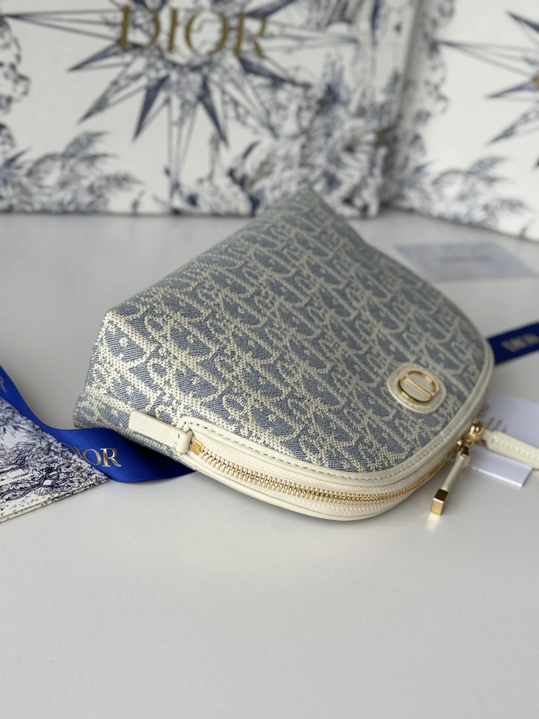 This pouch features Dior s iconic blue Oblique motif. It has two chic zipped compartments and a patch pocket to hold various items. The large size can be paired with other Oblique print items.* CD signature on the front* Blue Oblique print* 1 patch pocket* Technical fabric lining* Dimensions: 15.5 cm x 24 cm x 7 cm* Reference number: S2123 CTZQ _M928