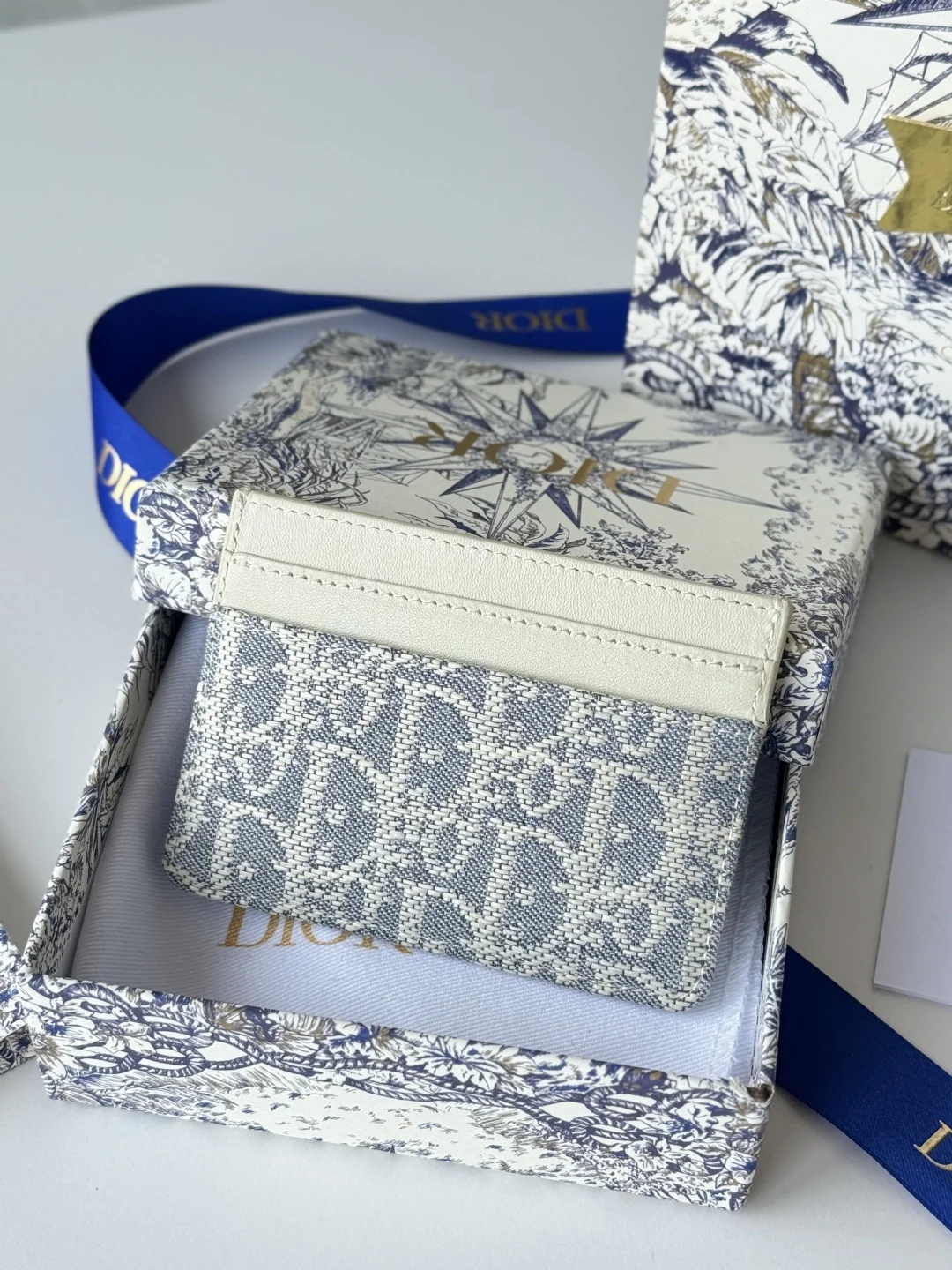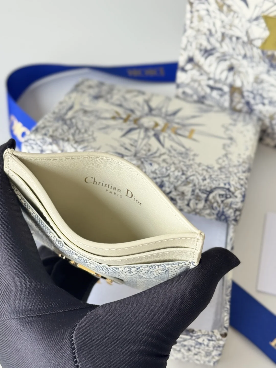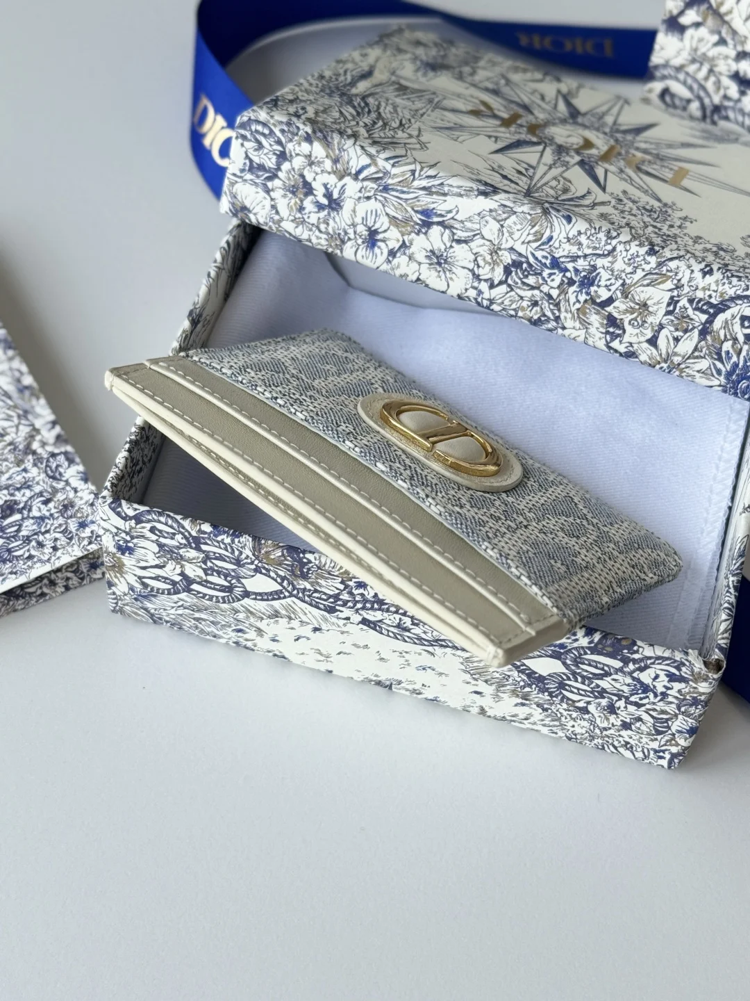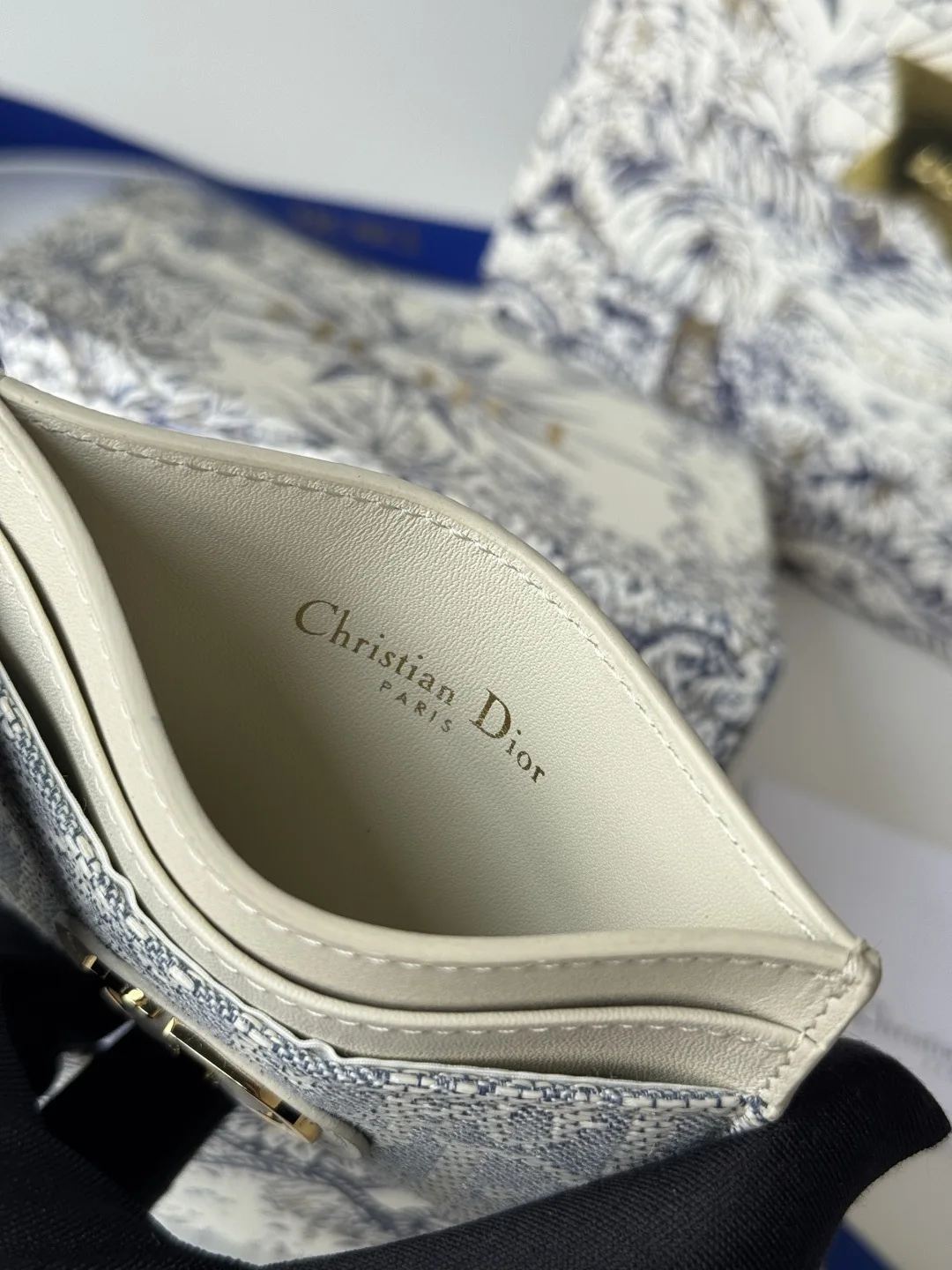 The 30 Montaigne card holder is a refined and elegant piece. Crafted in blue jacquard, it is adorned with the Oblique print and embellished with the CD signature on the front. Practical and compact, it can accommodate small daily essentials and easily slip into any bag.* CD signature on the front* 2 card slots* 1 patch pocket* Dimensions: 10 x 7.5 x 0.5 cm