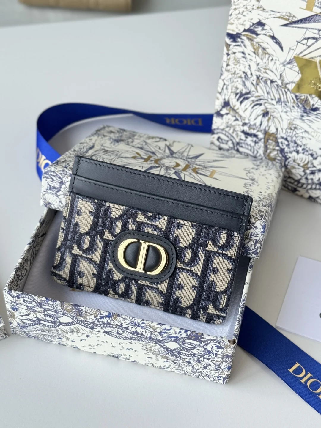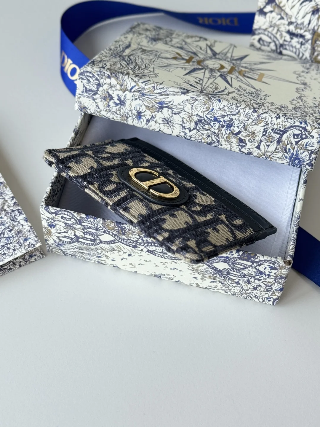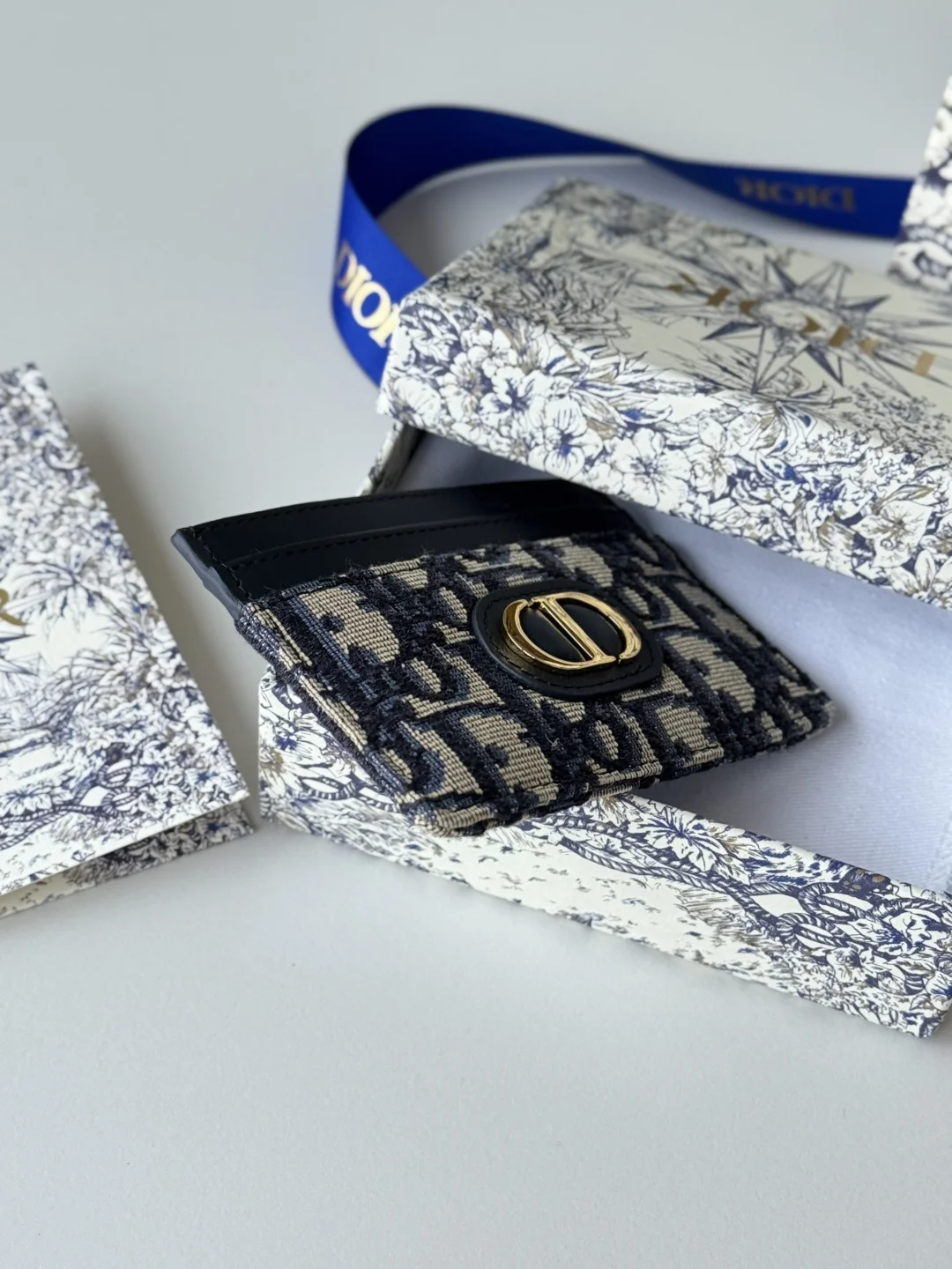 The 30 Montaigne card holder is a refined and elegant piece. Crafted in blue jacquard, it is adorned with the Oblique print and embellished with the CD signature on the front. Practical and compact, it can accommodate daily essentials and slips easily into any bag.* CD signature on the front* 2 card slots* 1 patch pocket* Dimensions: 10 x 7.5 x 0.5 cm