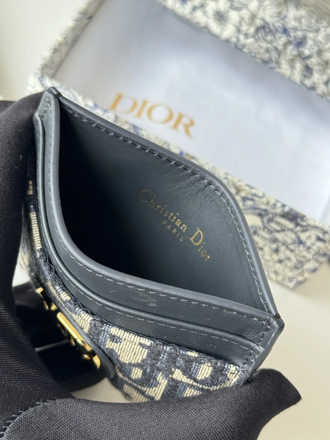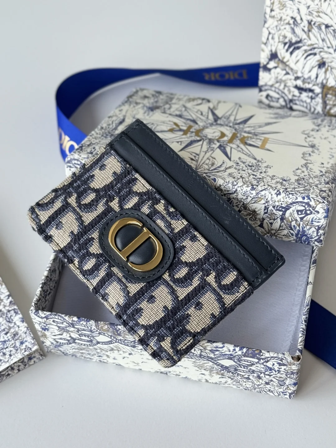 The 30 Montaigne card holder is a refined and elegant piece. Crafted in blue jacquard, it is adorned with the Oblique print and embellished with the CD signature on the front. Prac..