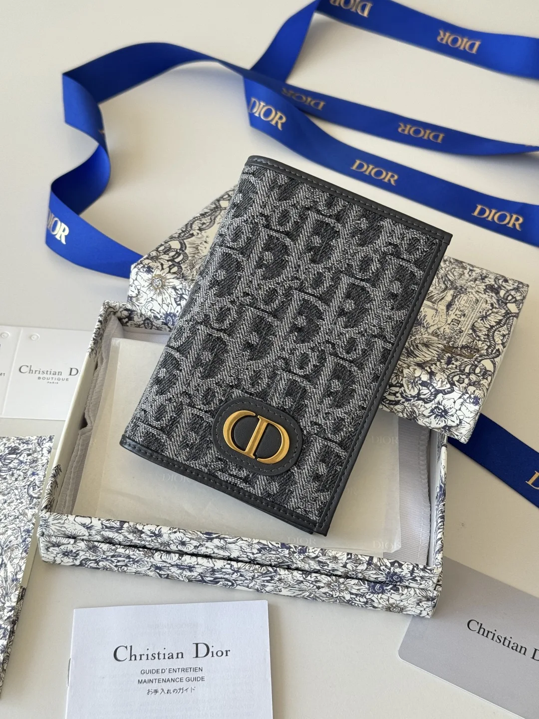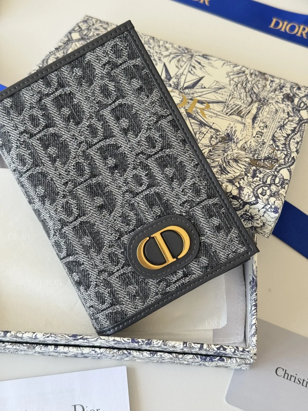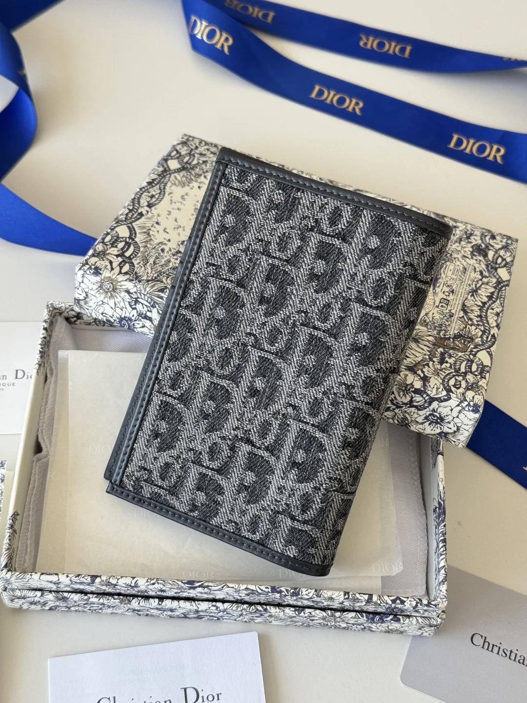 Dior S2353 Oblique Print Embossed Logo Bifold Passport Holder