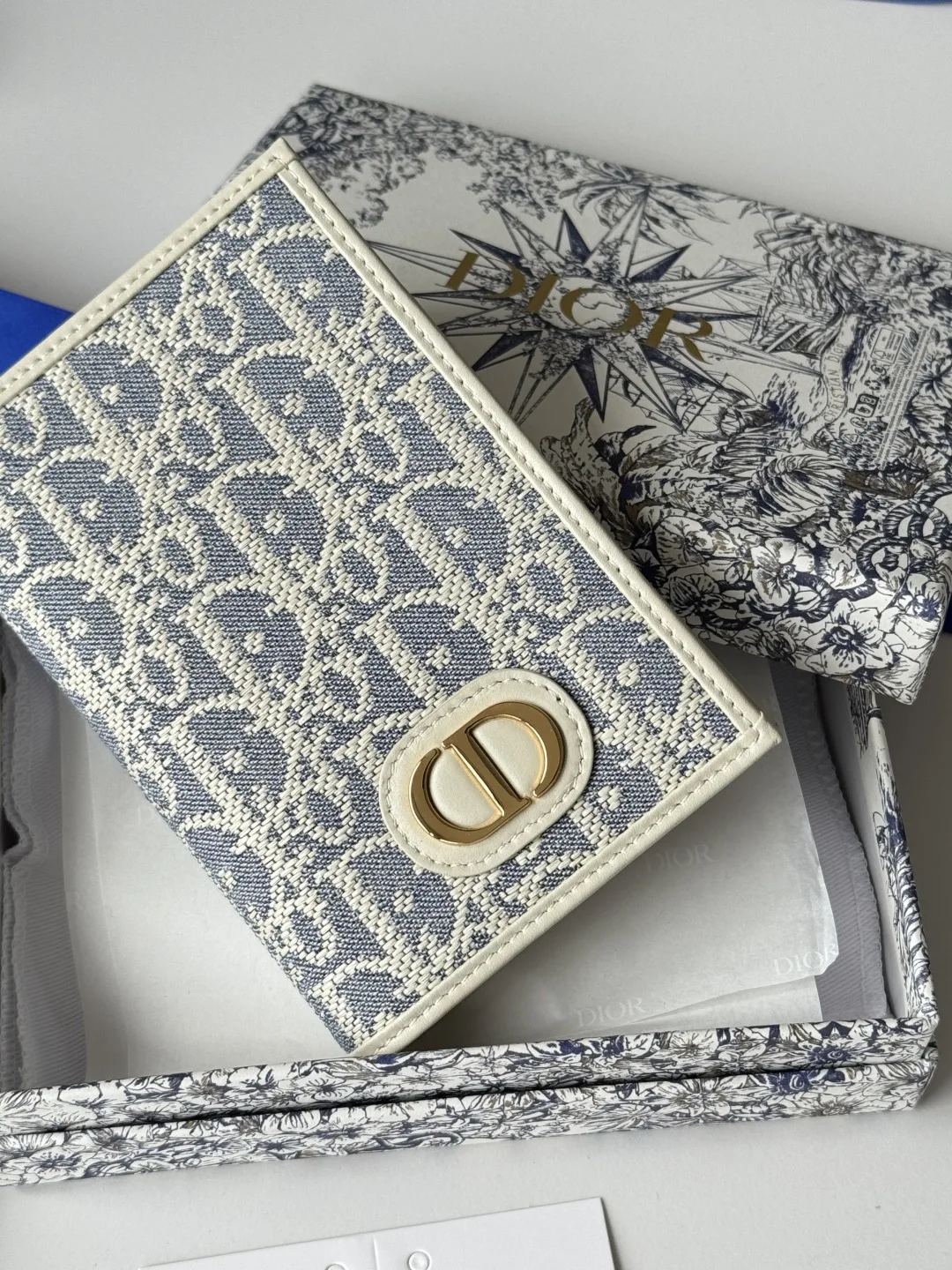Dior S2353 Oblique Print Embossed Logo Bifold Passport Holder