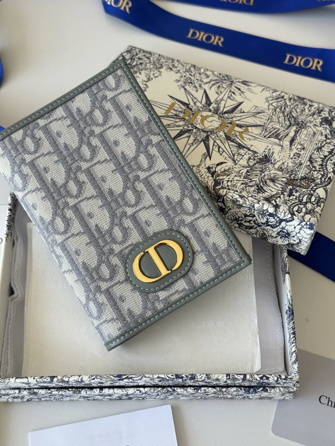 Dior S2353 Oblique Printed Embossed Logo Double Fold Passport Holder