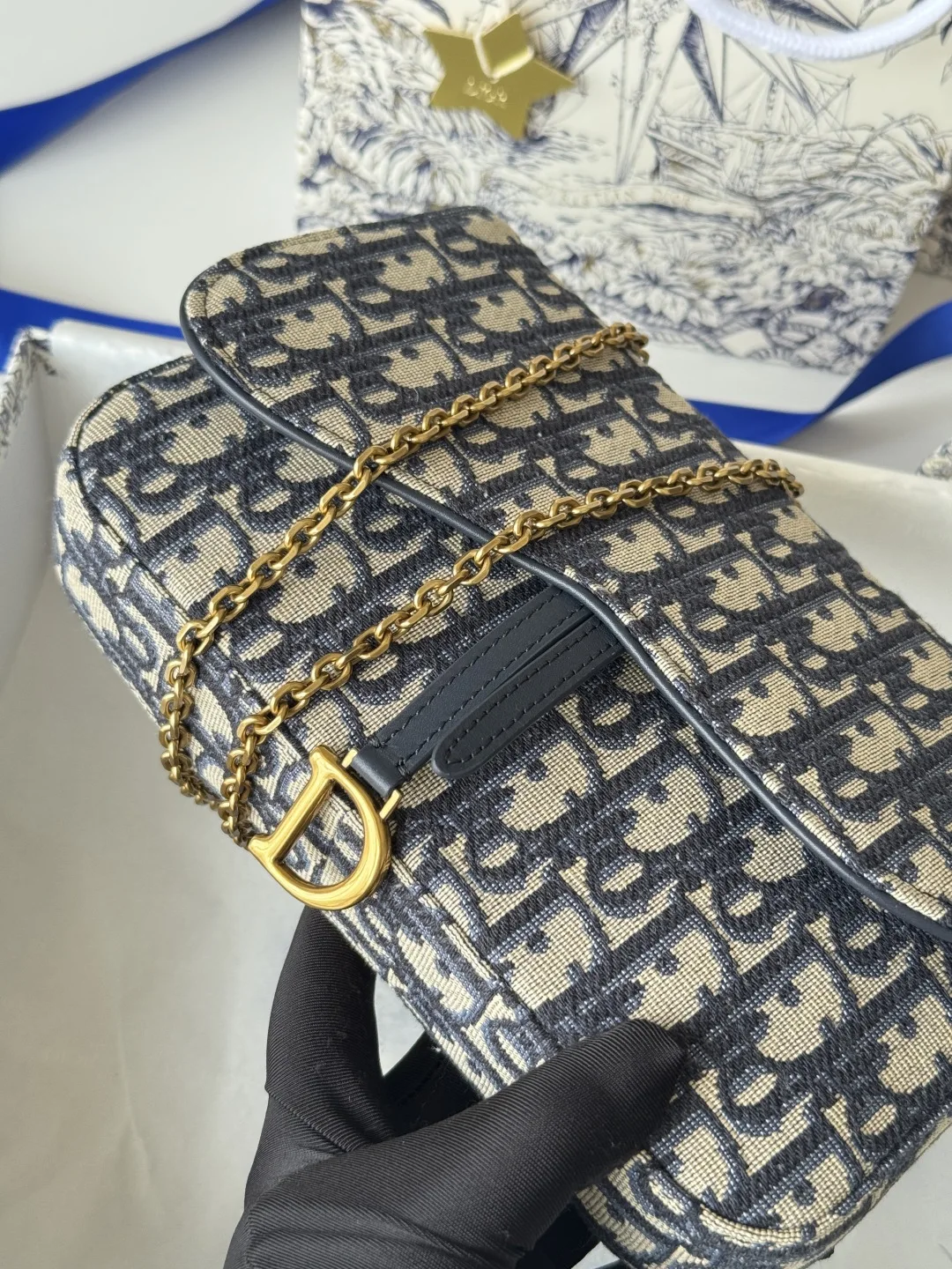 Dior S5907CTZQ_M928 Denim Dior Oblique Jacquard Saddle Chain Bag