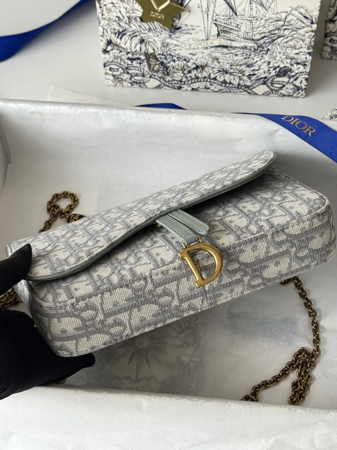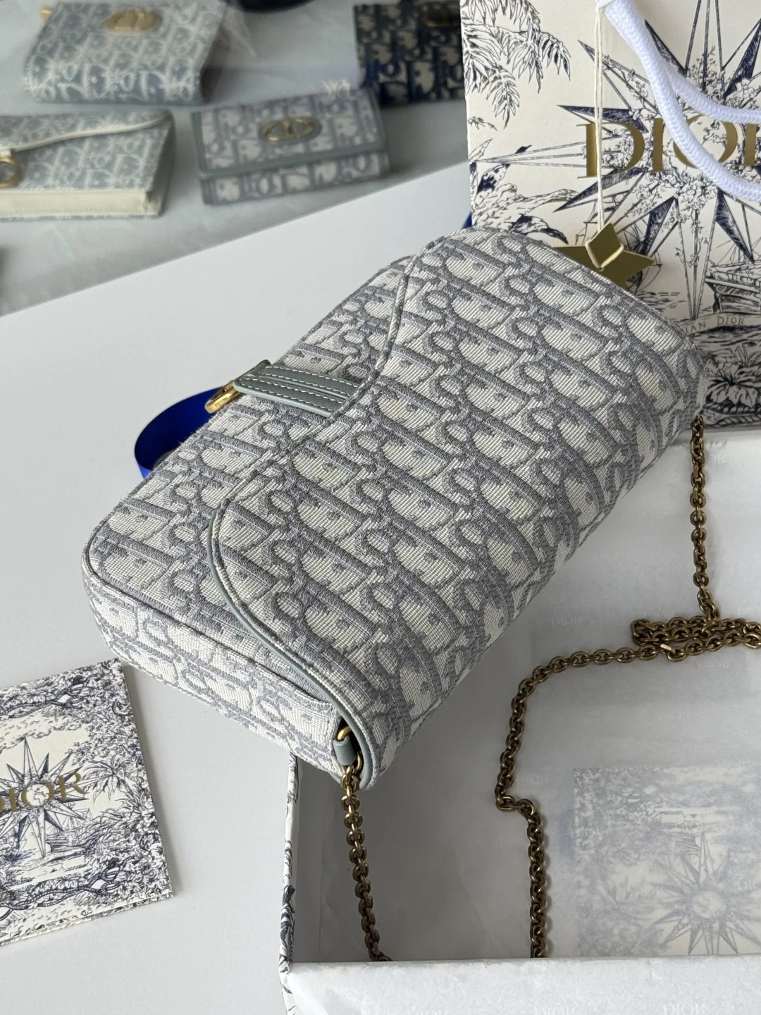 Dior S5907CTZQ_M928 Denim Dior Oblique Jacquard Saddle Chain Bag