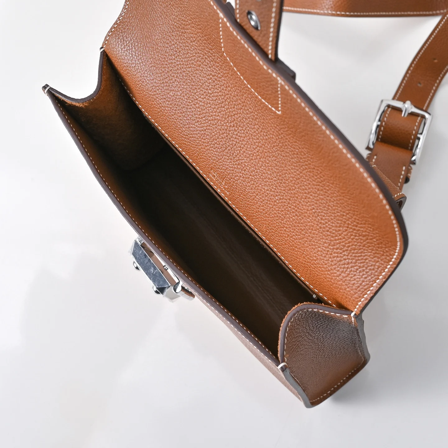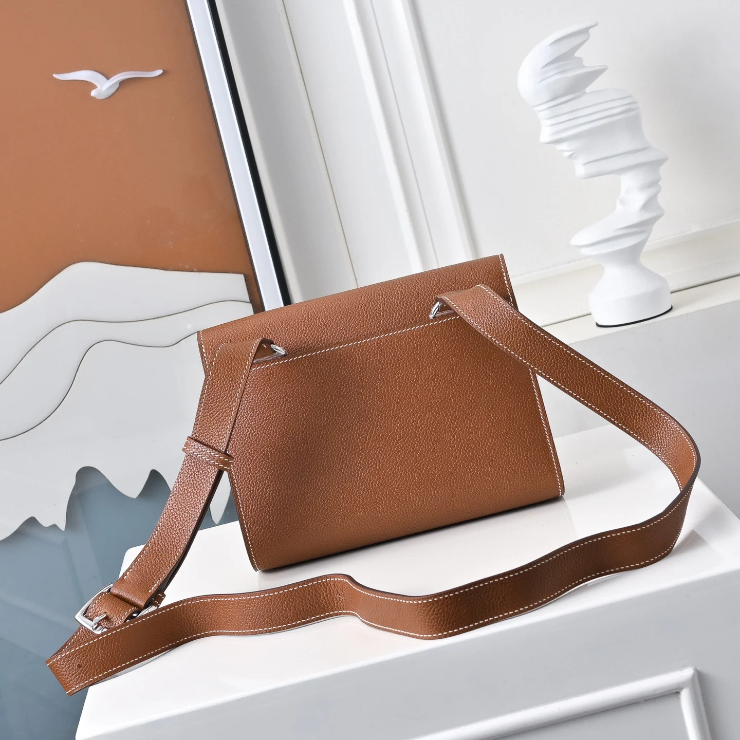 Semi-handmade (Togo) Leather Size 21*17*4 Sac a depeches 21 Colorblock Handbag Unisex , Highest Cost Performance Online, Neutral Style, Practicality-Oriented, Exterior Back Pocket, Can be Worn Crossbody or on the Shoulder, Adjustable Shoulder Strap, Equipped with Etriviere Buckle, Authentic Mold Opening
