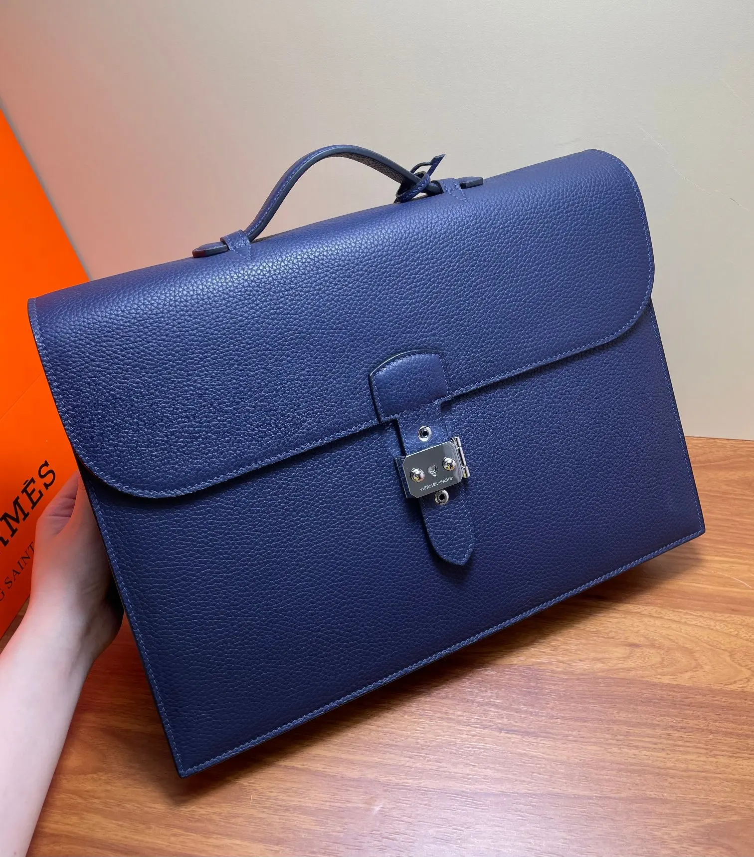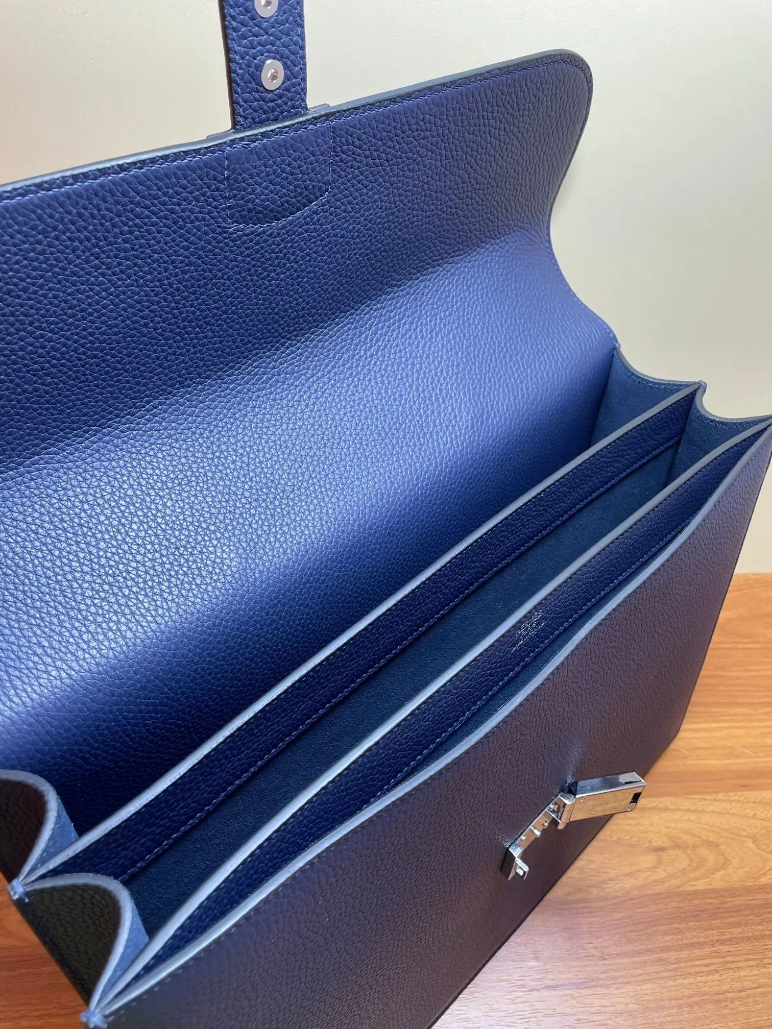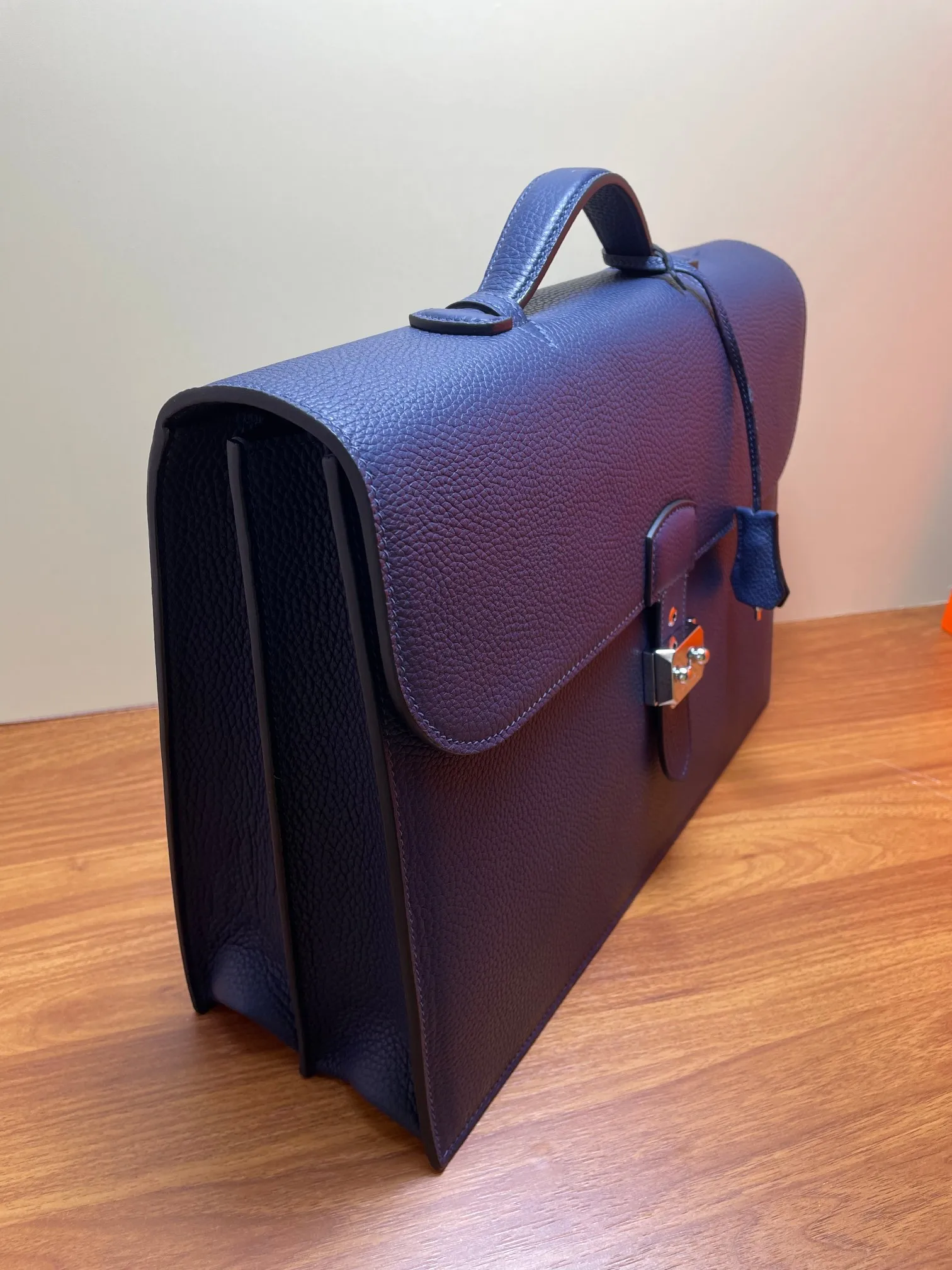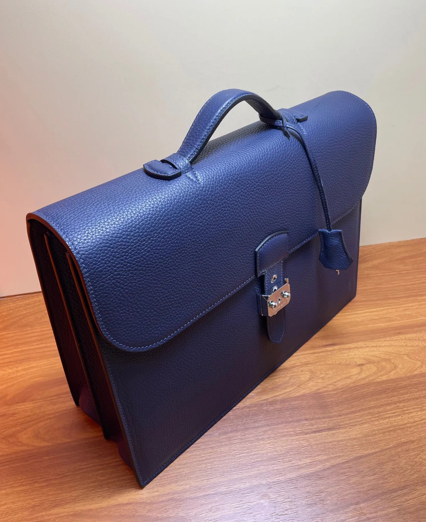 Semi-handmade Sac a Depeches Combination Lock Men s Briefcase Laptop Bag 39cm Grade A Togo Leather [Royal Blue] Silver Hardware Boutique Synchronization Hand-stitched Wax Thread Pure Steel Hardware
