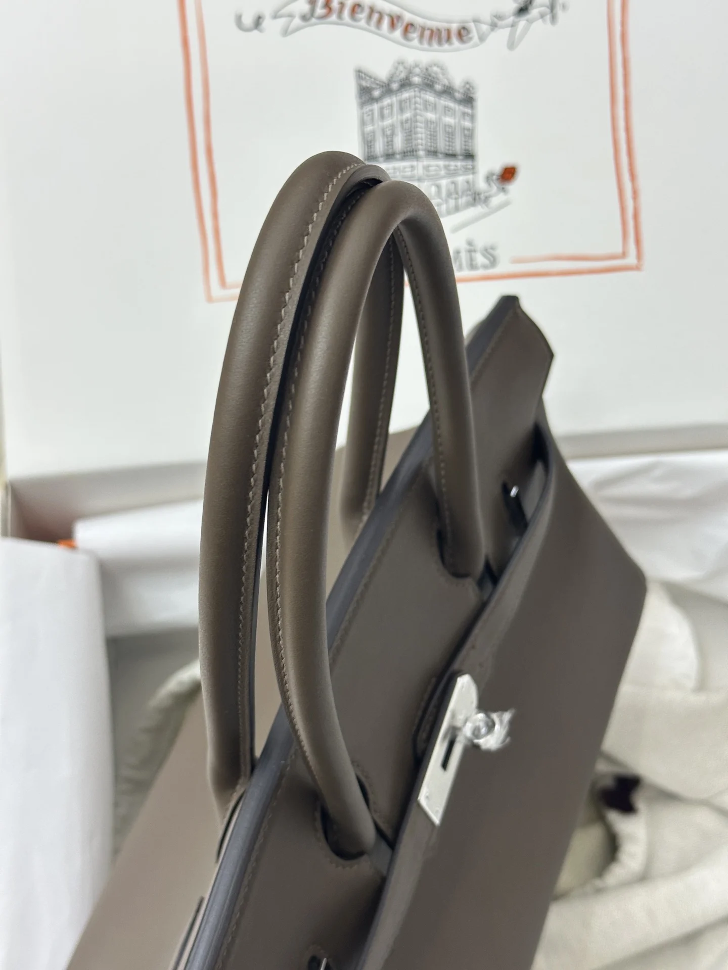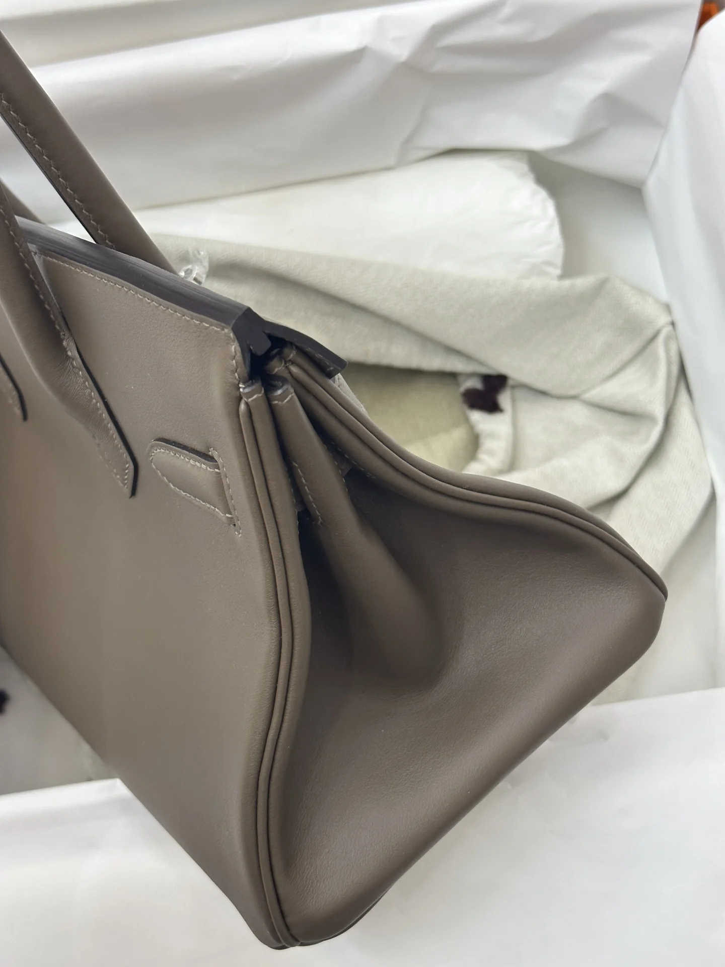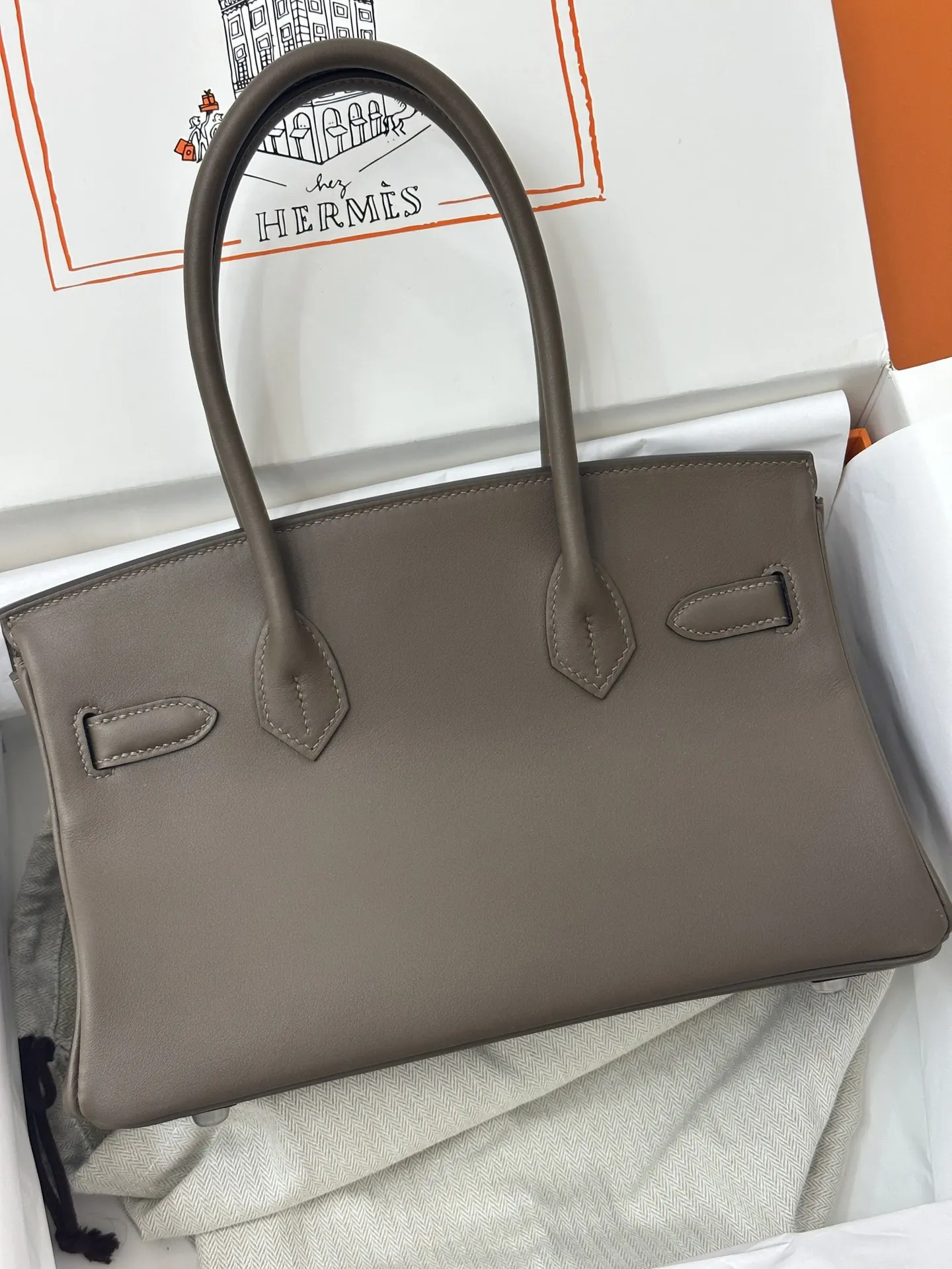 Platinum 29cm Semi-Handmade 2024 New Shoulder Birkin 29cm Swift Troupe Grey, the elephant grey hue perfectly complements the style of modern urban women, exuding a luxurious feel.