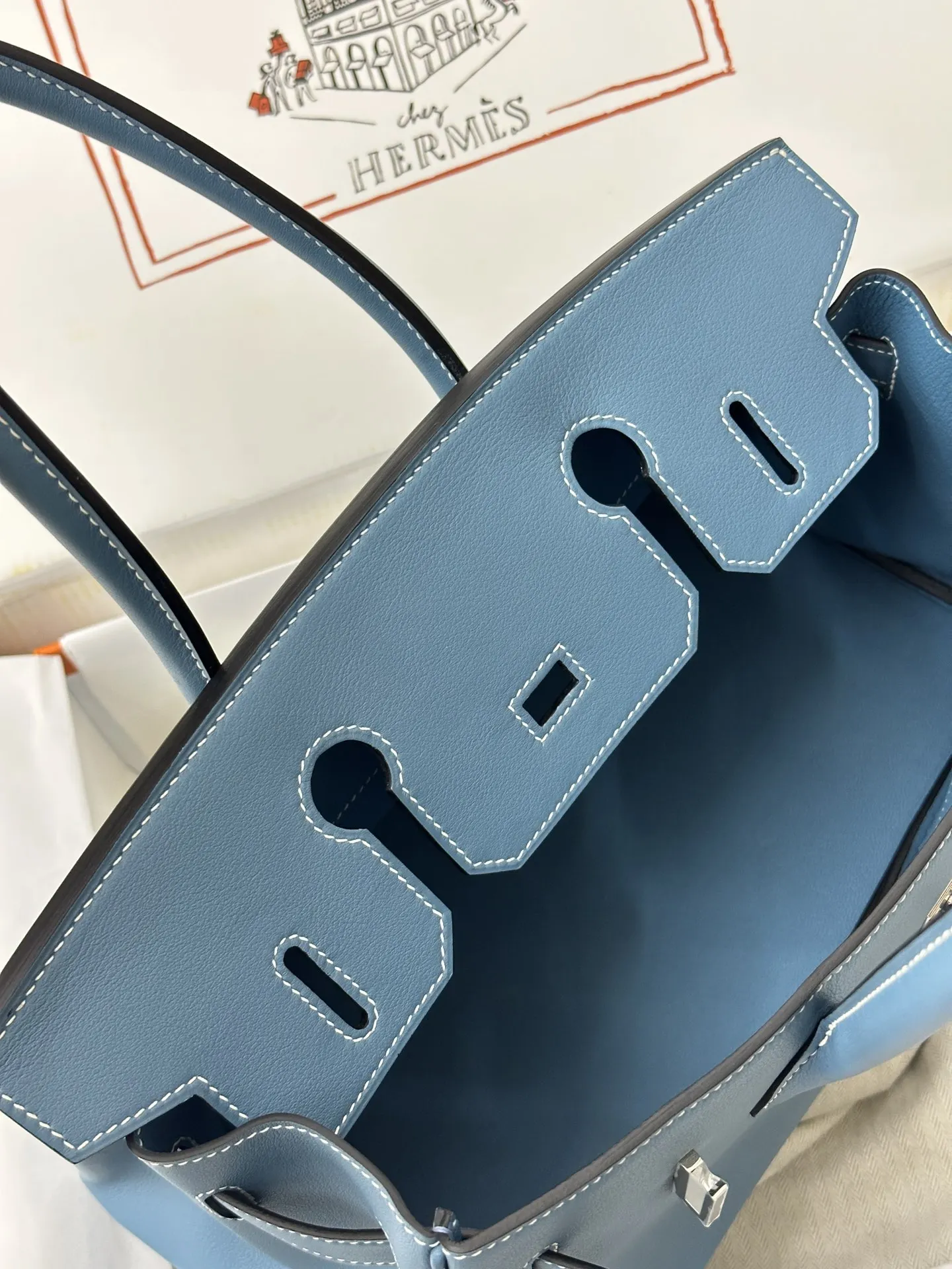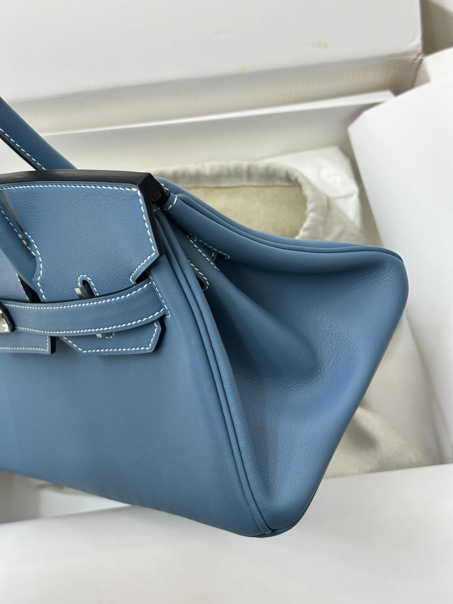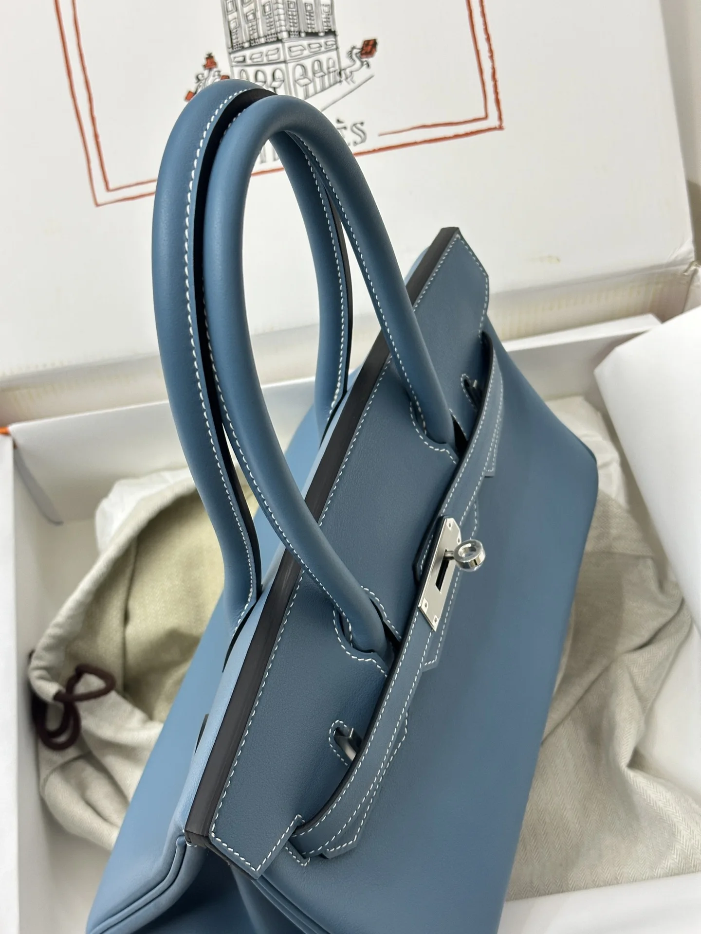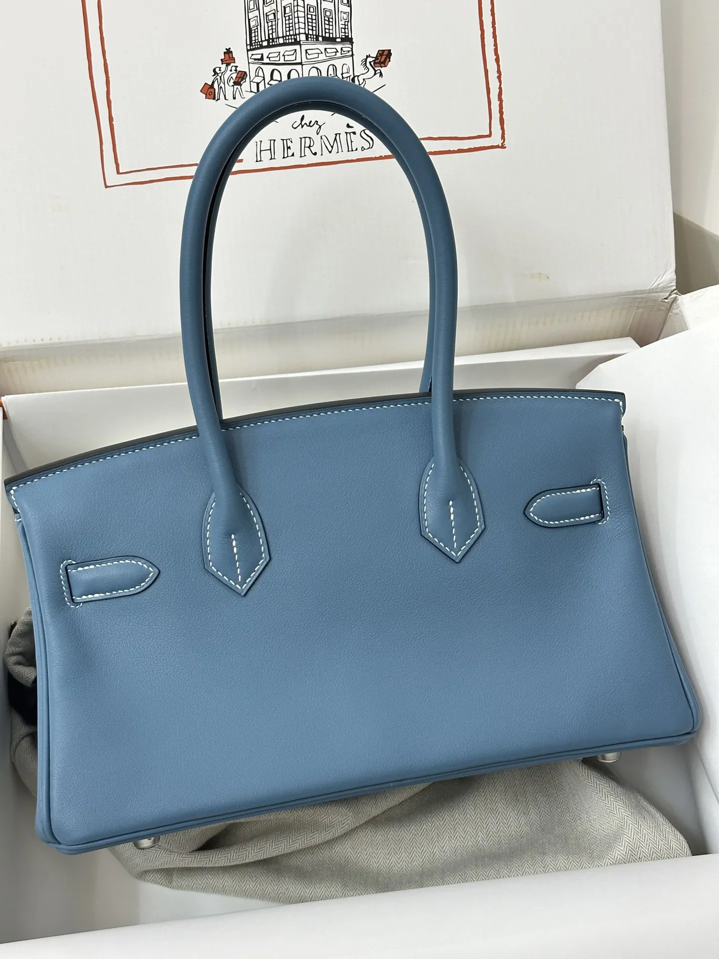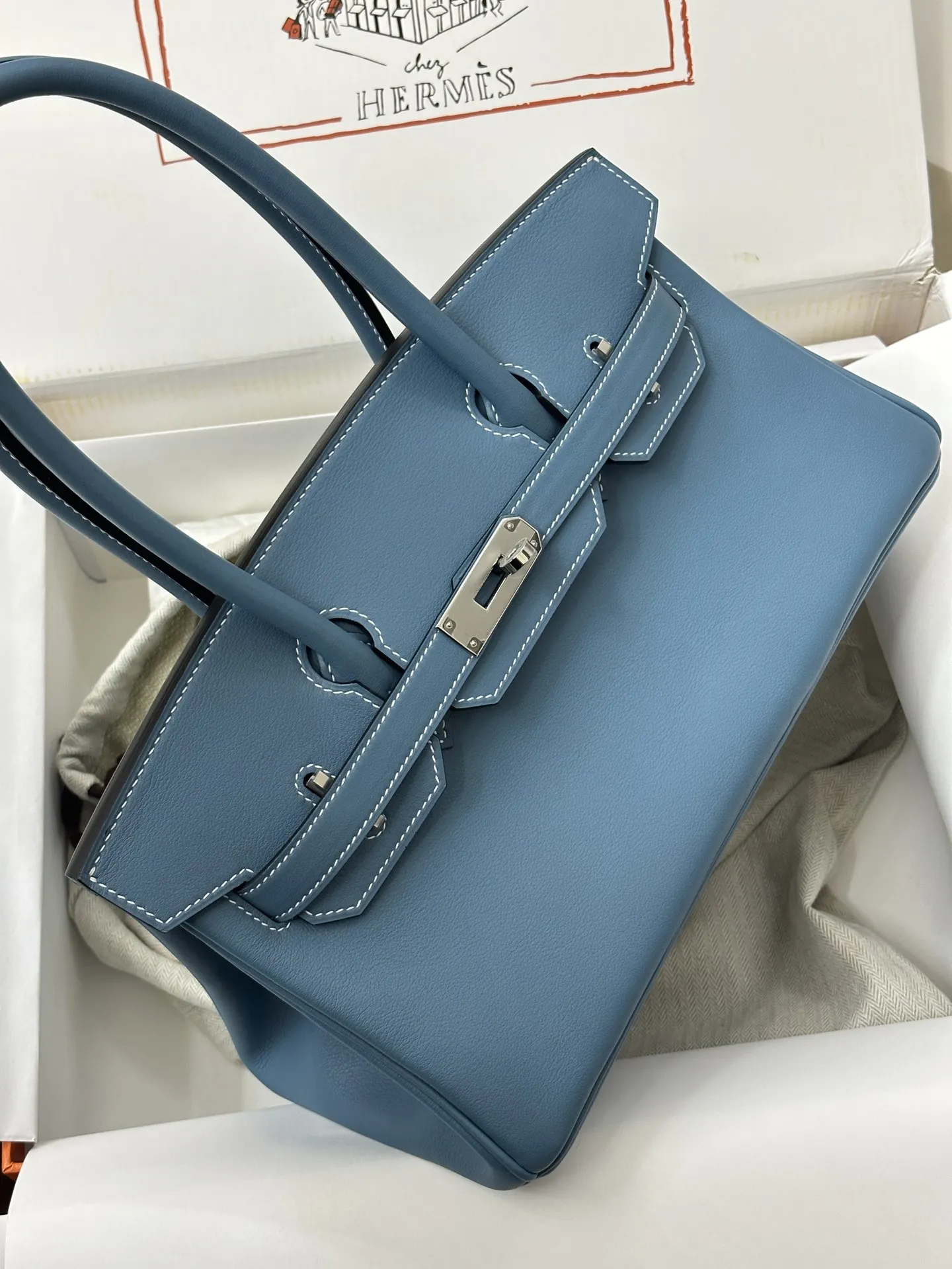 Platinum 29cm Semi-Handmade 2024 New Shoulder Birkin Swift Blue Jean 75 Denim Blue, a sophisticated and modern style perfect for the contemporary urban woman.
