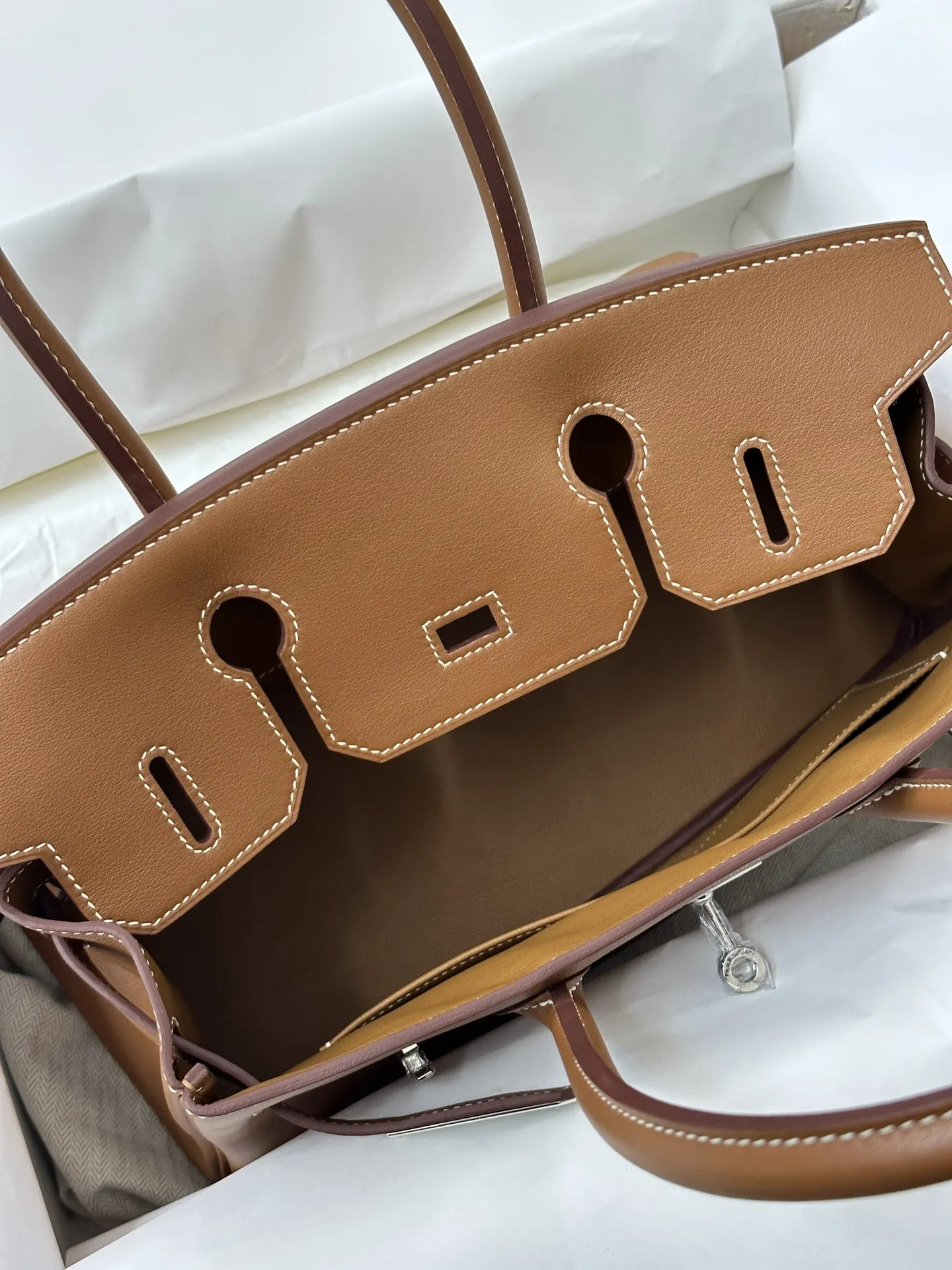Platinum 29cm Semi-Handmade 2024 New Shoulder Birkin 29cm Swift Gold Brown is a perfect match for the modern urban woman s style, exuding a luxurious feel.
