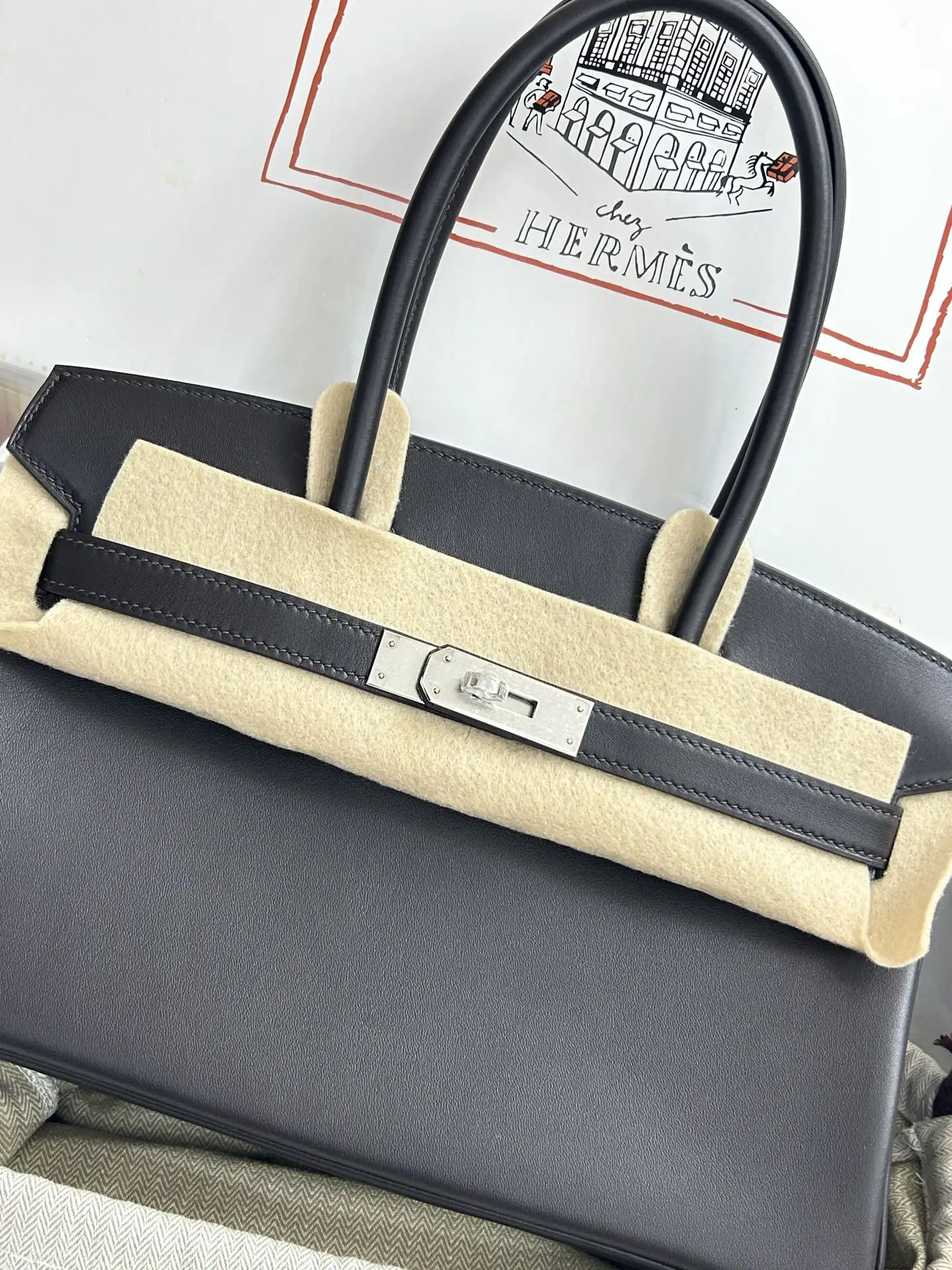 Platinum 29cm Semi-handmade Shoulder Birkin Swift Black 89 in black is a perfect match for the modern urban woman s style, full of luxury.
