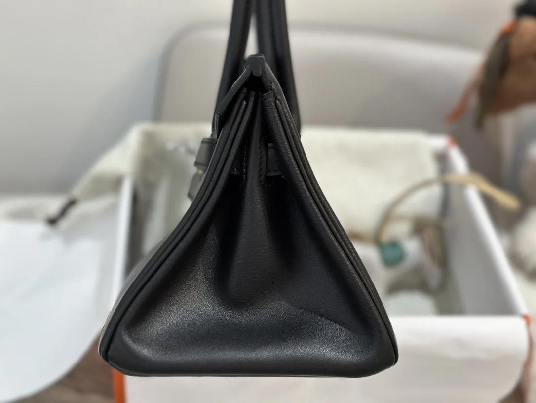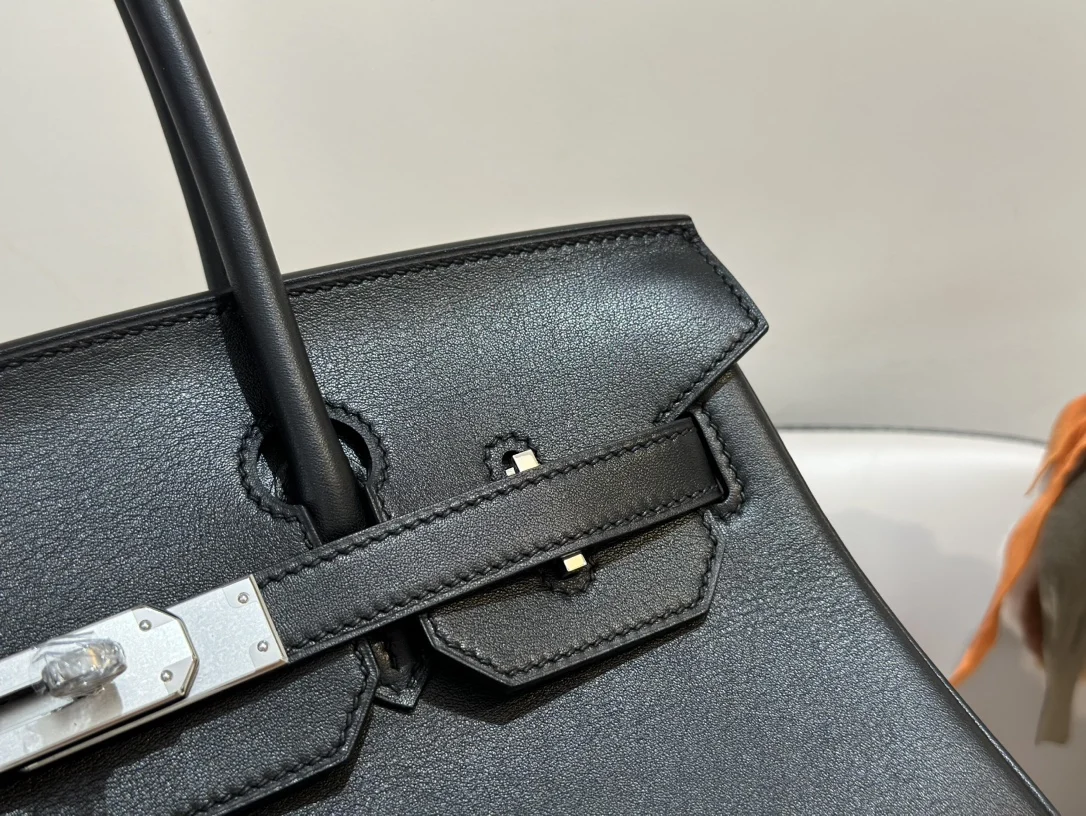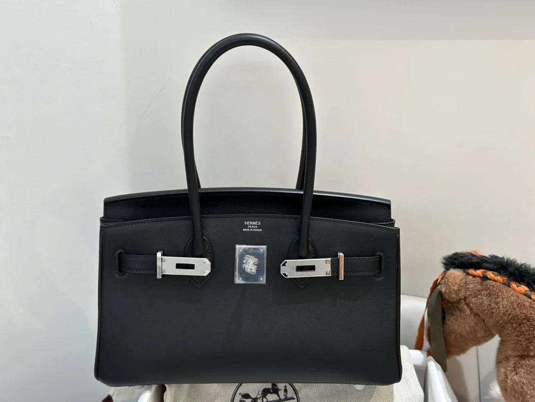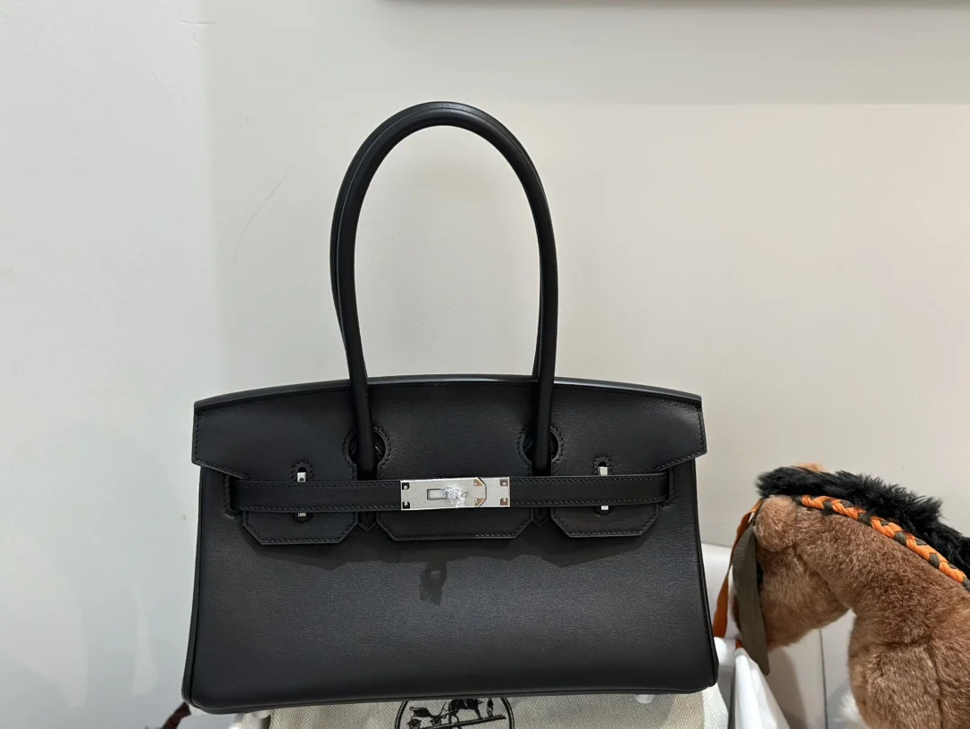 Platinum 29cm Semi-Handmade 2024 Newest Model Shoulder Birkin Mini Version, Size 29cm, Swift Leather, Black with Silver Hardware. Can be worn on the shoulder or carried by hand. A cool bag that can also be worn by men. Very cool and fashionable.