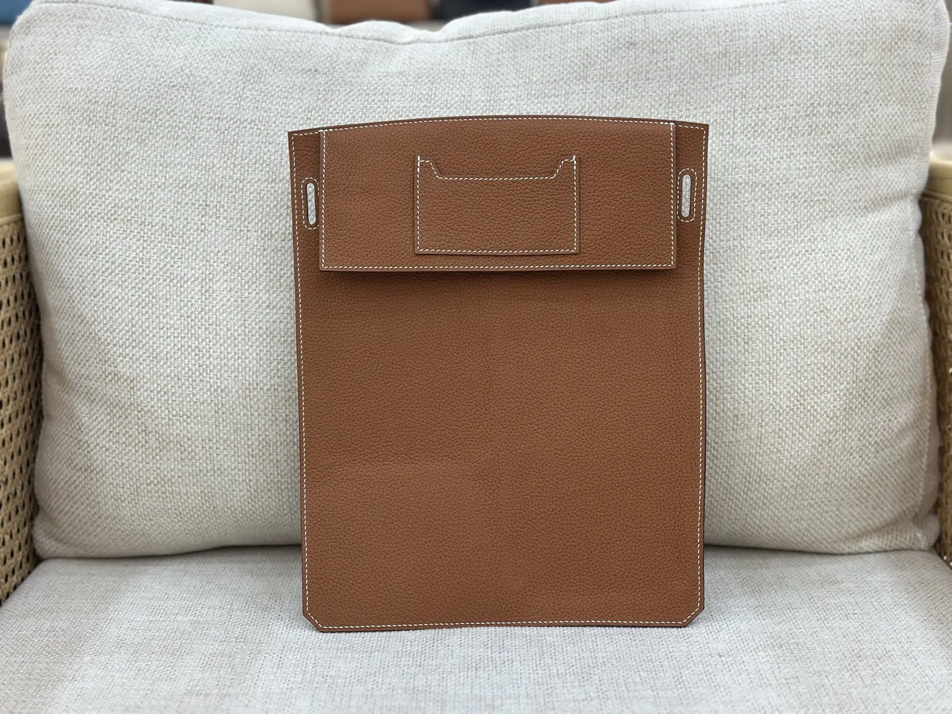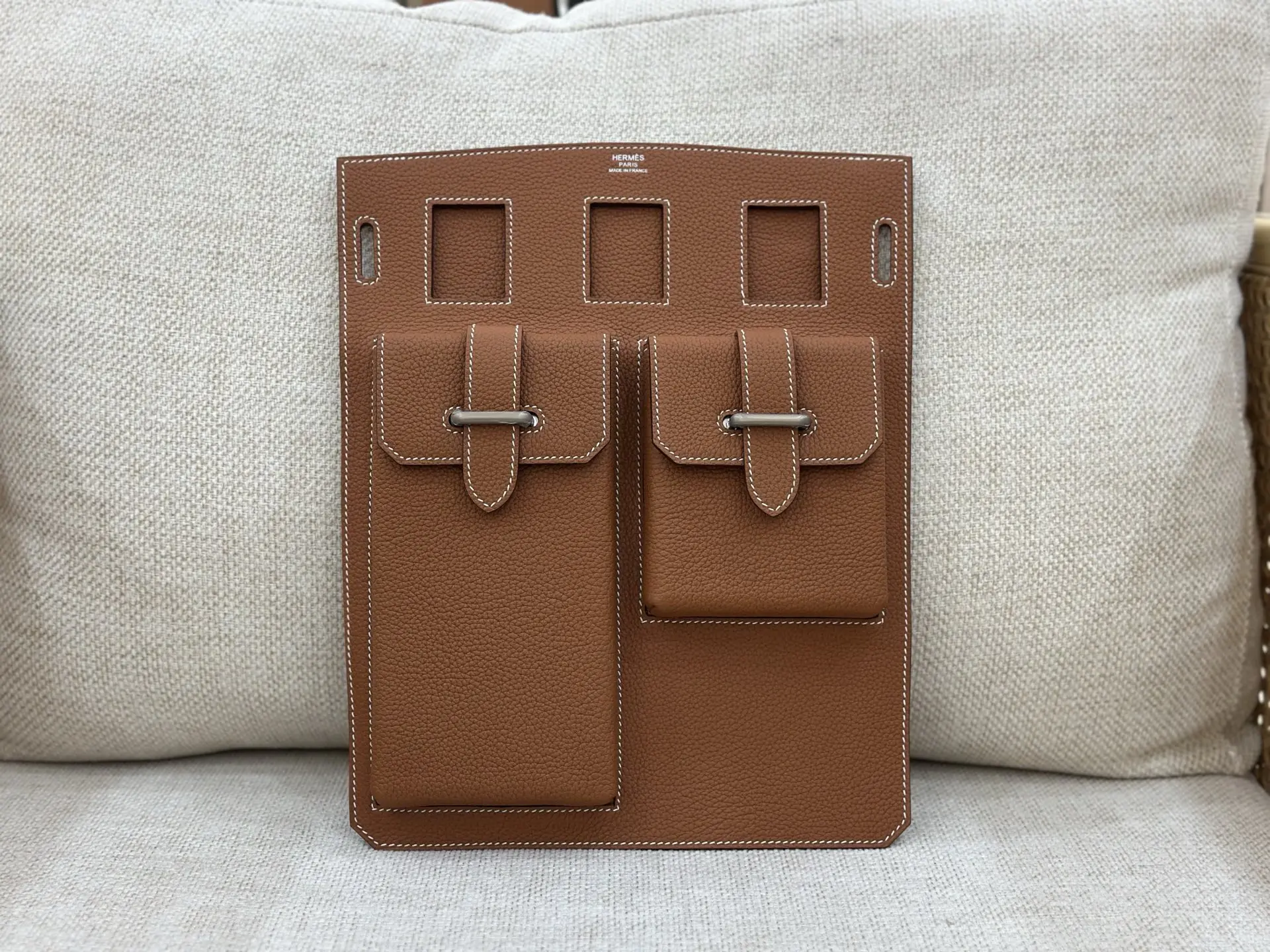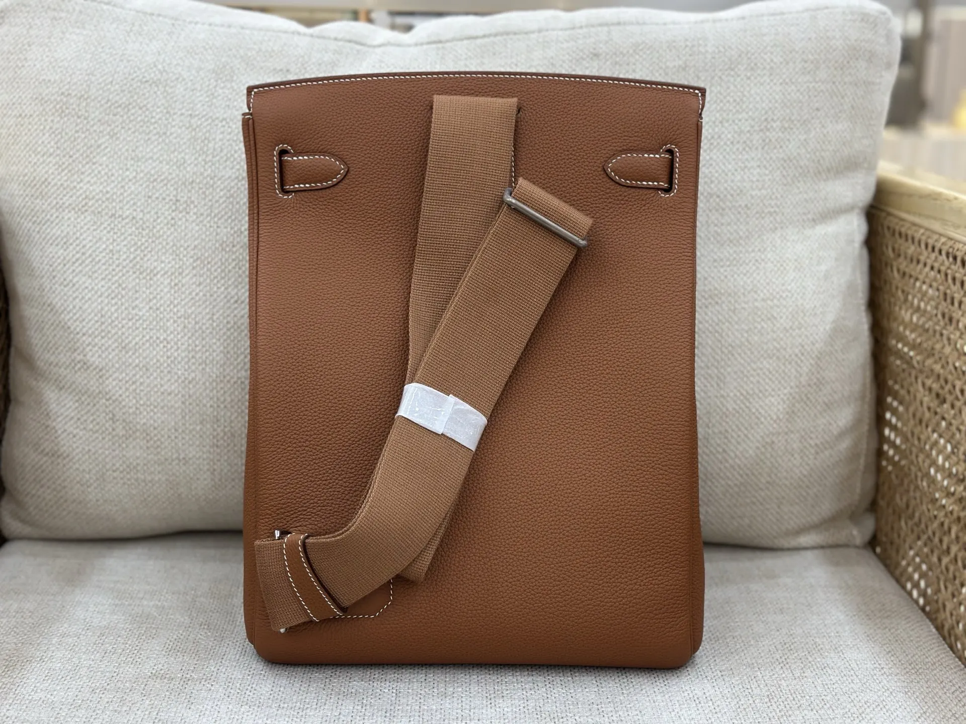 Semi-handmade latest chest bag with detachable front pocket, large size 26cm (26x36x11cm), shoulder strap length 62-115cm, Togo top-grain cowhide with silver hardware, gold-brown c..