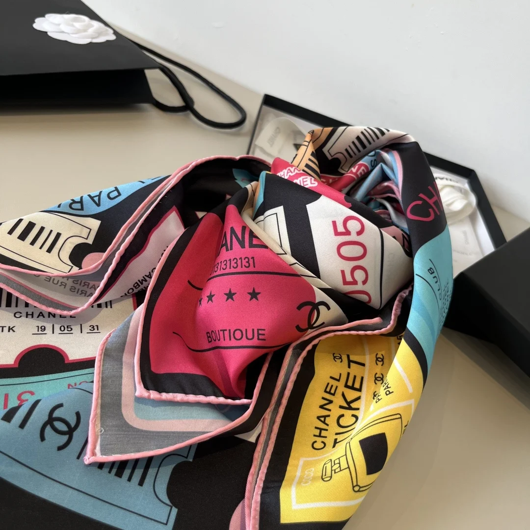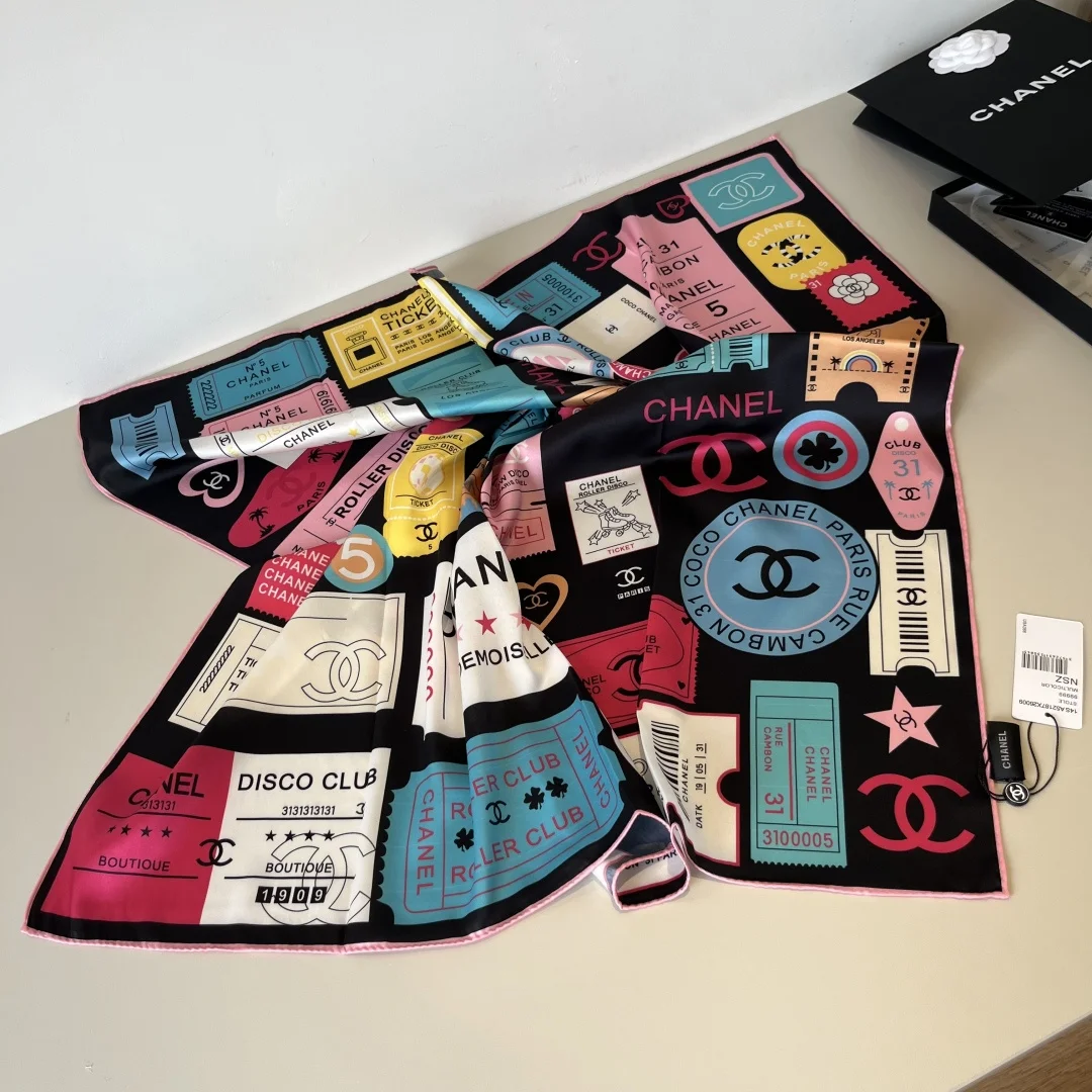 New Chanel square scarf Classic Elements Combination Absolutely stunning, a top-tier masterpiece The classic elements pattern design style is extremely beautiful, truly flattering on the skin tone, versatile. Whether it looks good or not, you can judge for yourself