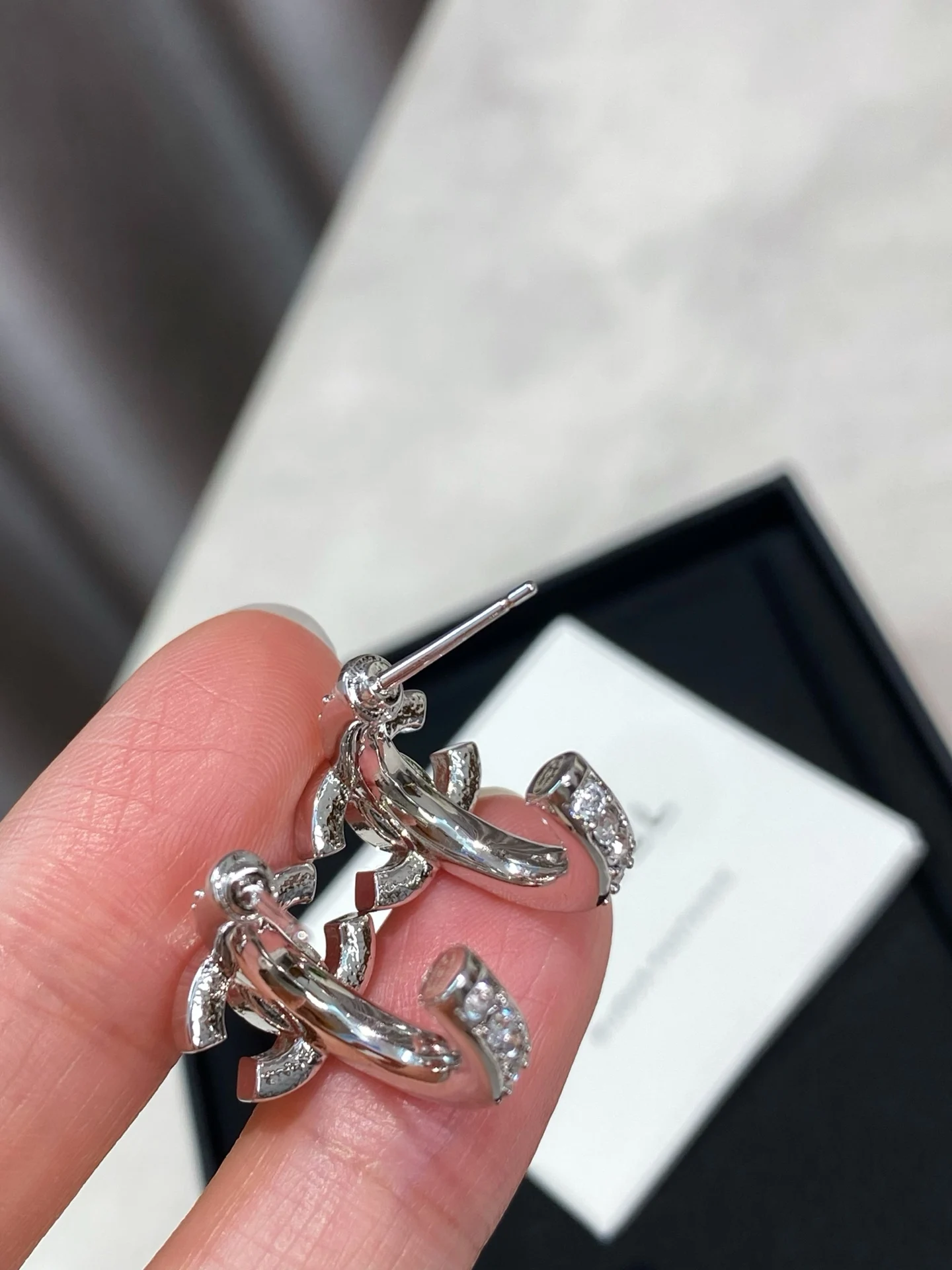 179419 [Fragrant Silver Full Diamond Small Hoop Earrings] Sweet and salty small hoop earrings