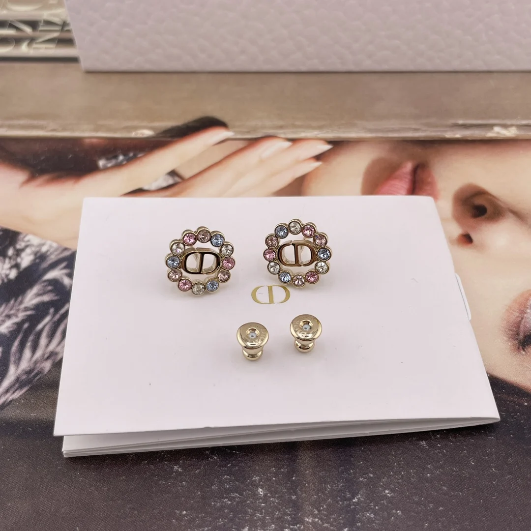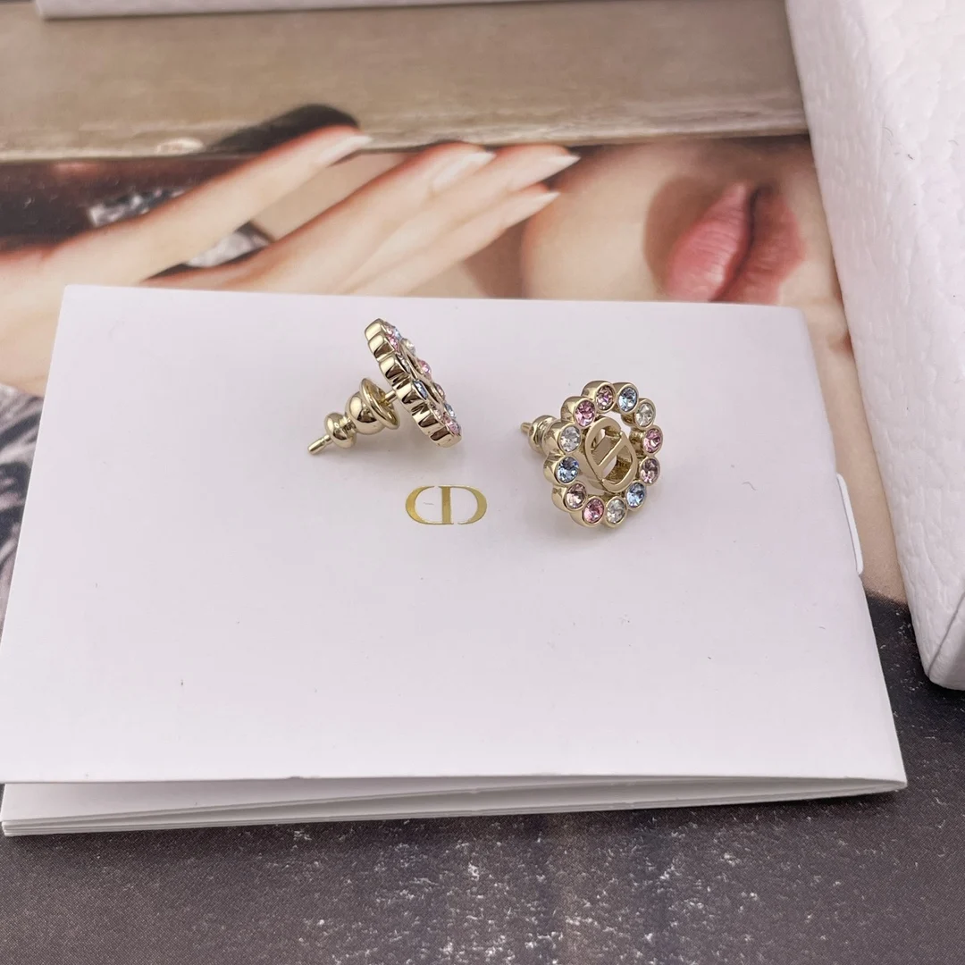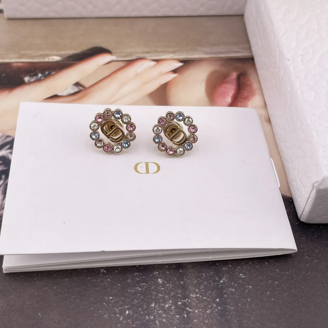 216740 [D Small Circle Colored Diamond Stud Earrings] 2026 Early Spring New Exquisite Collection, a very classic CD design with sweet colored diamonds! Consistent with authentic product s brass material, each set with Swarovski colored diamonds.