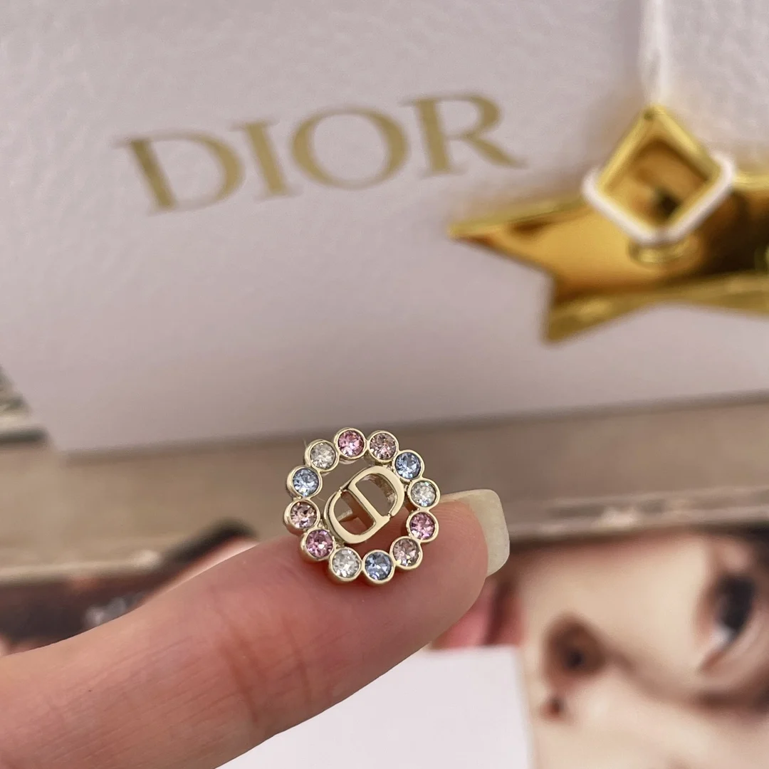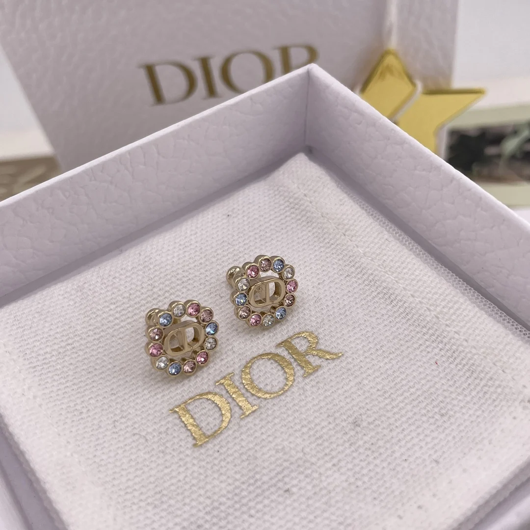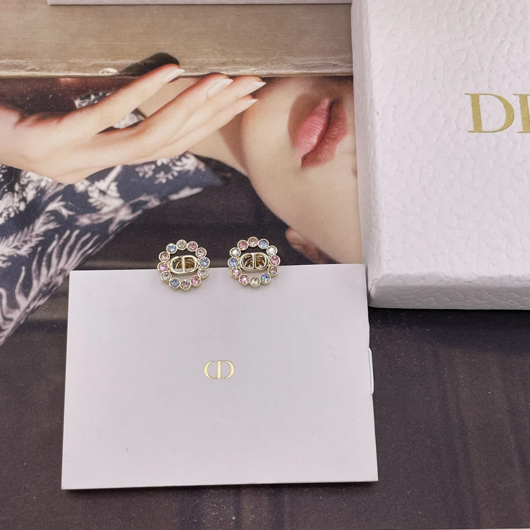216740 [D Small Circle Colored Diamond Stud Earrings] 2026 Early Spring New Exquisite Collection, a very classic CD design with sweet colored diamonds! Consistent with authentic product s brass material, each set with Swarovski colored diamonds.