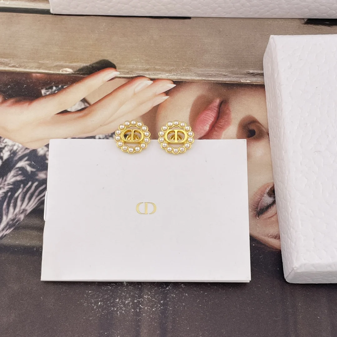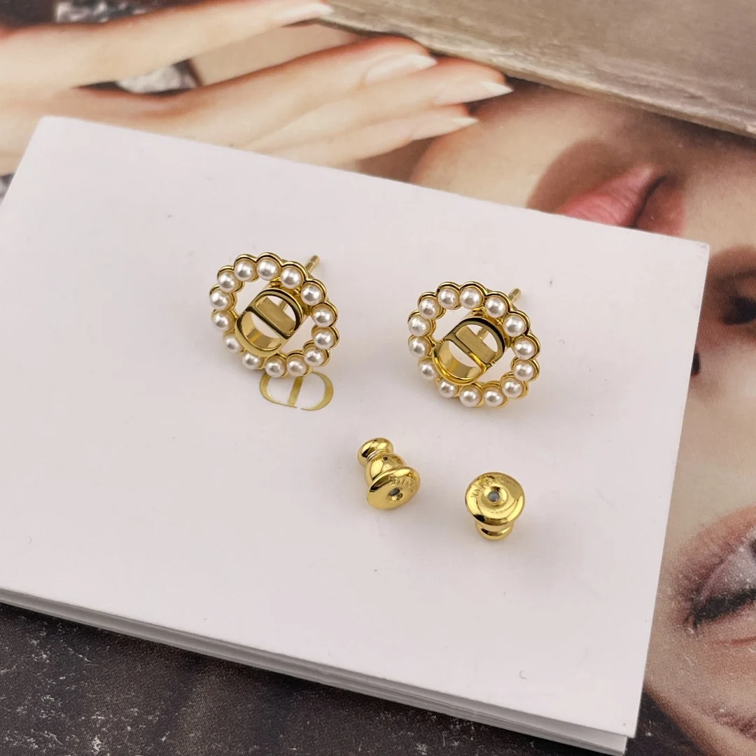 216756 [D Small Hoop Pearl Earrings] 2026 Early Spring Newest Collection In Stock! Very classic CD design, super versatile! Consistent ZP brass material, each with Swarovski seed b..