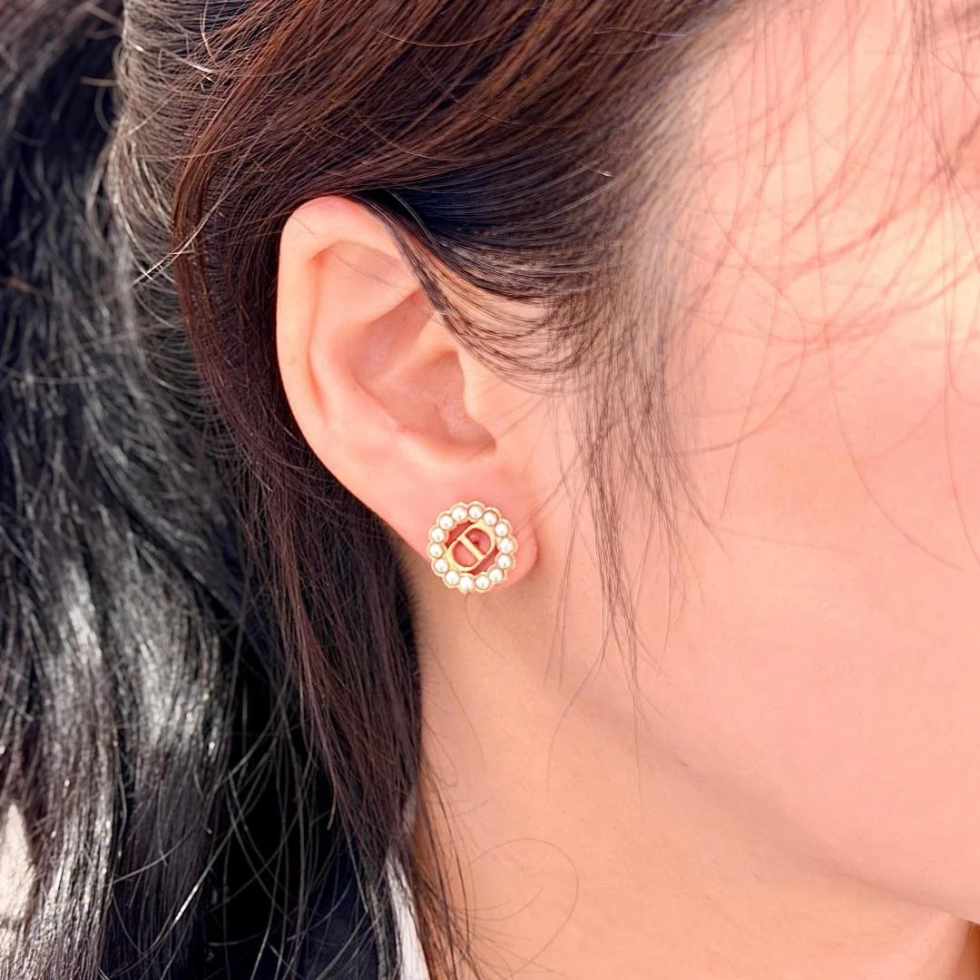 216756 [D Small Hoop Pearl Earrings] 2026 Early Spring Newest Collection In Stock! Very classic CD design, super versatile! Consistent ZP brass material, each with Swarovski seed beads.