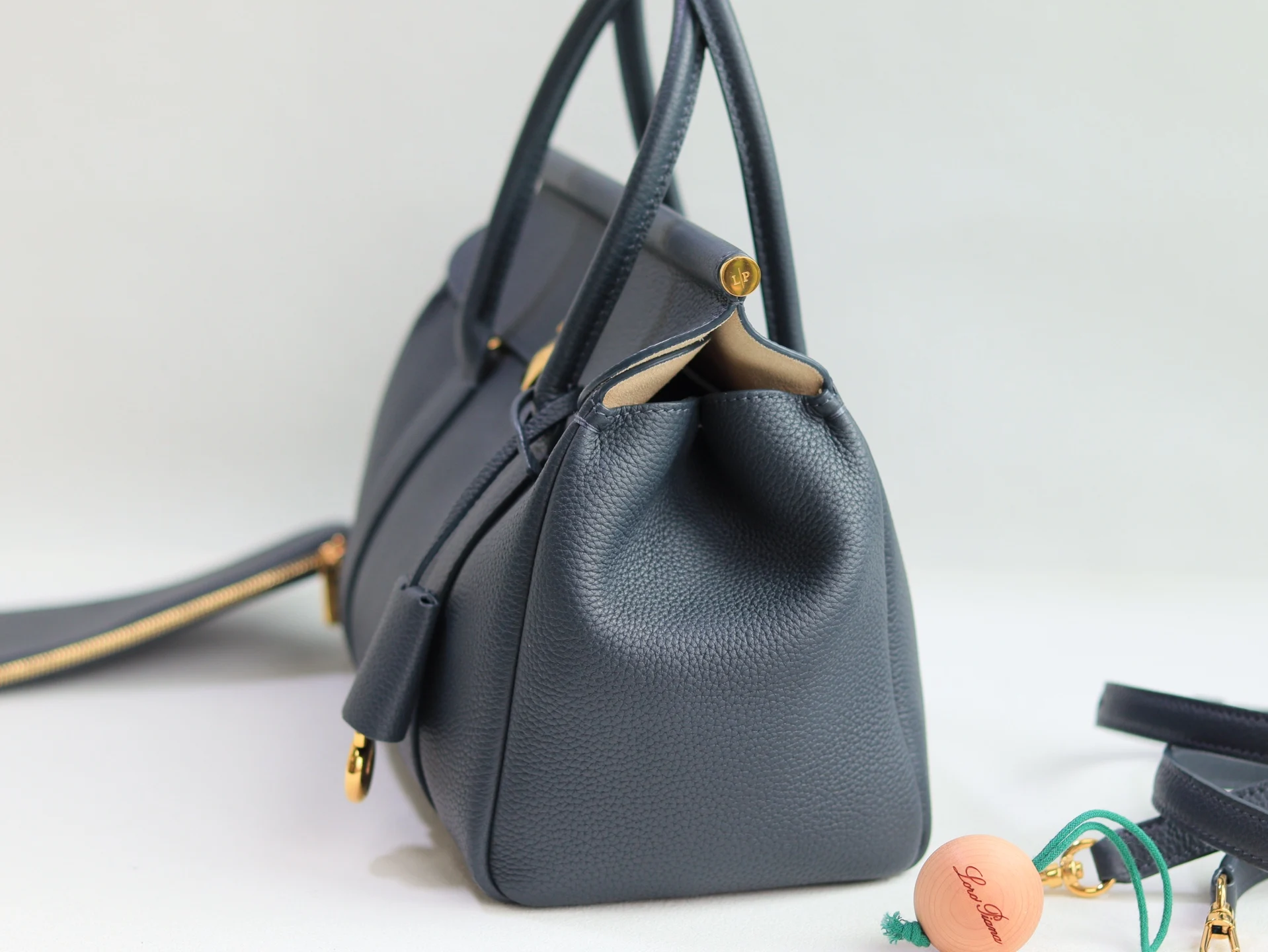 The Loom handbag pays tribute to Loro Piana s long-standing textile tradition, with a metal strip beneath the flap that evokes the image of fabric gently cascading from the artisan s loom, elegantly honoring the brand s renowned textile craftsmanship. The handbag is made from lightweight, distinctive textured calf leather, featuring a delicate lock at the opening that adds a casual flair.