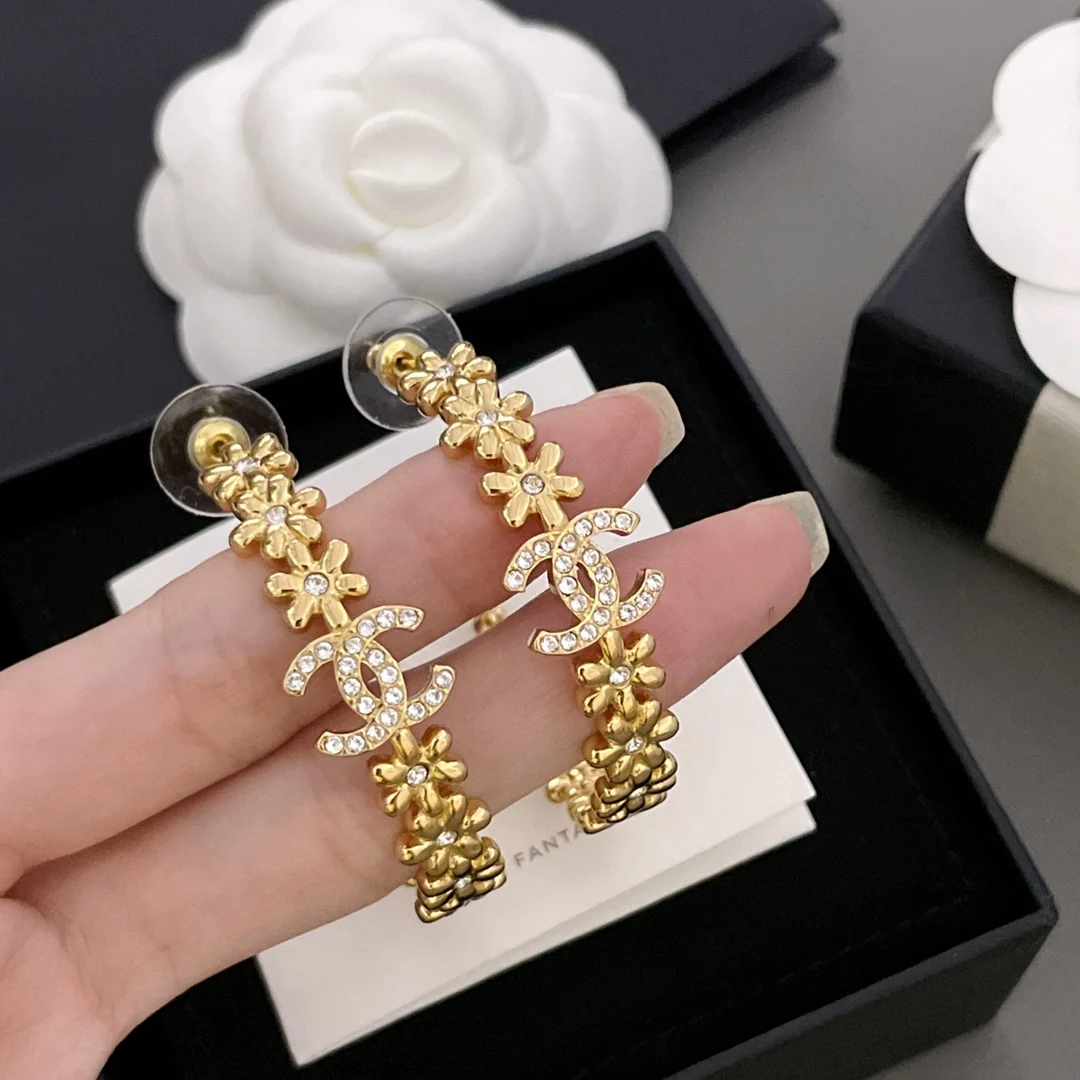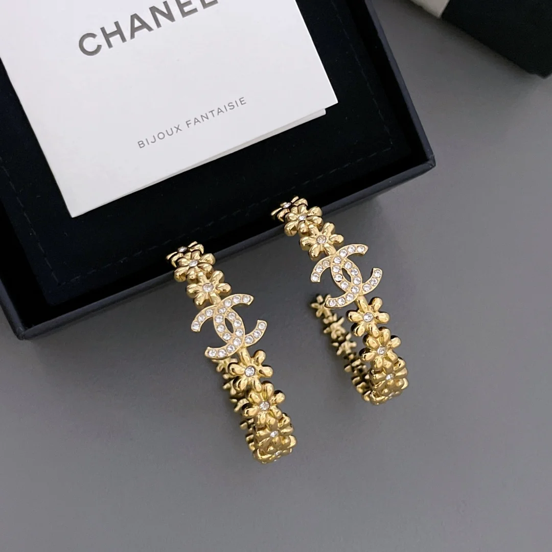 Chanel Small gold flower ear hoops