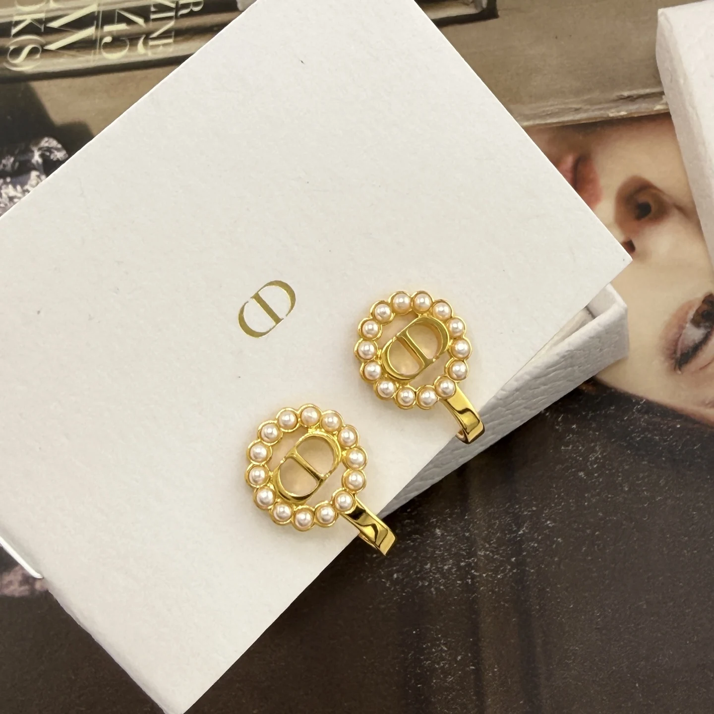 216765 [D Small Hoop Beaded Clip-on Earrings] 2026 Early Spring Newest Collection In Stock! Very classic CD design, super versatile! Consistent ZP brass material, each with Swarovs..