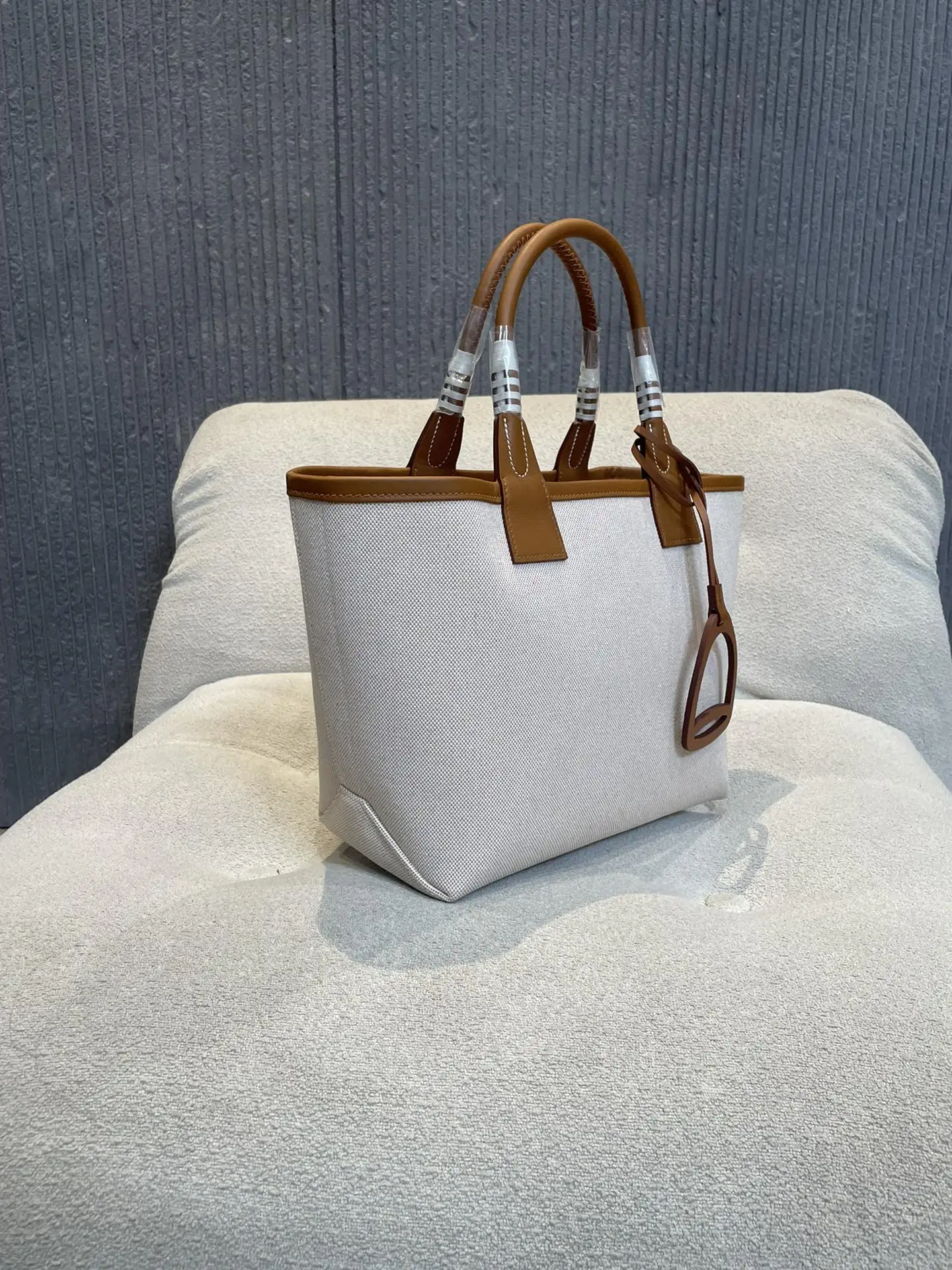 Semi-handmade Steeple handbag, highly durable, A-grade Hplume canvas Swift calfskin, hand-wrapped handle, with detachable canvas base. Dimensions: 25cm (L) * 23cm (D) * 15cm (W).