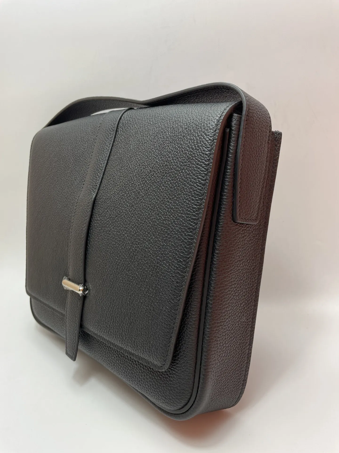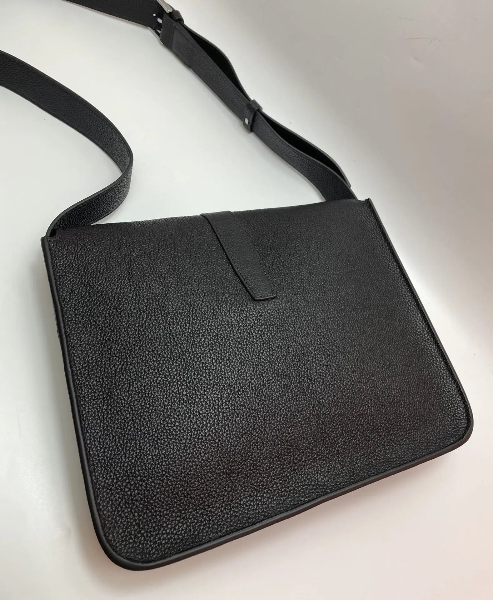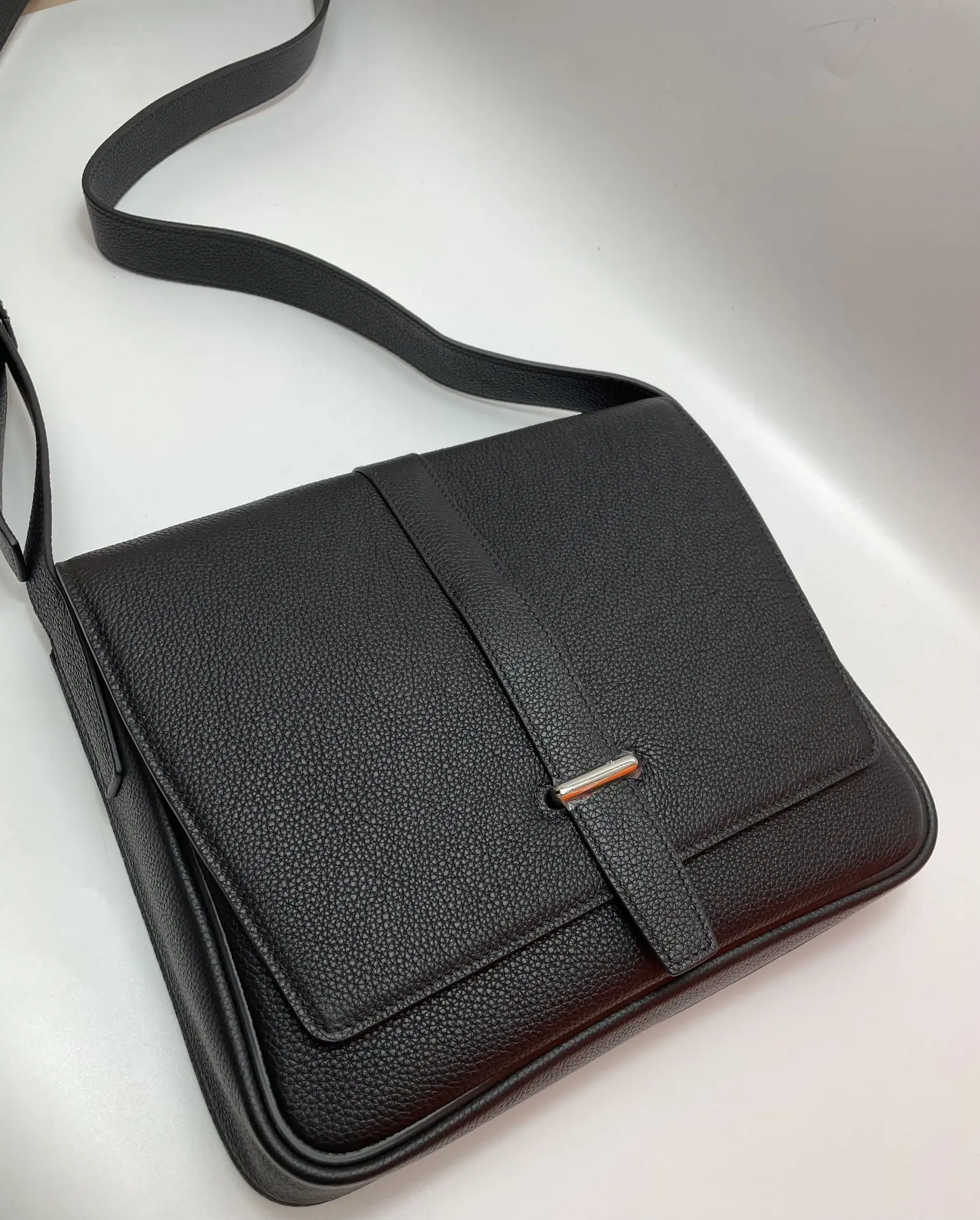 Semi-handmade New Men s Steve Light Junior Messenger Bag Crossbody 27cm A-Grade Togo Leather Patchwork [Black] Silver Hardware Unisex Style Synchronized Wax Thread Stitching Pure Steel Hardware Dimensions 27x23x5 Excellent Cowhide Leather Quality